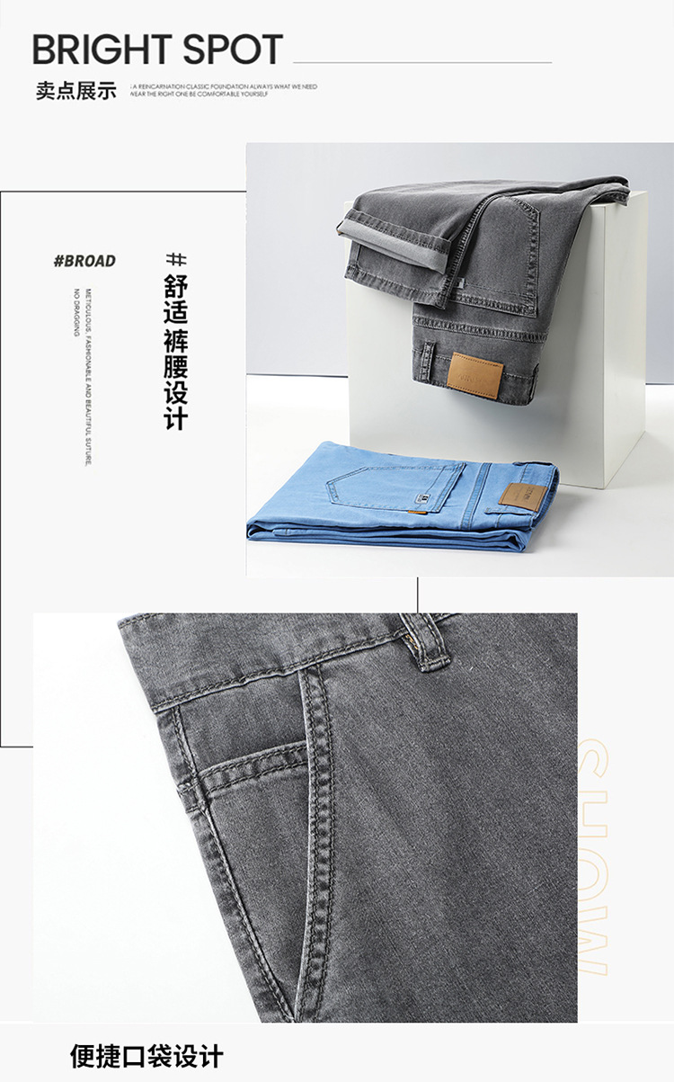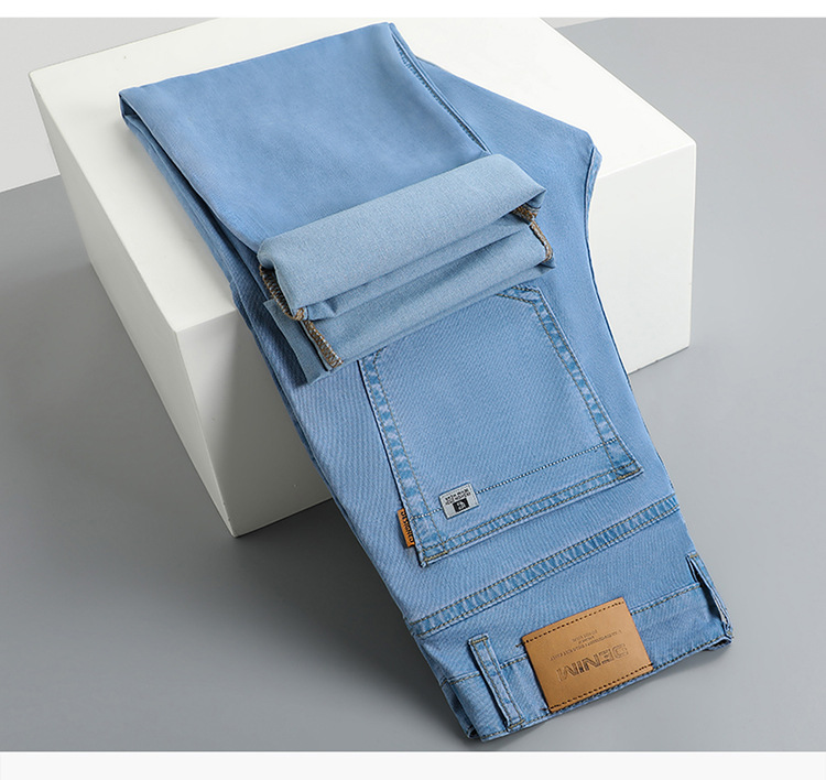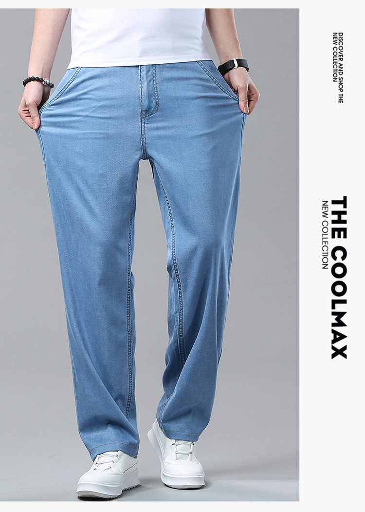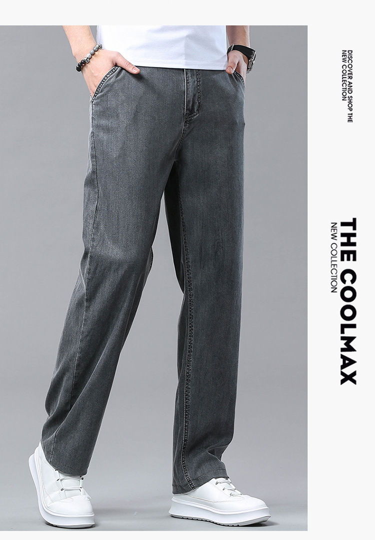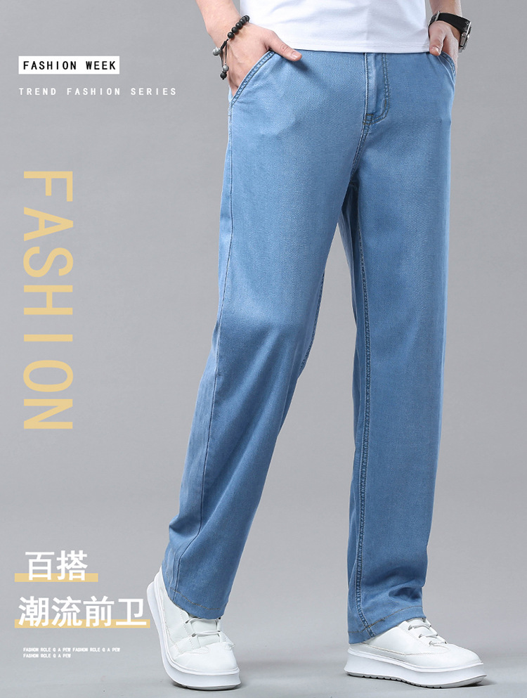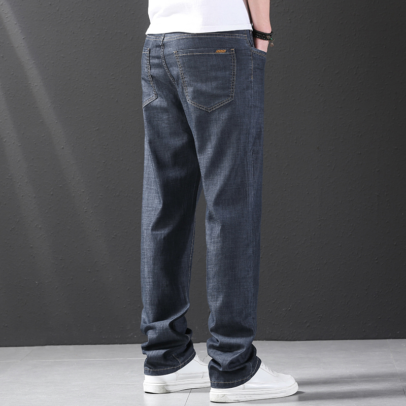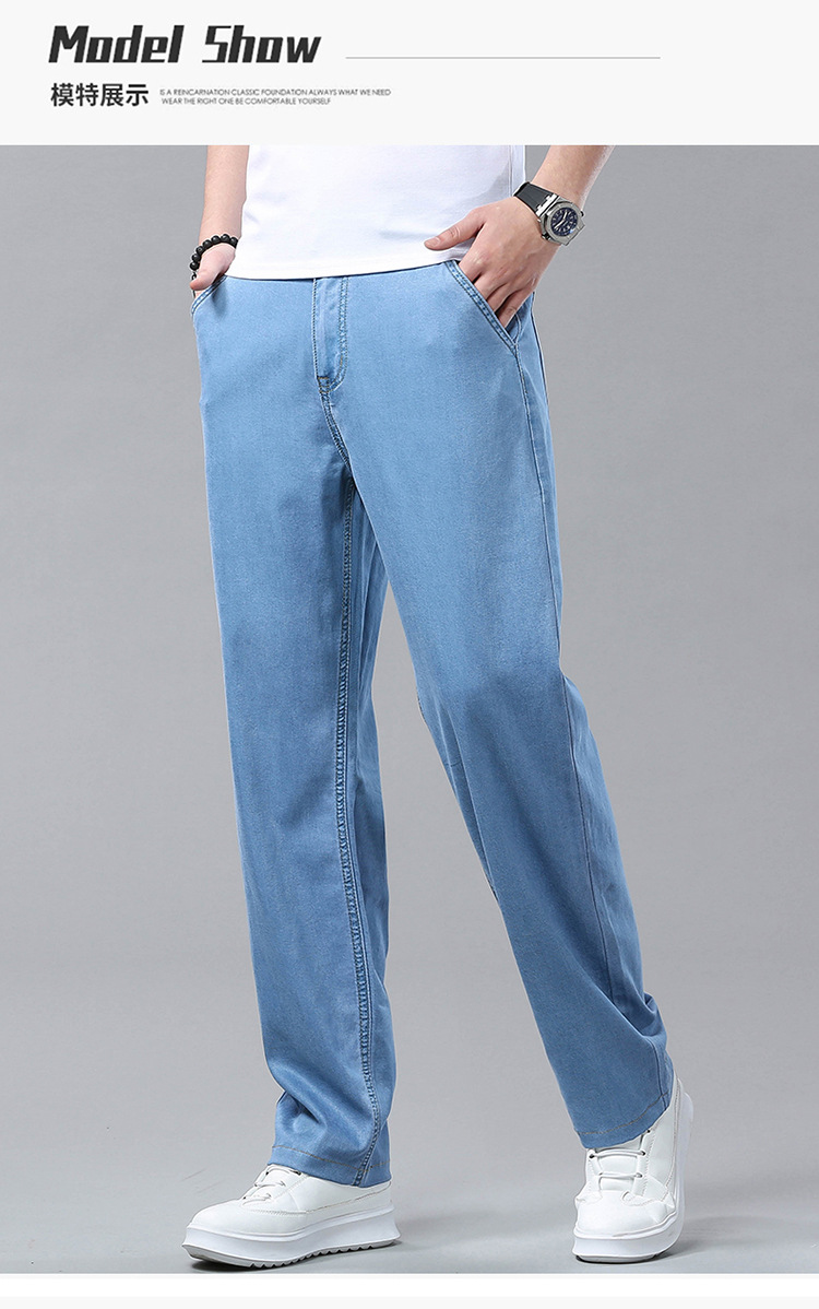 여름 얼음 실크 청바지 남성 느슨한 스트레이트 긴 바지 Xintang 하이 엔드 텐셀 얇은 캐주얼 남성 바지 초박형스토어 가기