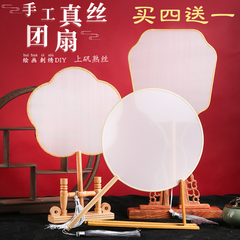 조명 골동품 실크 팬 빈 긴 손잡이 화이트 요리 실크 전통 중국 그림 수채화 손으로 그린 팬 자수 새로운스토어 가기