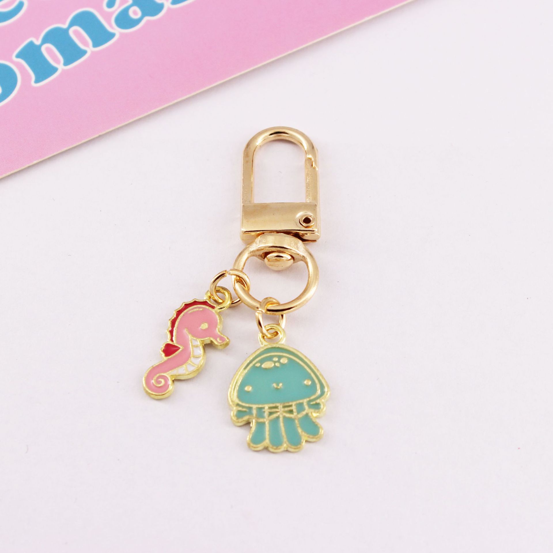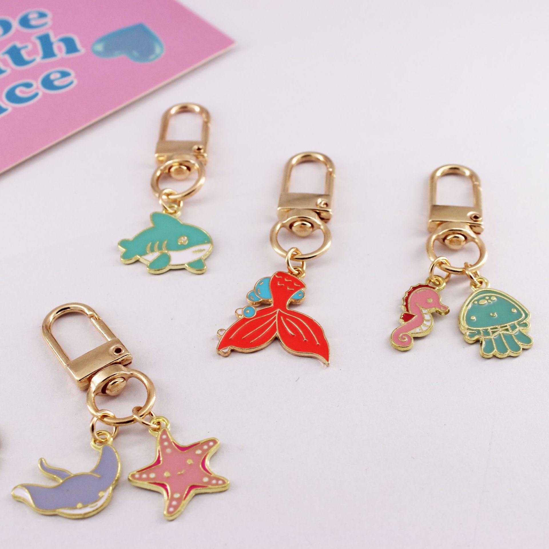 만화처럼 귀여운 해양 생물 열쇠고리, 고래, 상어, 해파리, 합금, 오일 드립, 독특하고 정교하며 트렌디한 액세서리스토어 가기