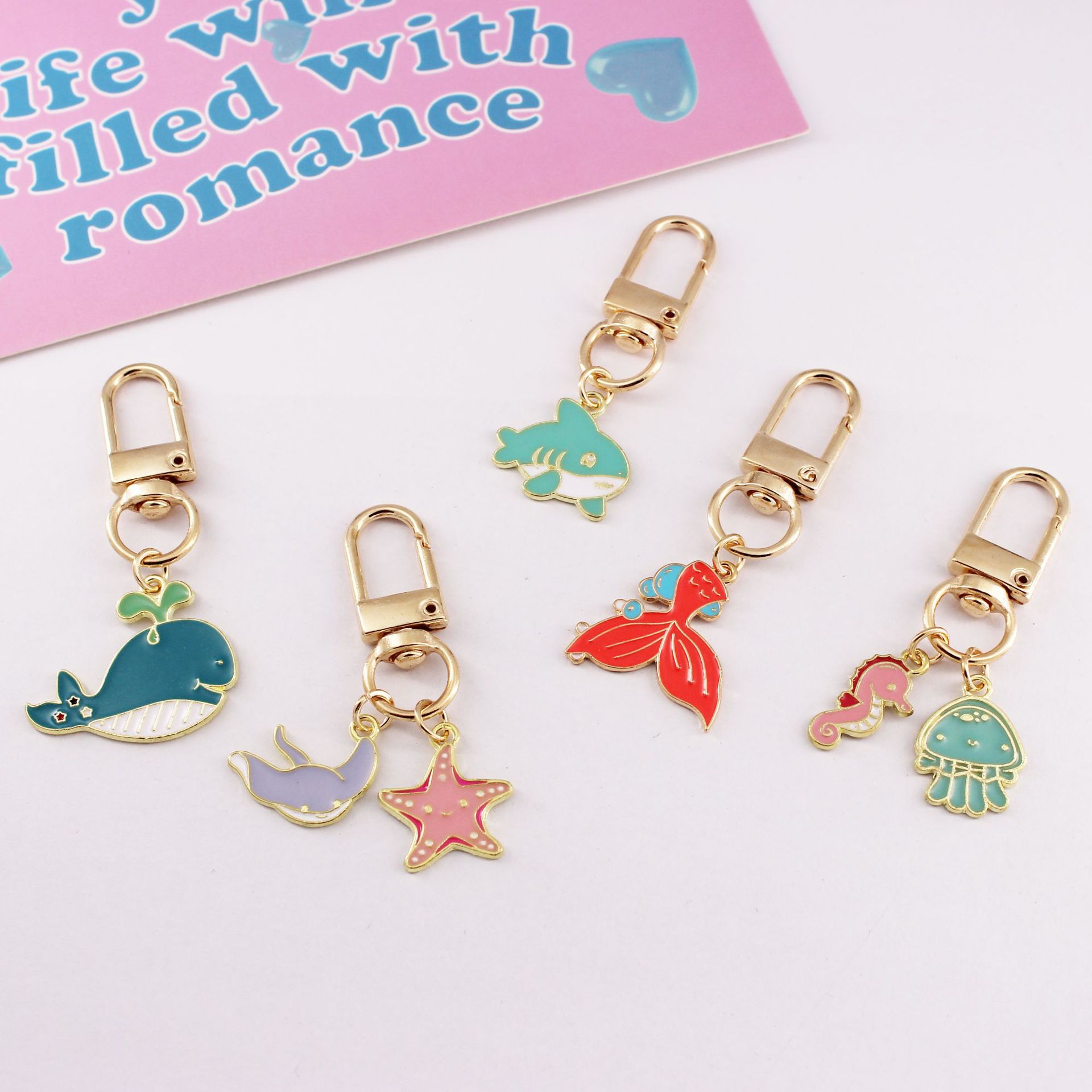 만화처럼 귀여운 해양 생물 열쇠고리, 고래, 상어, 해파리, 합금, 오일 드립, 독특하고 정교하며 트렌디한 액세서리