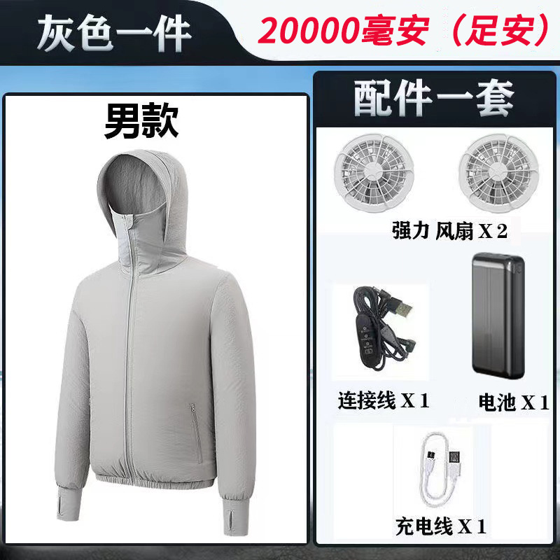 • 남자의 회색 단일 의류 발 20000 배터리 팬 1 쌍의 케이블