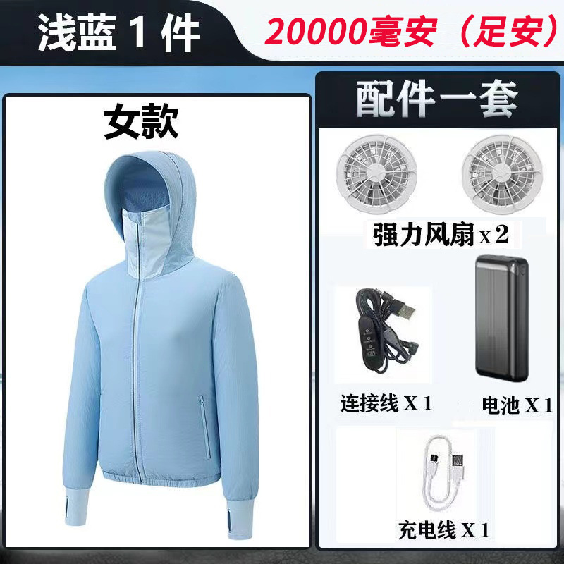 • 여성 라이트 블루 단일 의류 발 20000 배터리 팬 1 쌍의 케이블