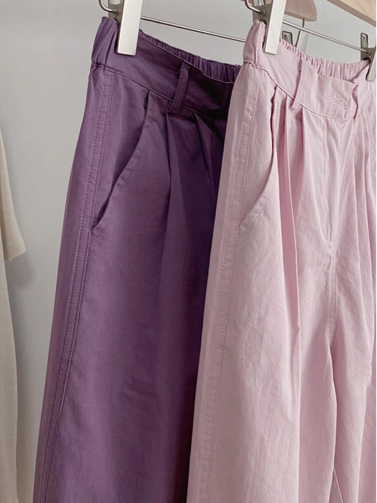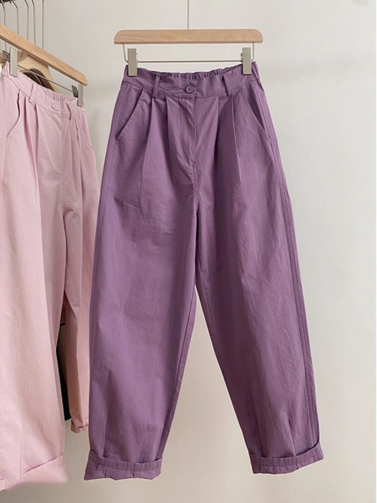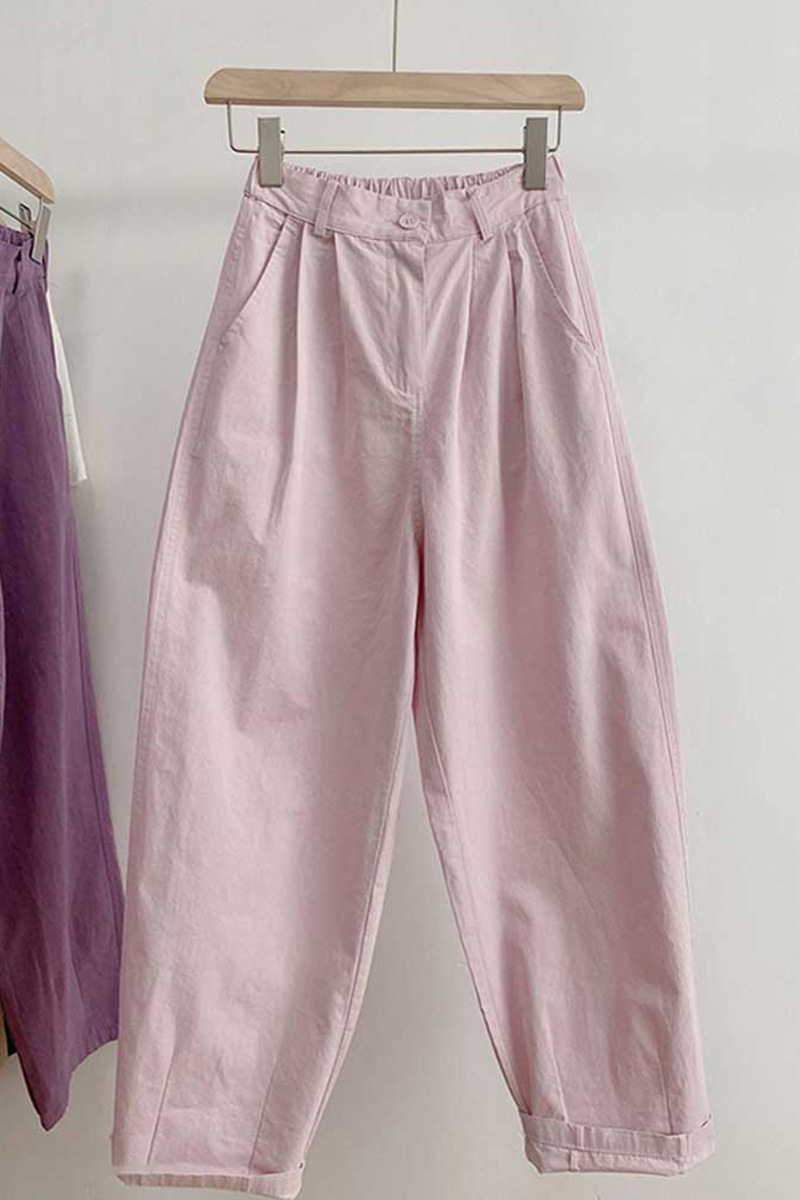 여름 핑크 보라색 매일 캐주얼 와이드 레그 바지 여성용 얇은 느슨한 슬리밍 스트레이트 크롭 팬츠 할란 당근 바지스토어 가기