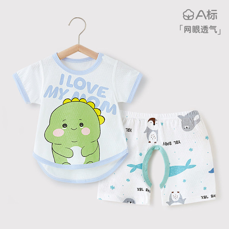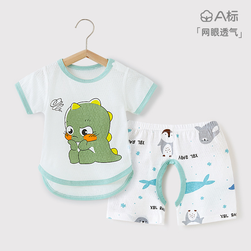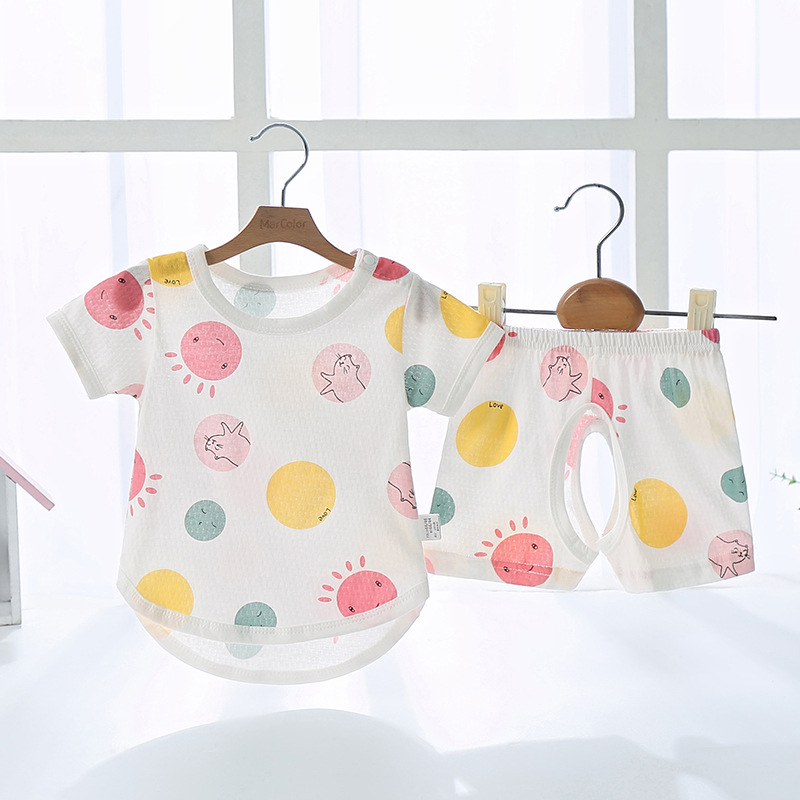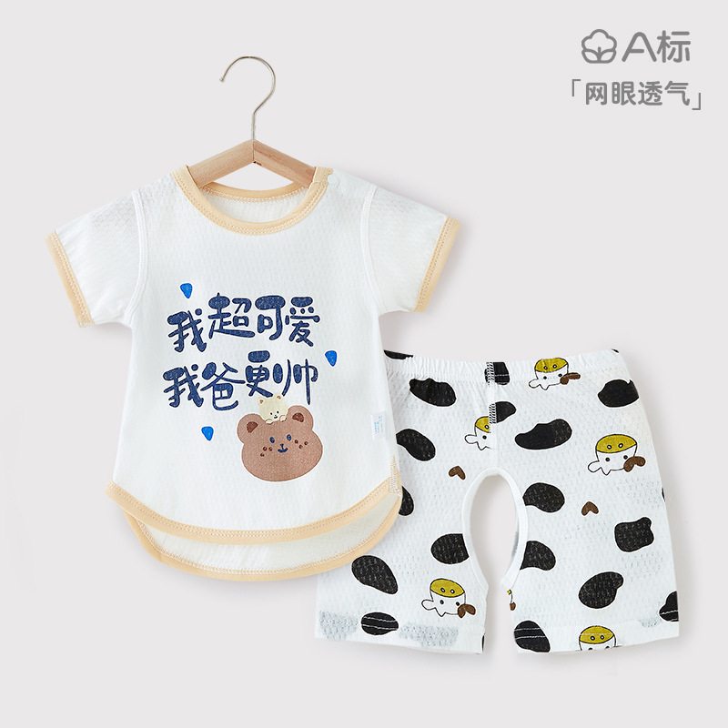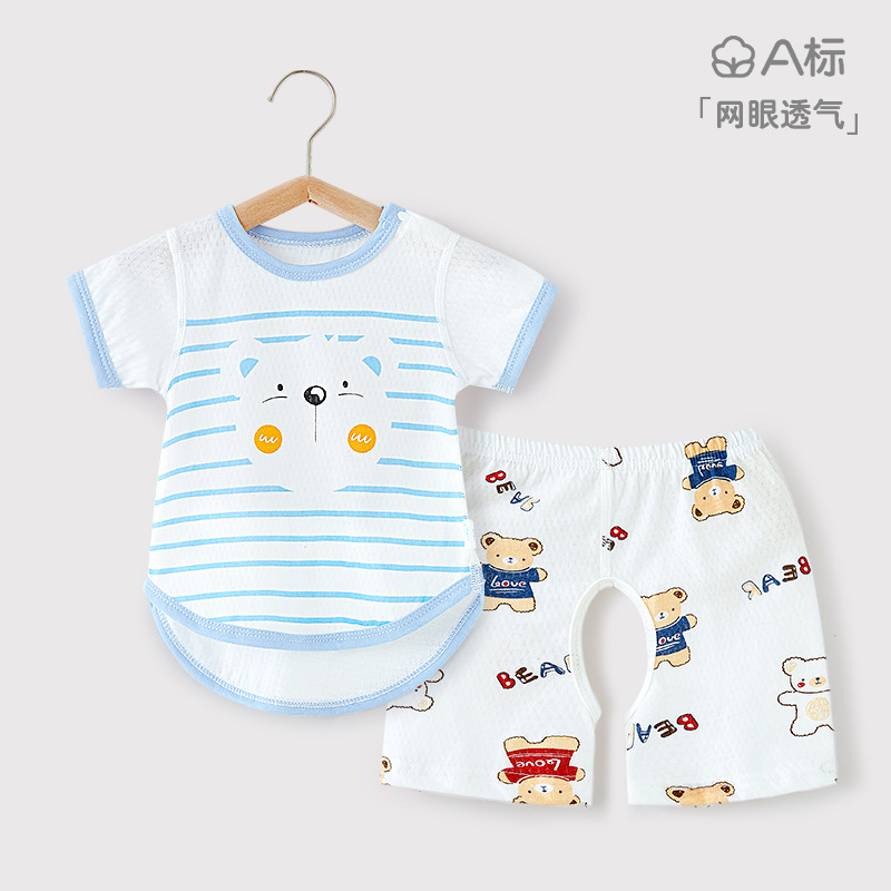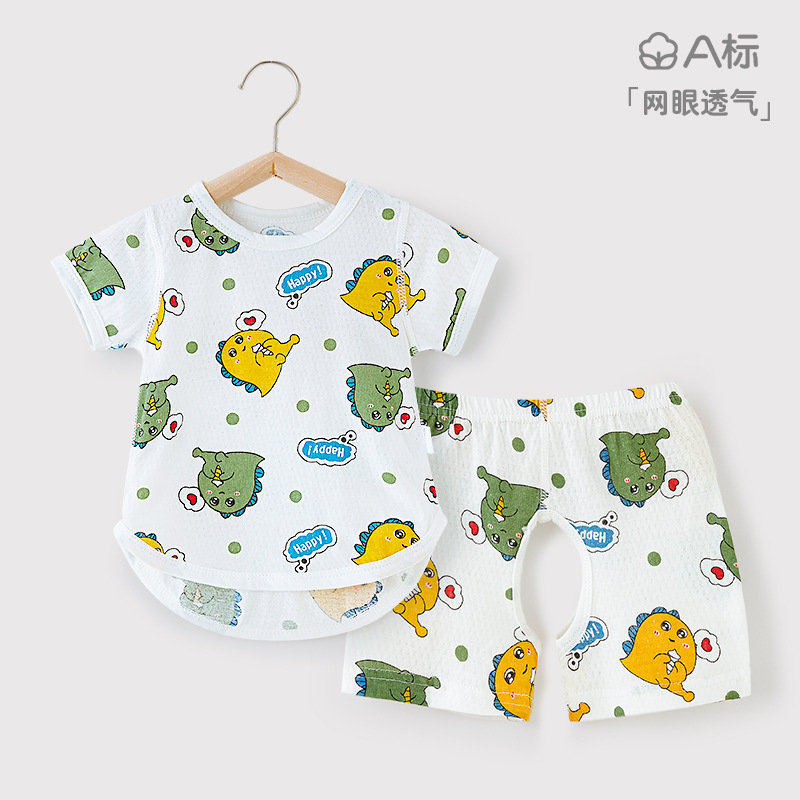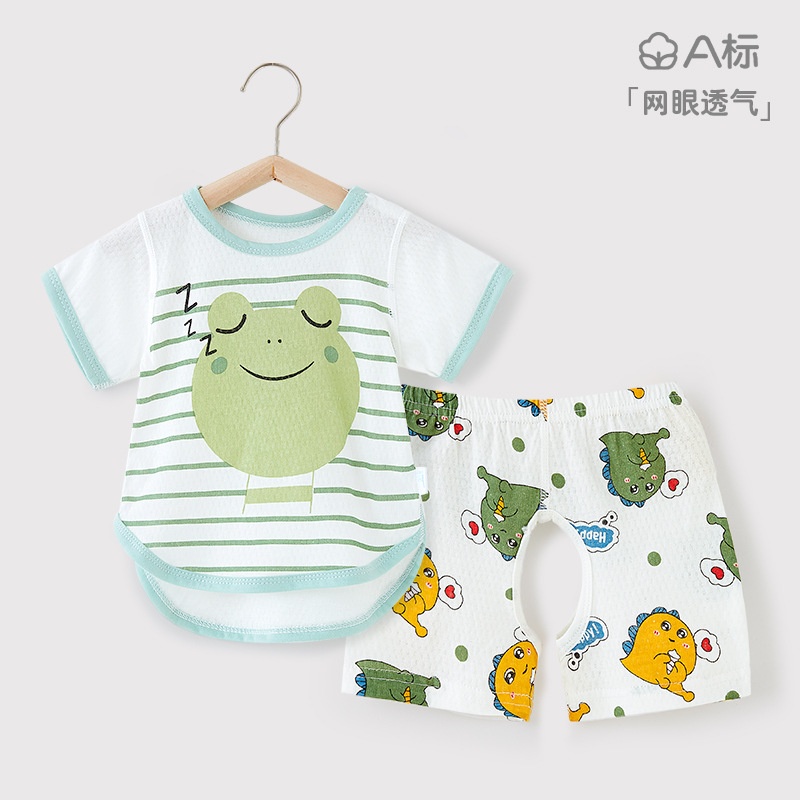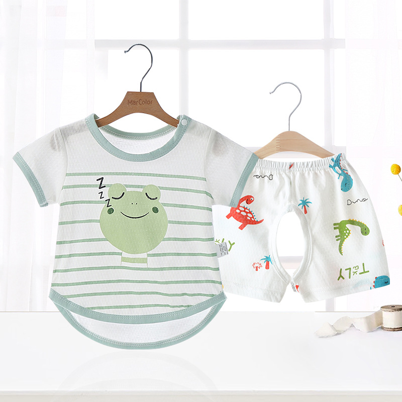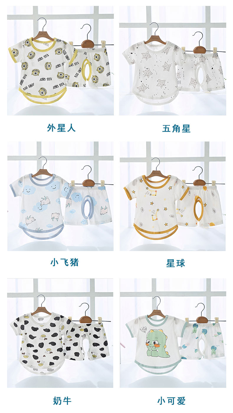 아기의 여름 얇은 세트 남자 아기의 반팔 순면 오픈 분할 옷 딸의 어린이 잠옷 반바지 여름 옷