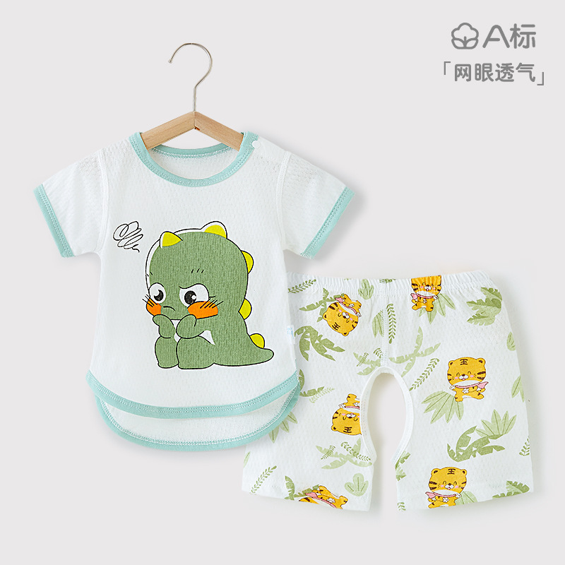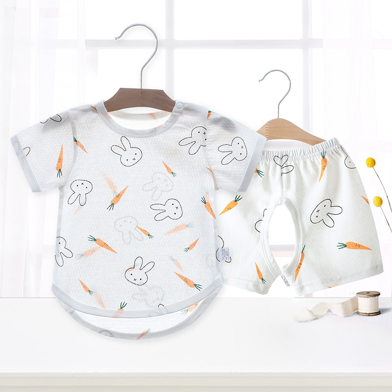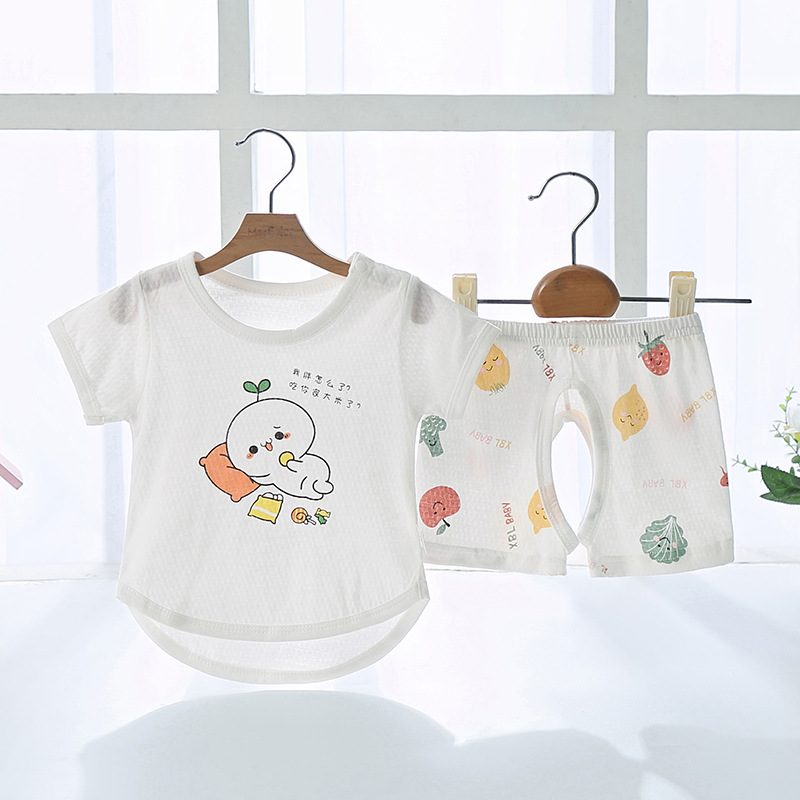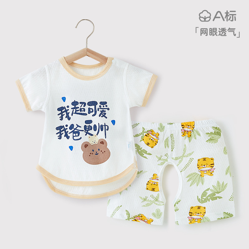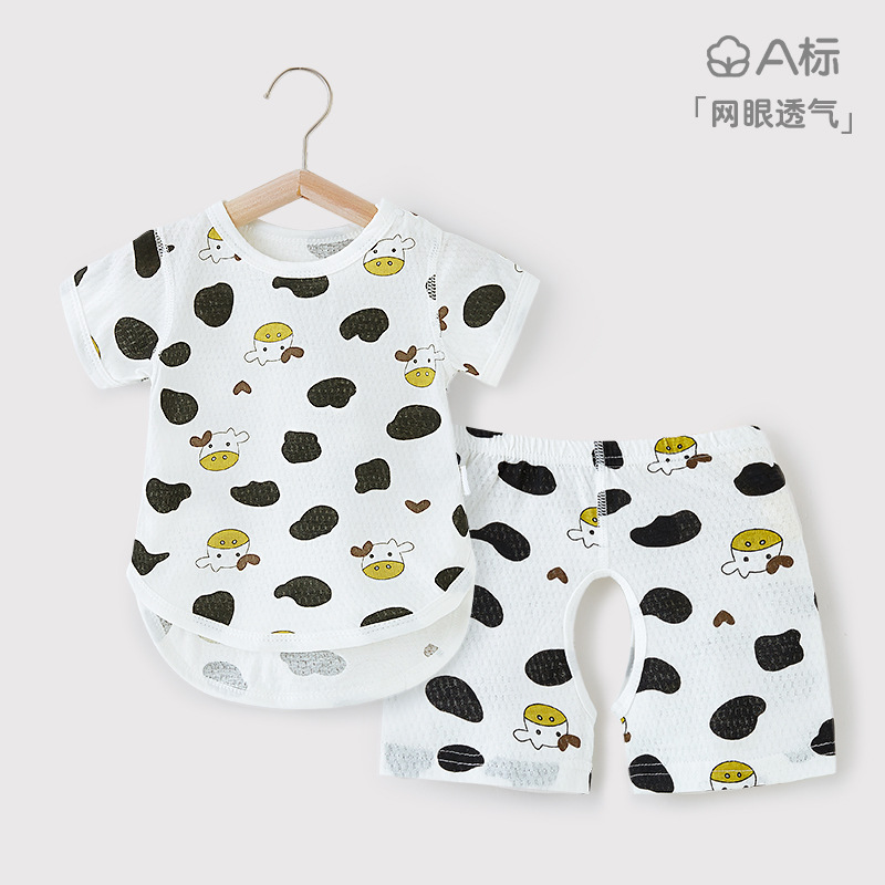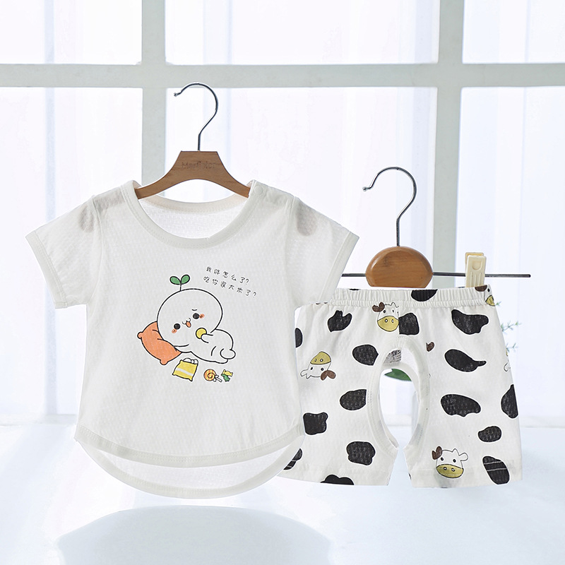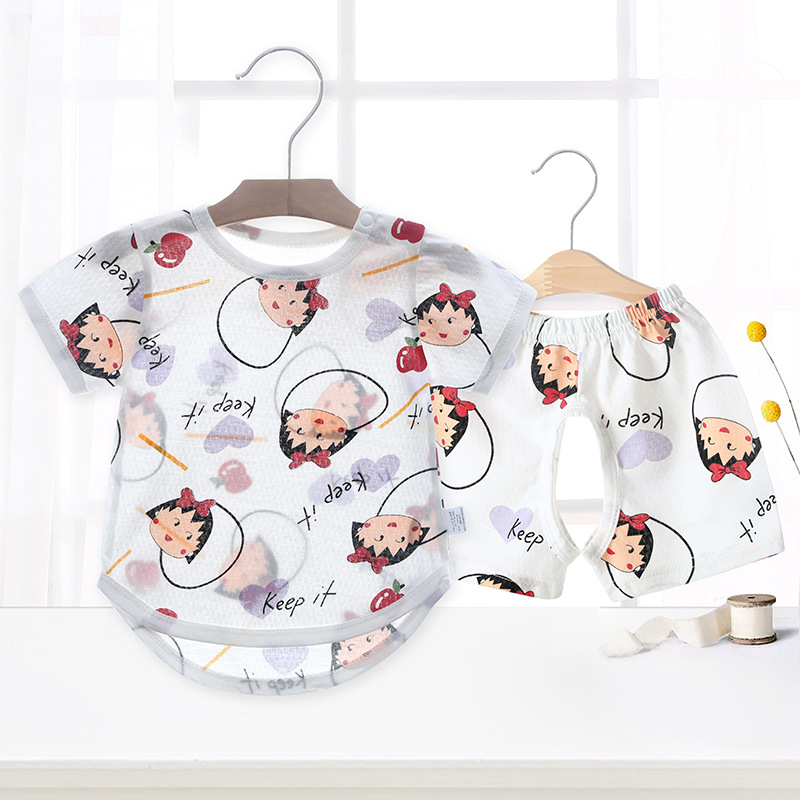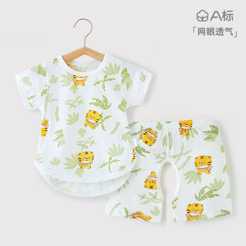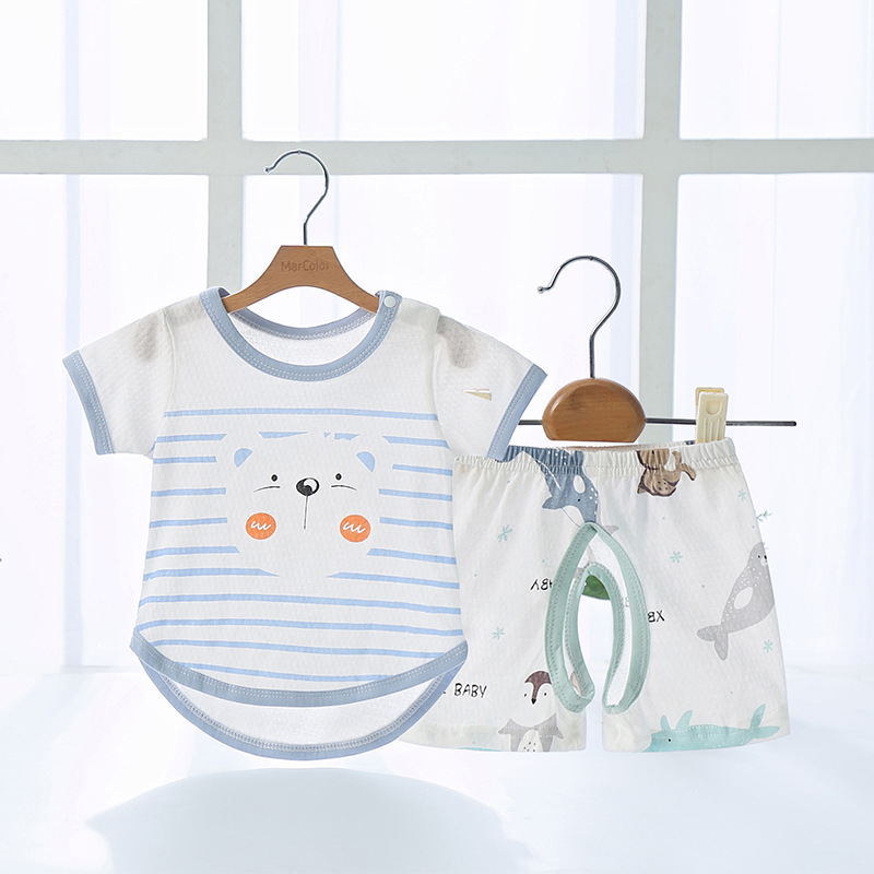 아기의 여름 얇은 세트 남자 아기의 반팔 순면 오픈 분할 옷 딸의 어린이 잠옷 반바지 여름 옷