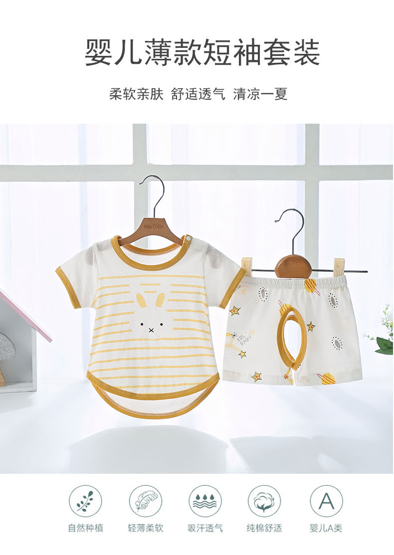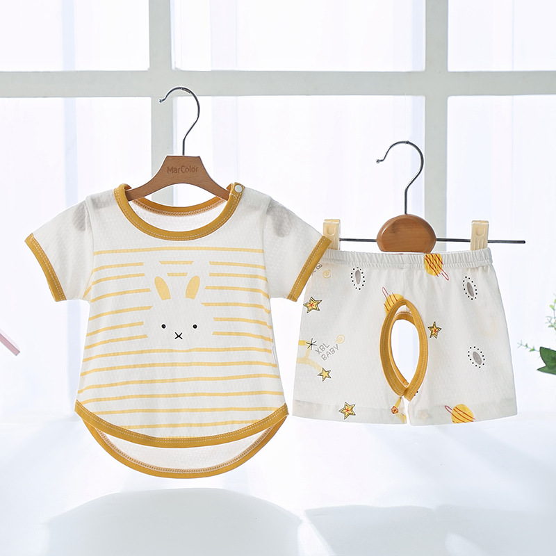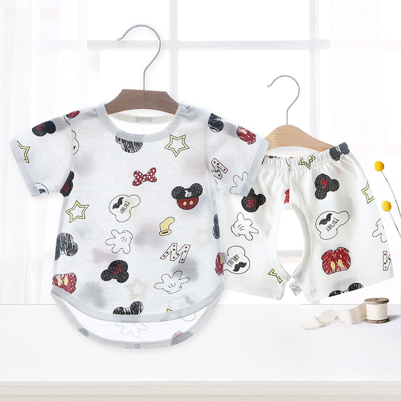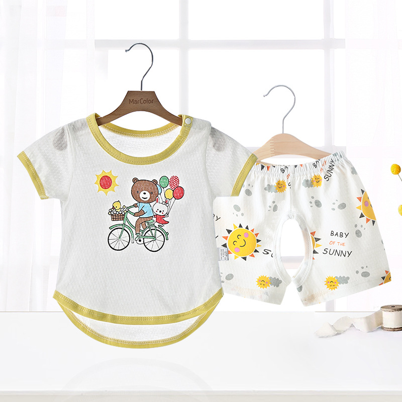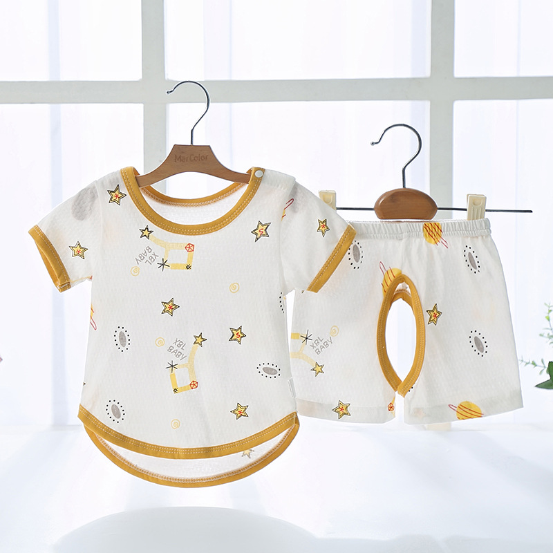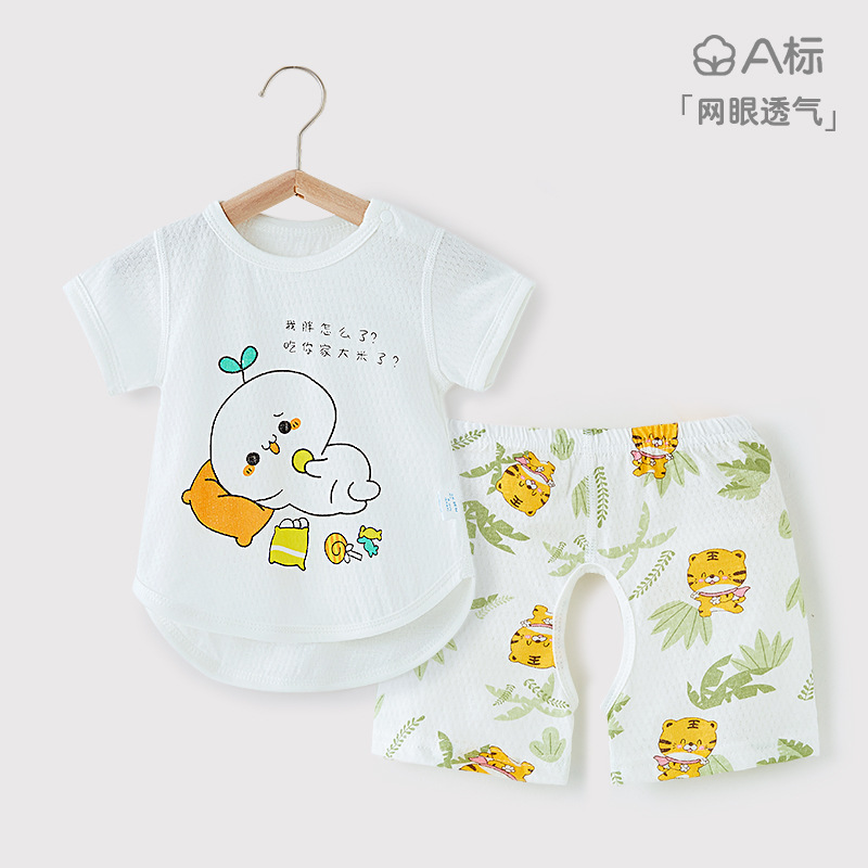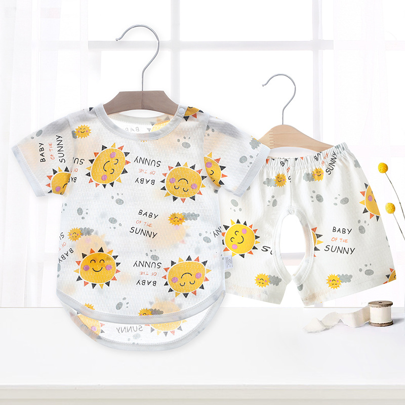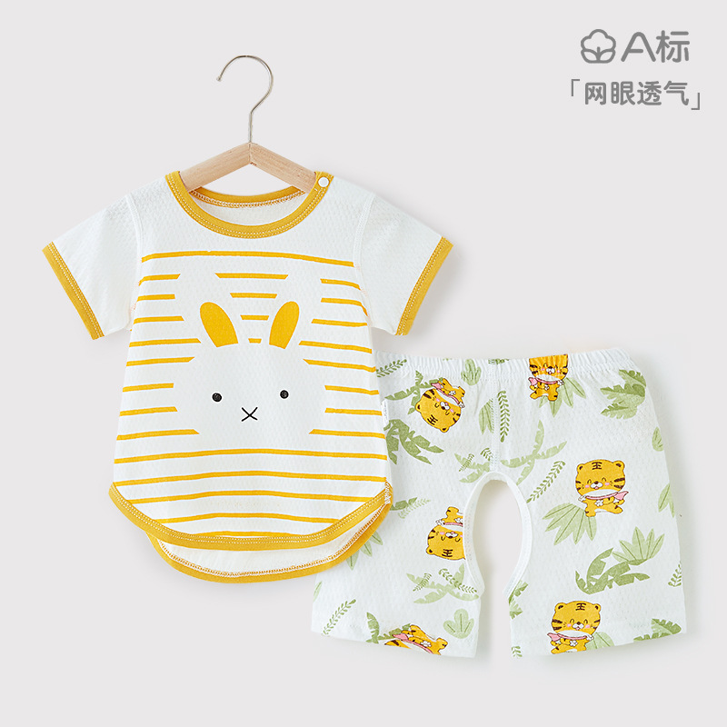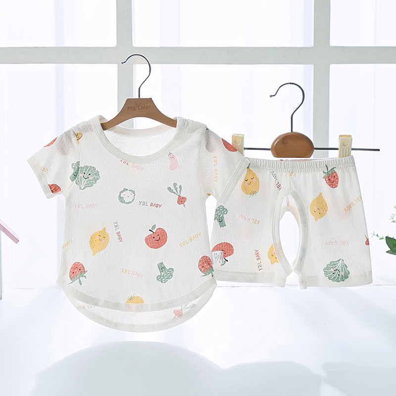 아기의 여름 얇은 세트 남자 아기의 반팔 순면 오픈 분할 옷 딸의 어린이 잠옷 반바지 여름 옷