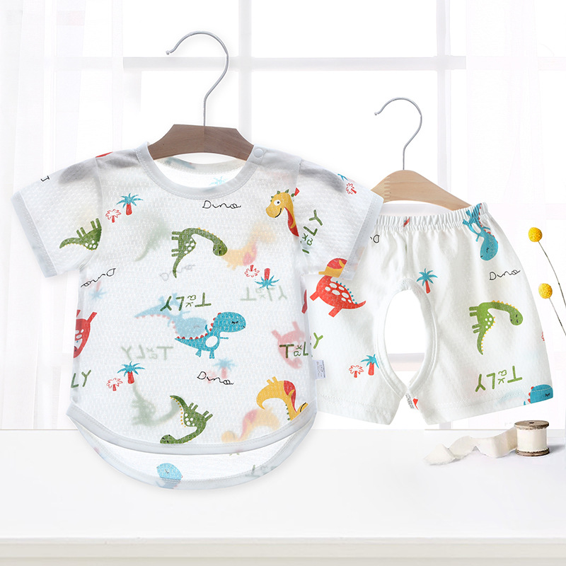 아기의 여름 얇은 세트 남자 아기의 반팔 순면 오픈 분할 옷 딸의 어린이 잠옷 반바지 여름 옷스토어 가기