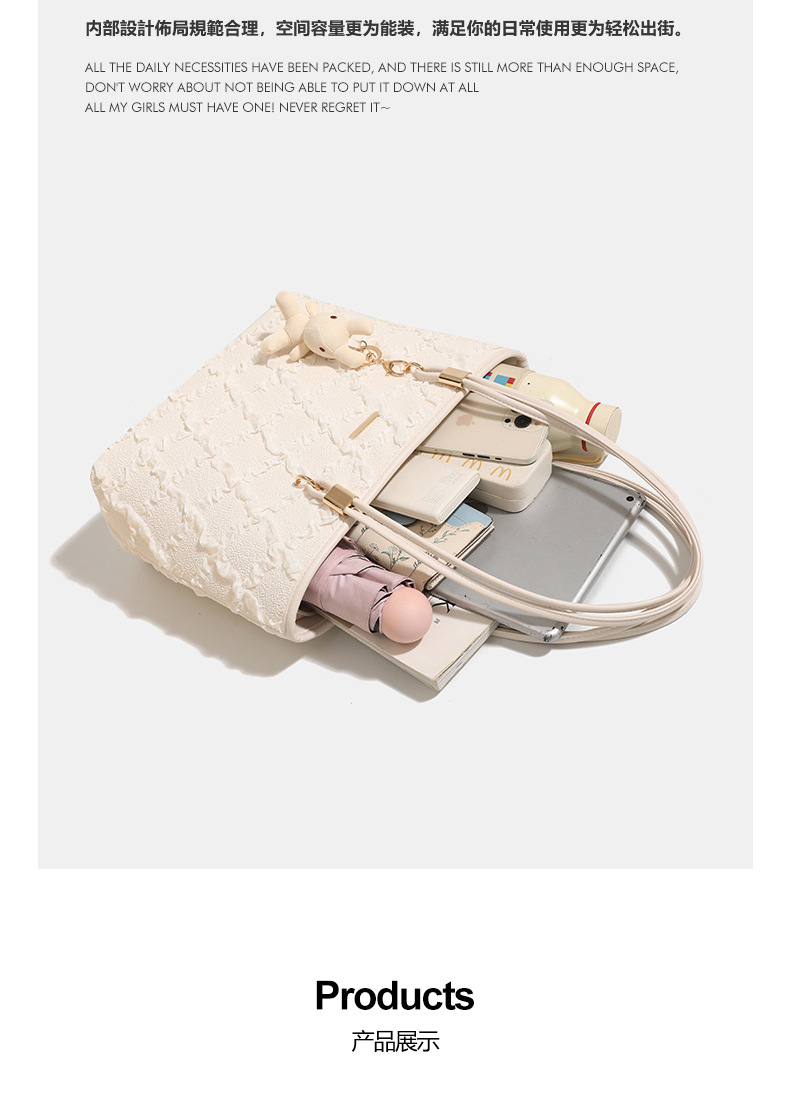 2024 여름 새로운 여성 가방 대용량 토트 백 하이 엔드 자카드 숄더 백 올 매치 통근 핸드백