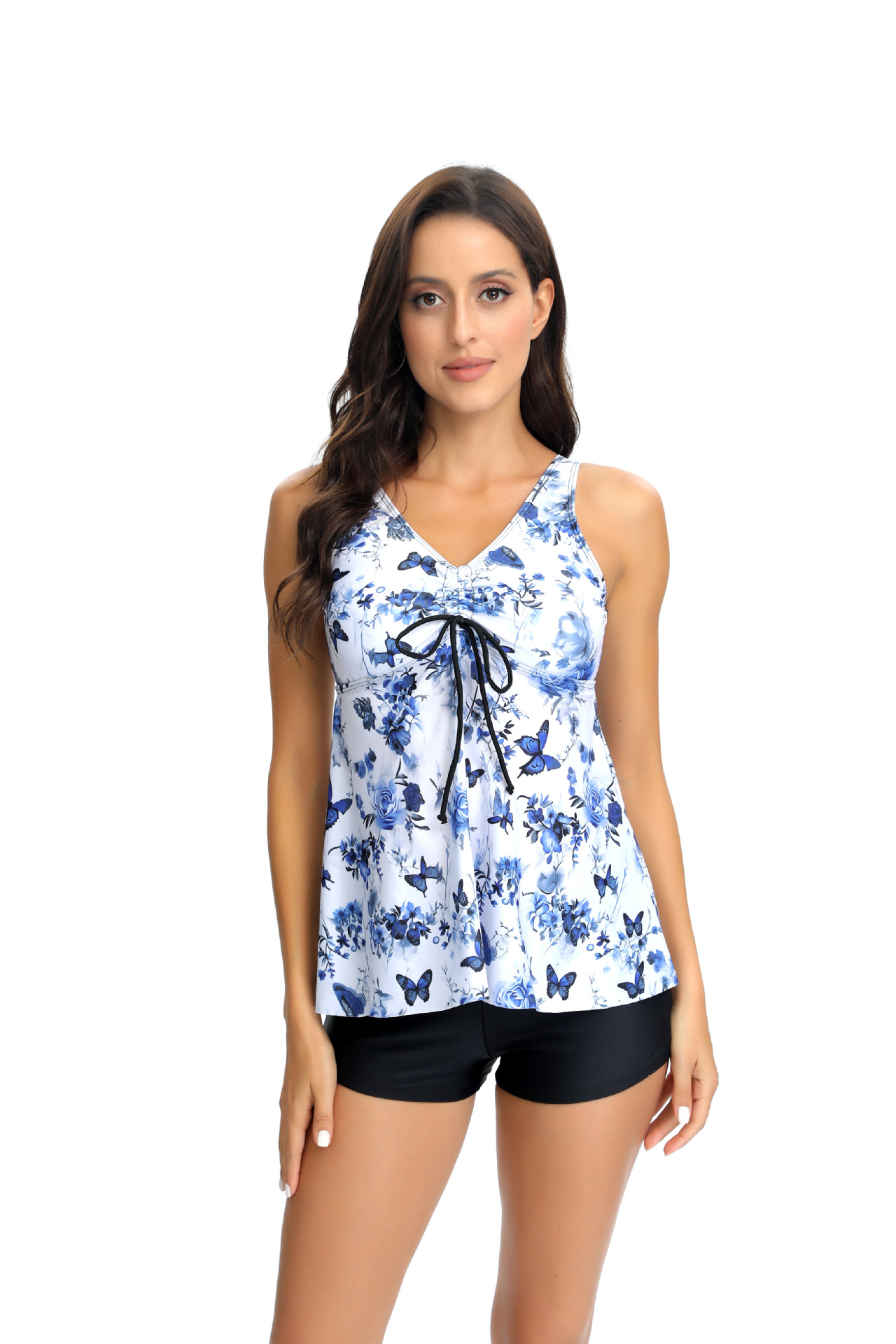 유럽과 미국의 새로운 스타일 드로우 스트링 디자인 수집 된 멀티 컬러 스커트 분할 반바지 Tankini 세트 여성 수영복스토어 가기