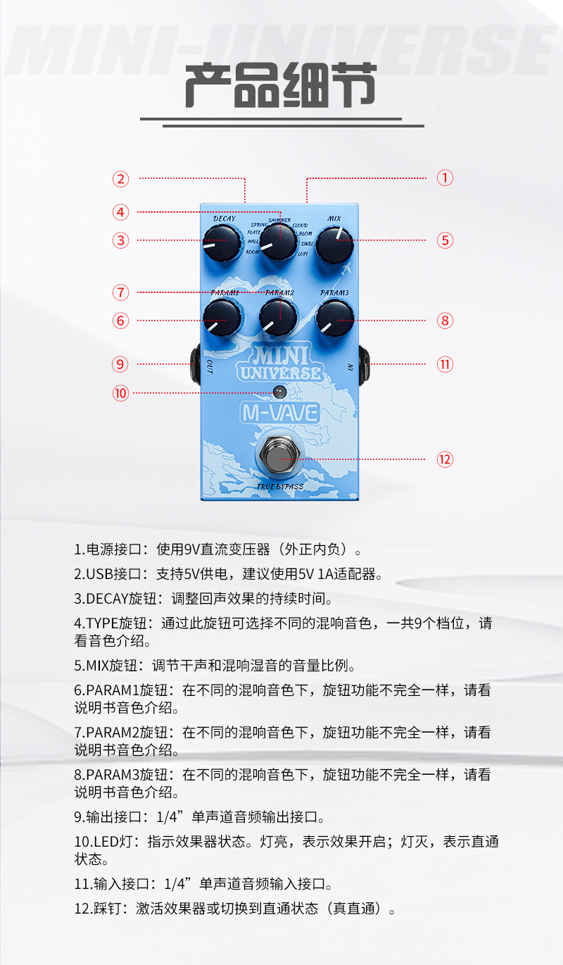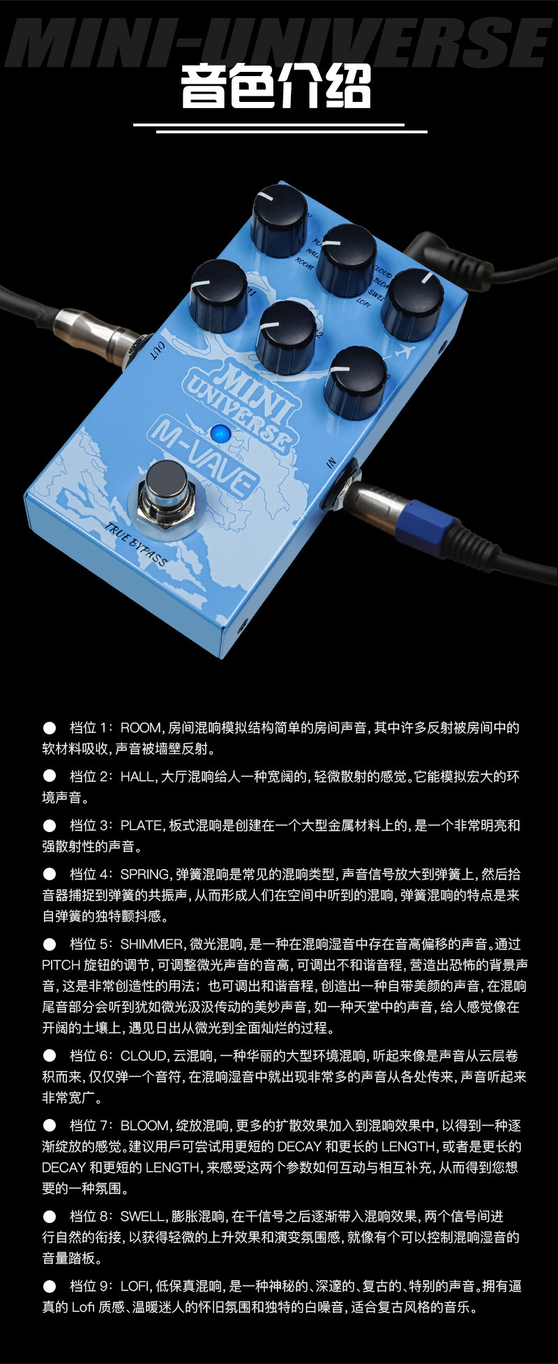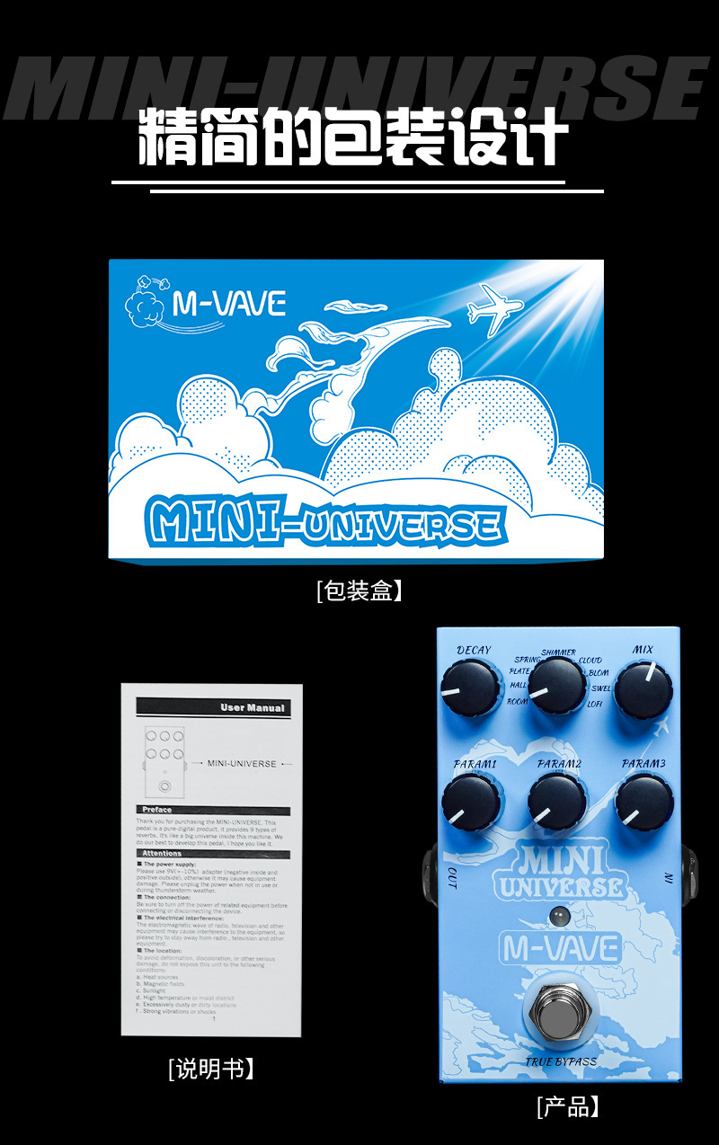 M-VAVE 기타 모노 블록 이펙터 미니-유니버스 디지털 모델링 반전 이펙터