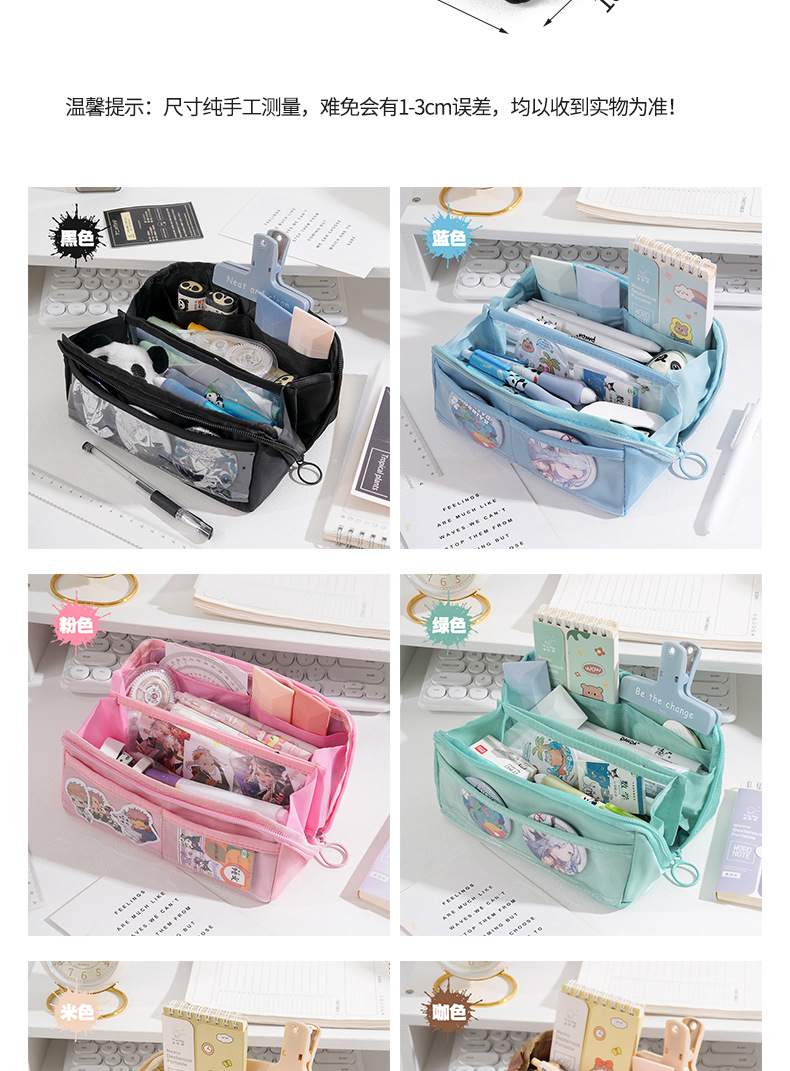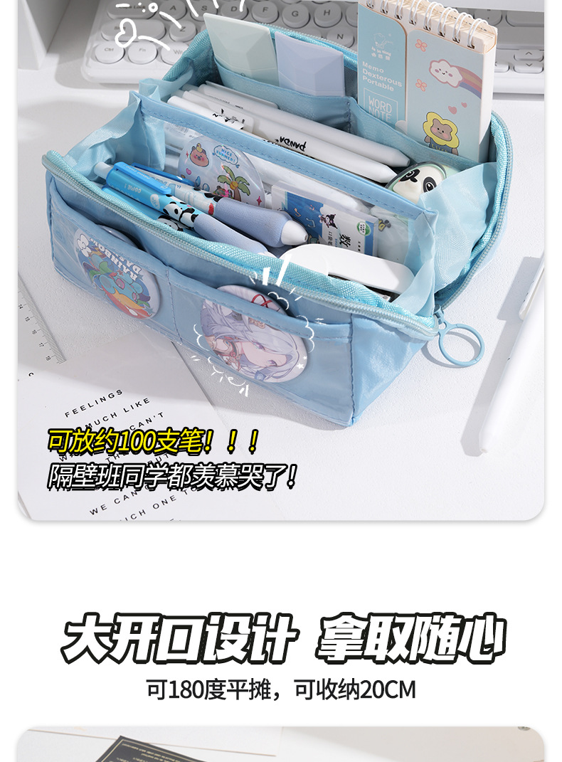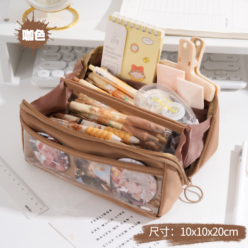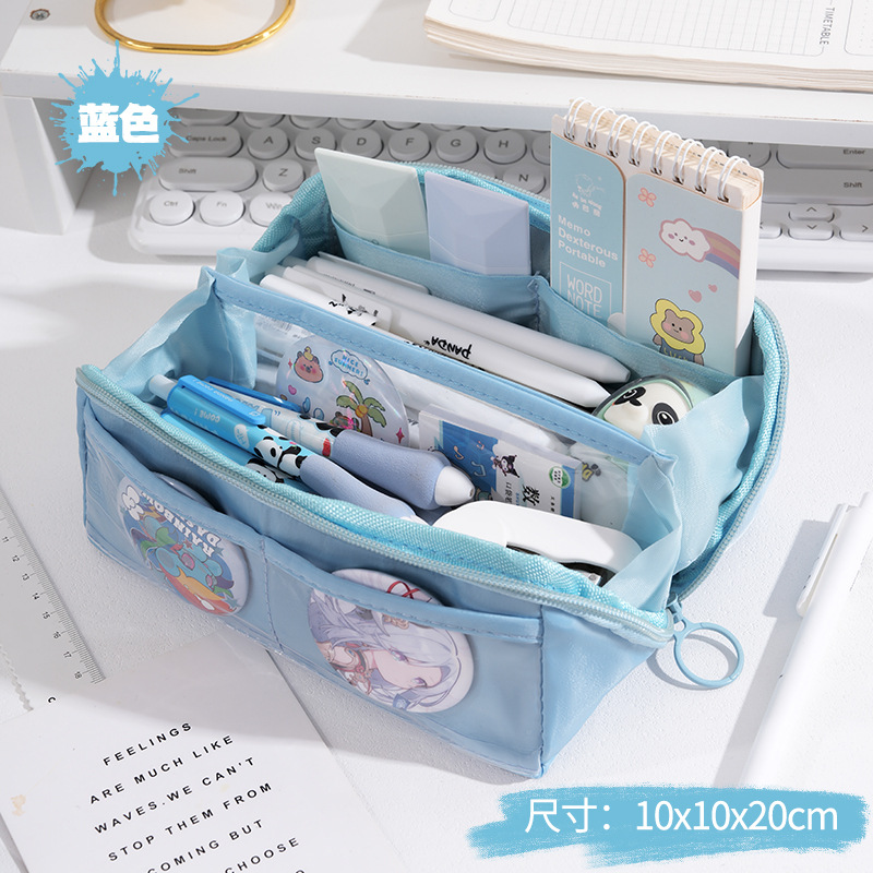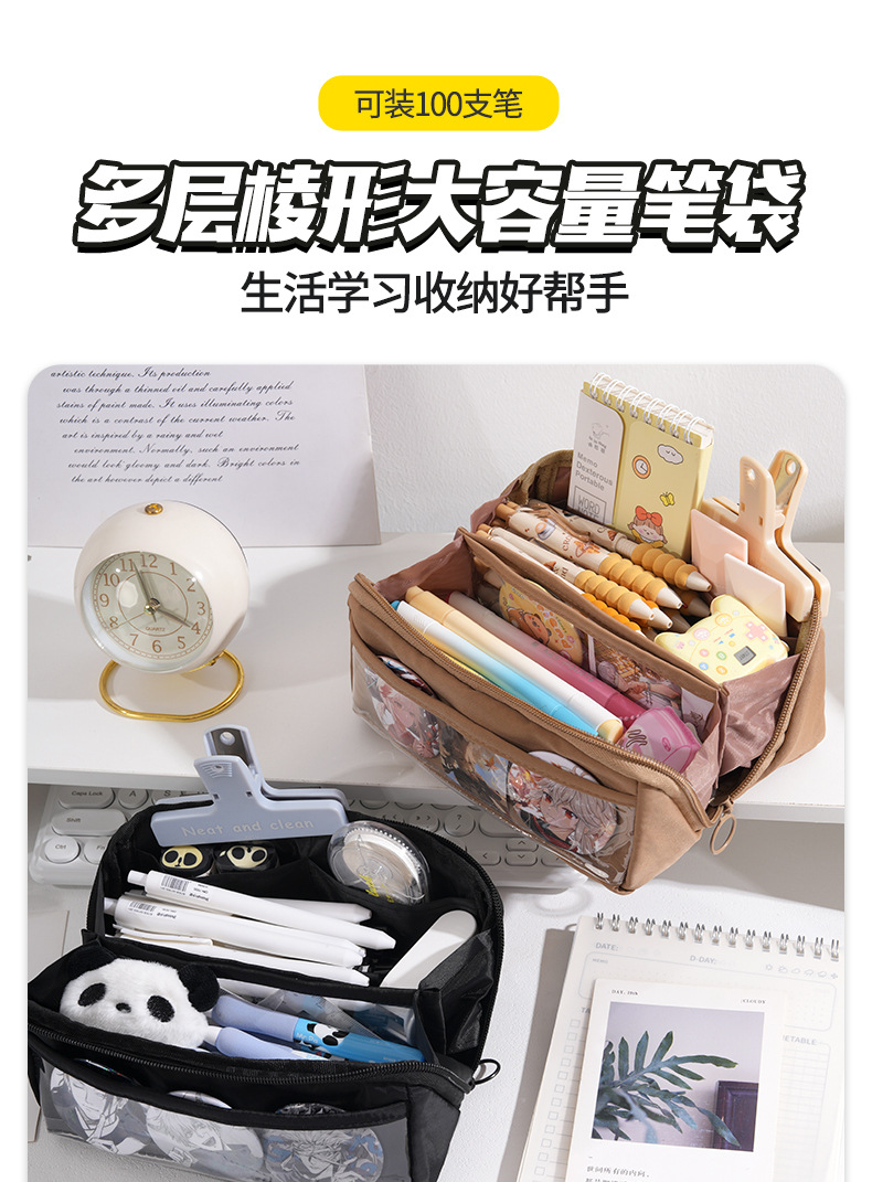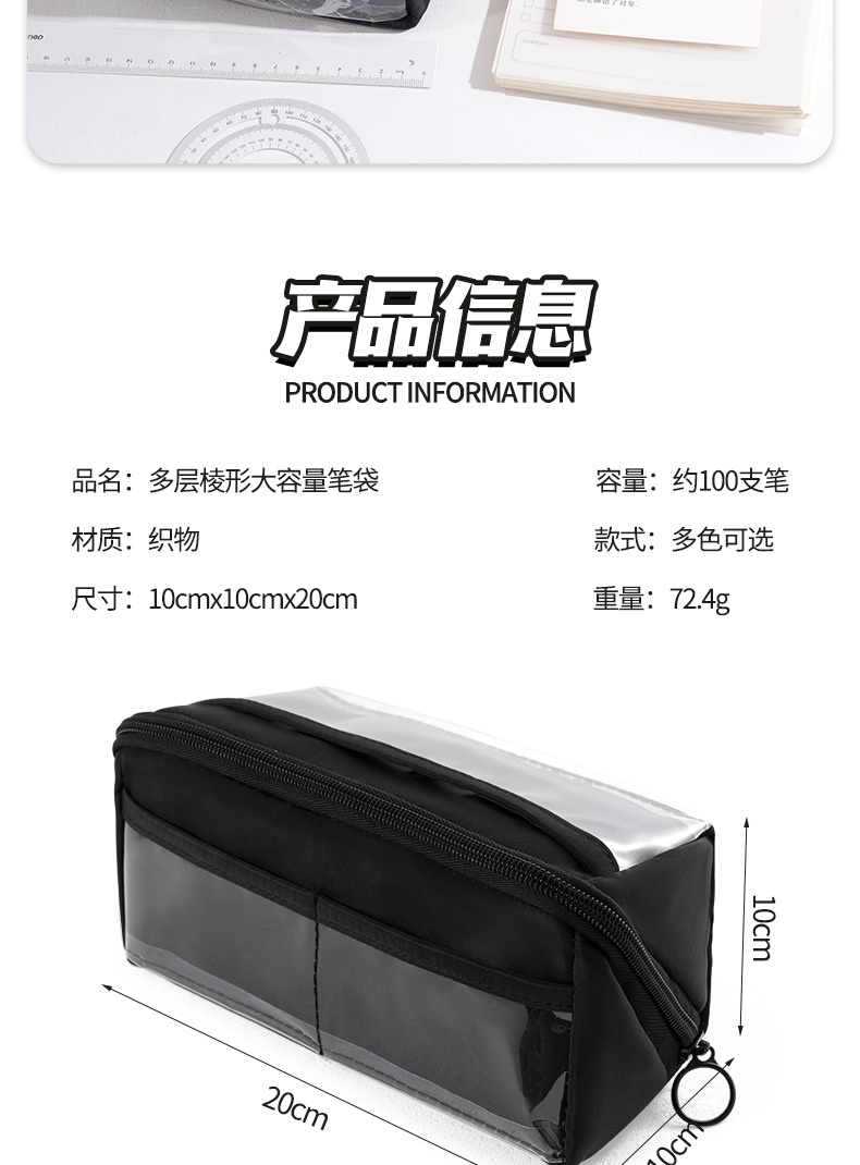 남성 및 여성 학생을위한 Ins 스타일 대용량 고가치 연필 가방 한국 다기능 프리즘 연필 가방 오픈 문구 가방스토어 가기