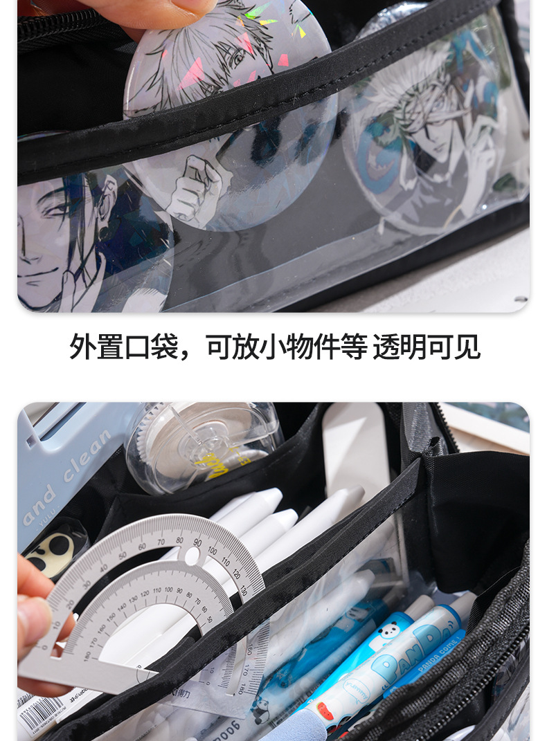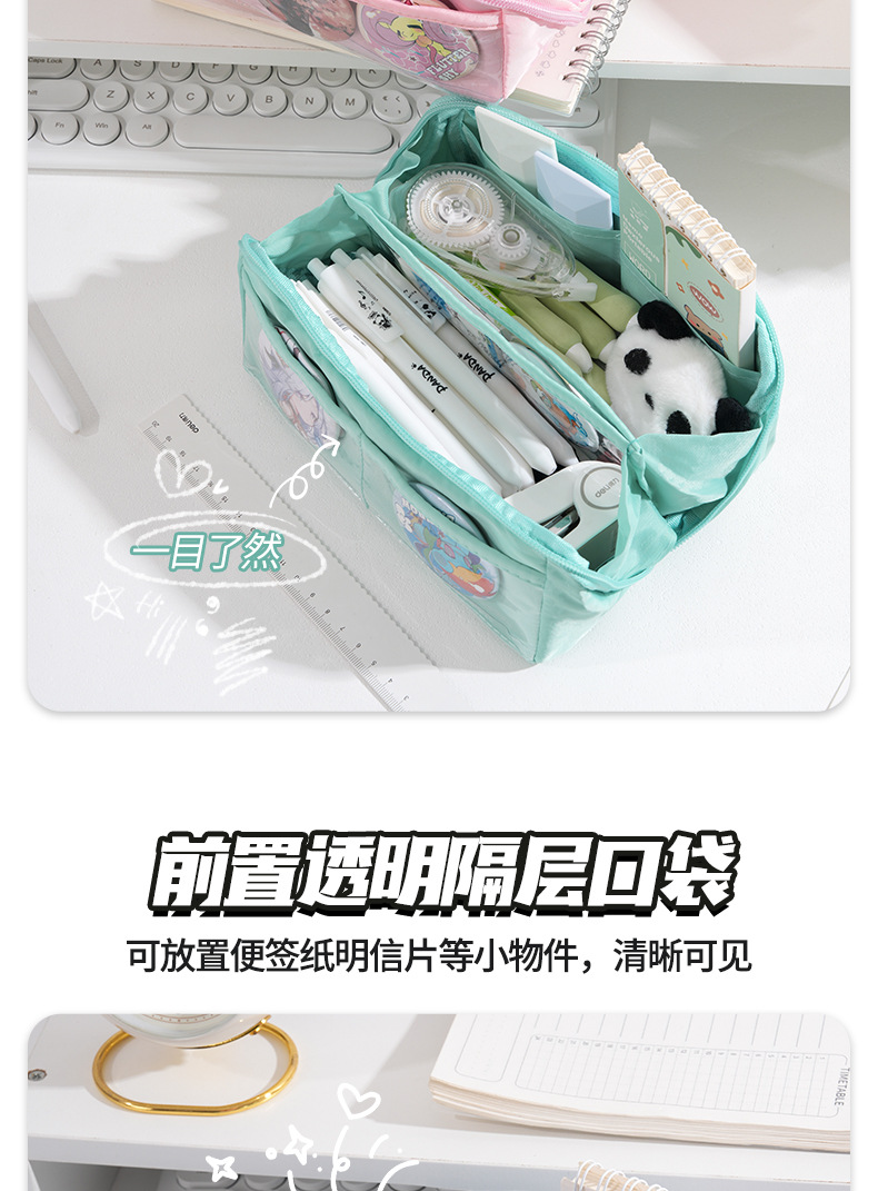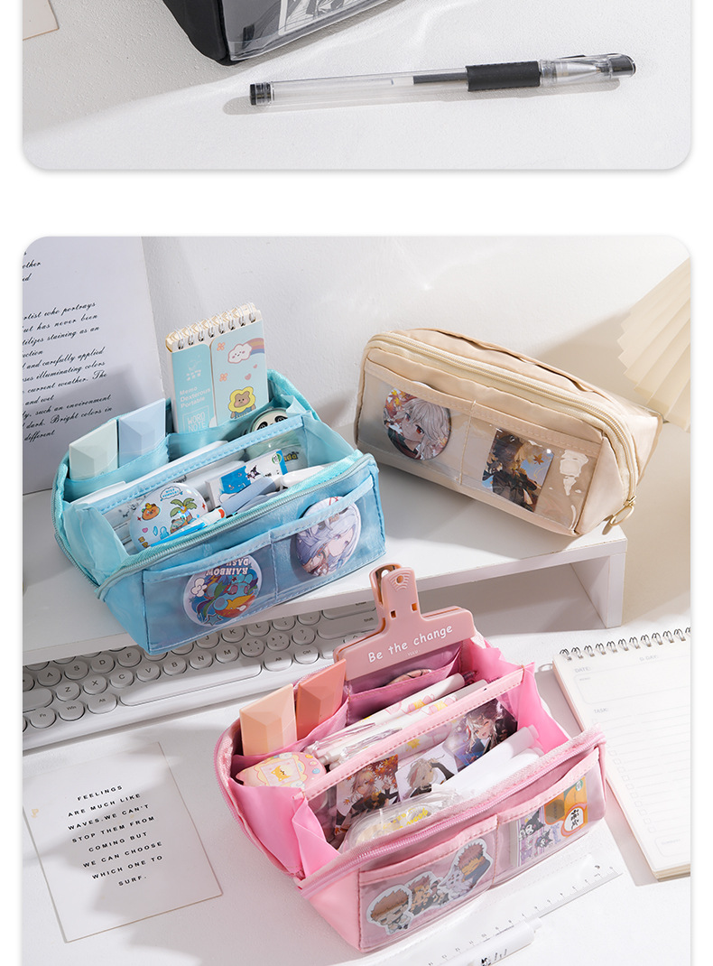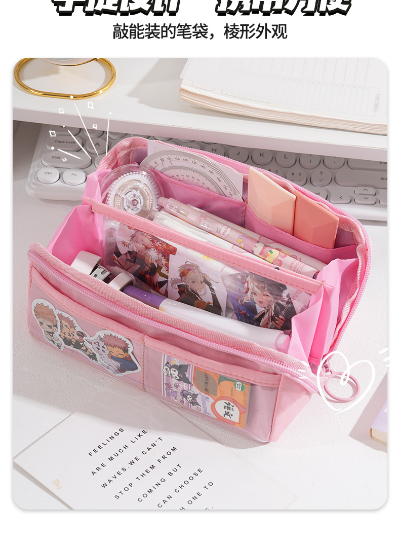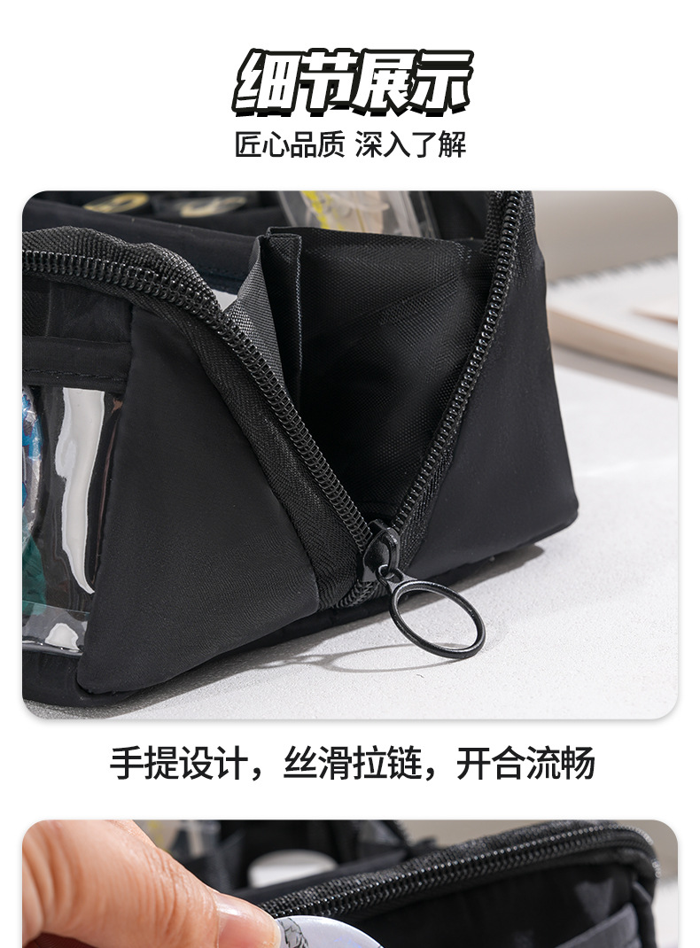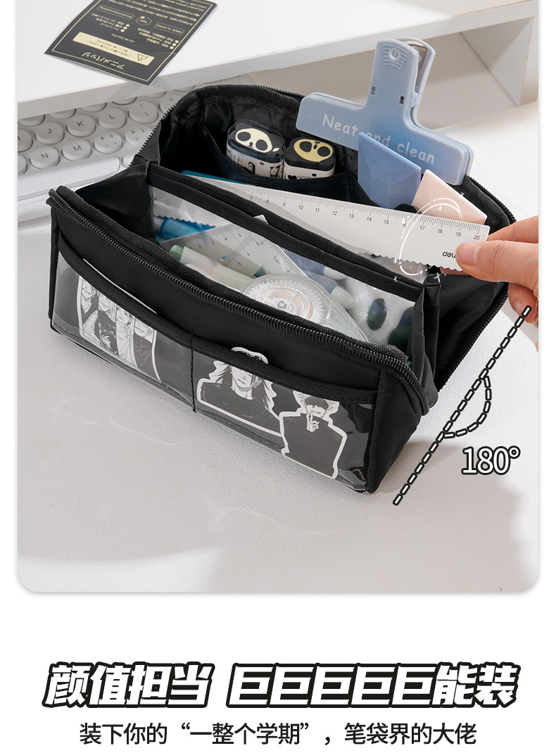 남성 및 여성 학생을위한 Ins 스타일 대용량 고가치 연필 가방 한국 다기능 프리즘 연필 가방 오픈 문구 가방스토어 가기