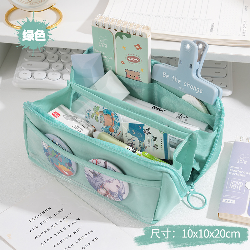 남성 및 여성 학생을위한 Ins 스타일 대용량 고가치 연필 가방 한국 다기능 프리즘 연필 가방 오픈 문구 가방