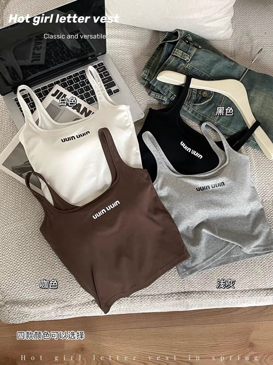 한국식 스퀘어 칼라 카미솔 프린트 조끼 스포츠 슬리밍 내복 걸스 아우터 아름다운 서스펜더 가슴 패드 속옷 여성용 여름스토어 가기