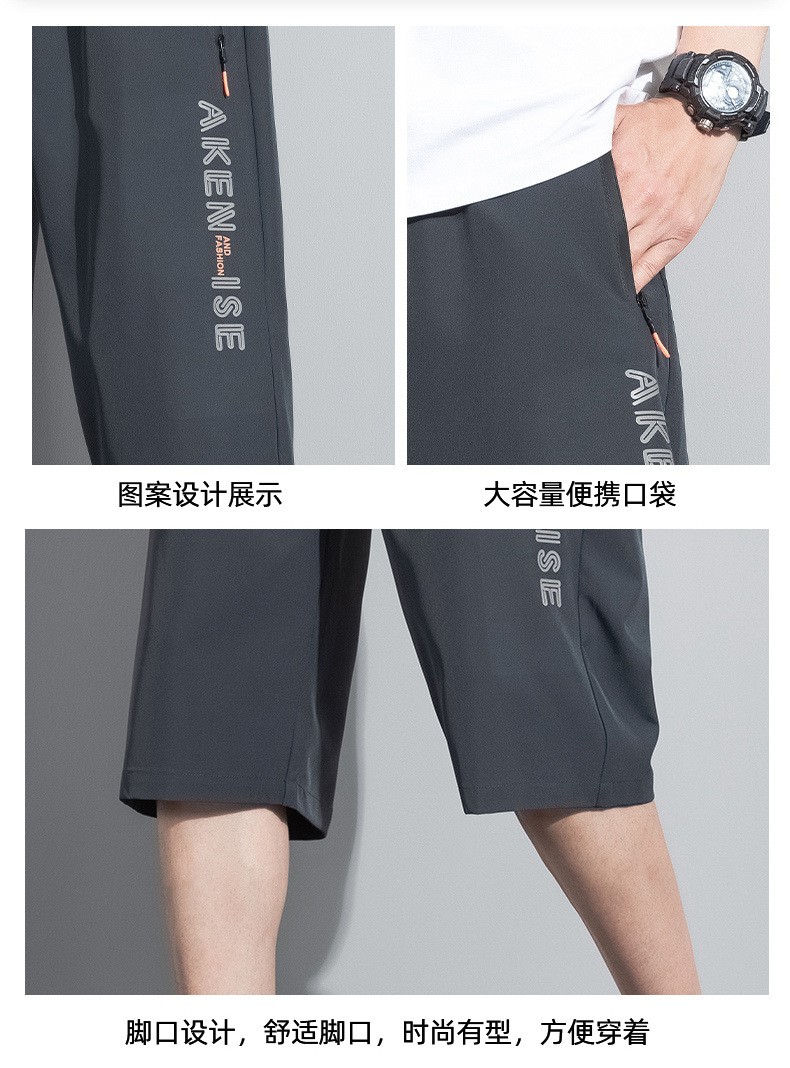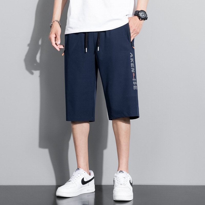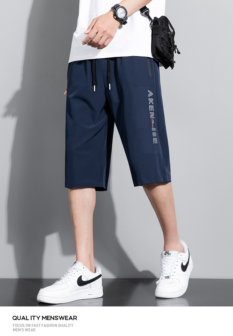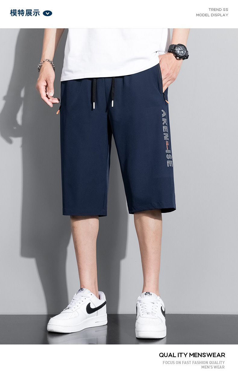 여름 아이스 실크 얇은 반바지 남자 유행 브랜드 빠른 건조 스포츠 스트레이트 플러스 사이즈 통기성 캐주얼 카프리 바지