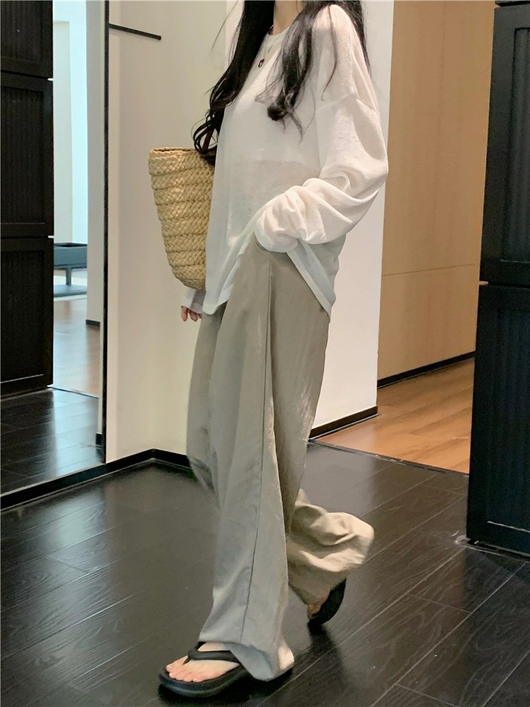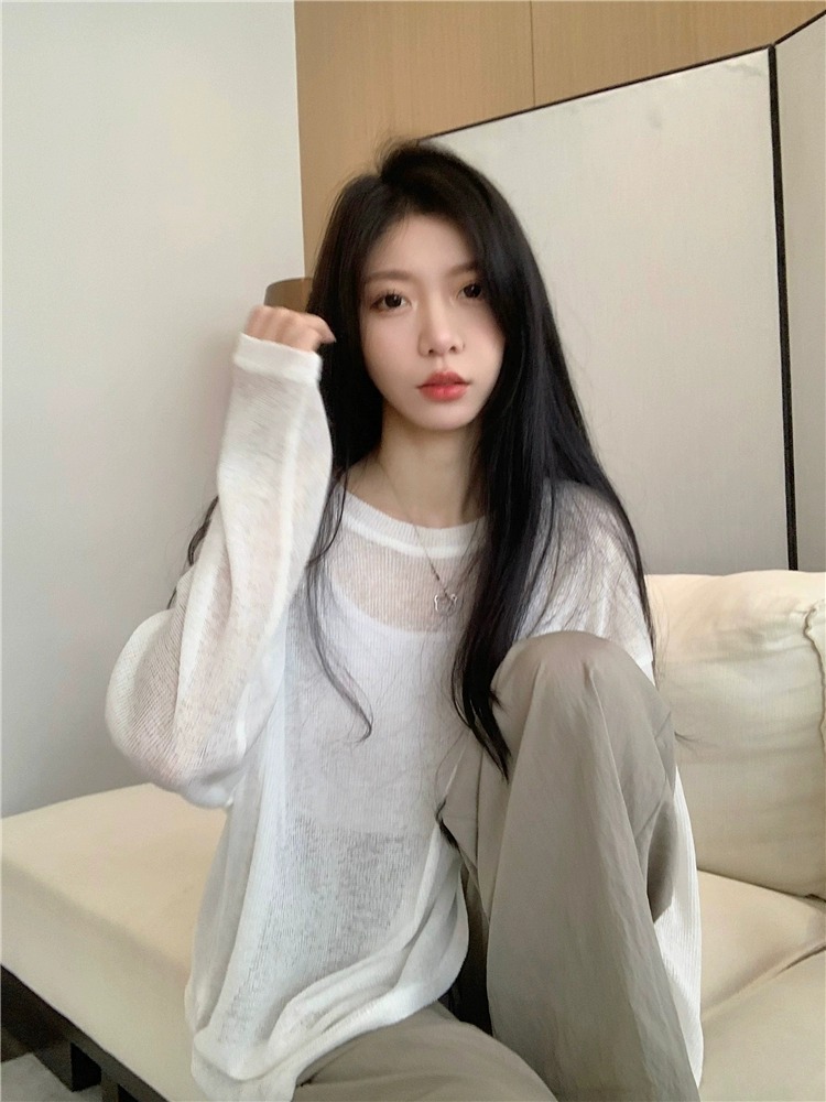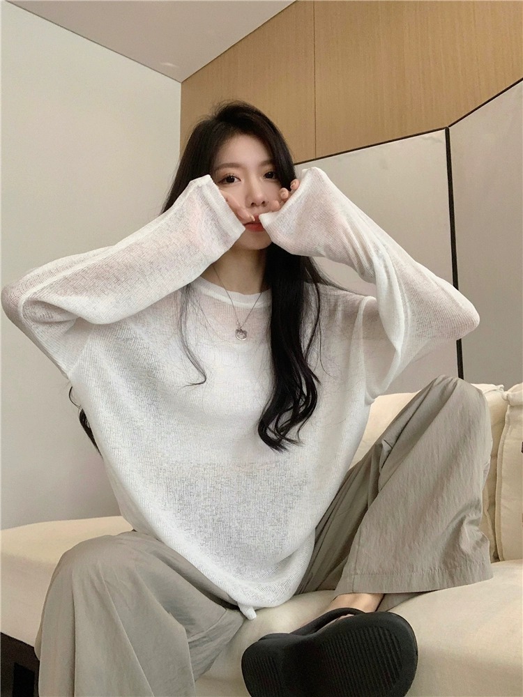 소프트 왁스 게으른 스타일 선 스크린 블라우스 세련된 여름 얇은 긴팔 티셔츠 여성용 느슨한 캐주얼 슬리밍 탑