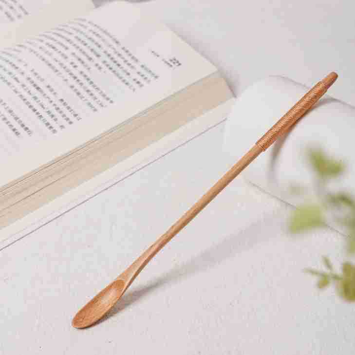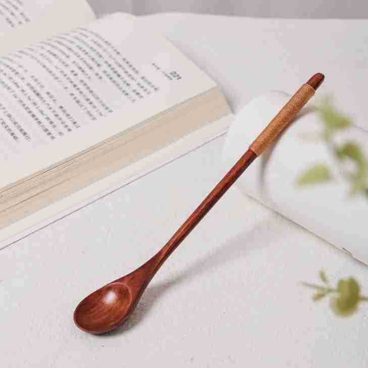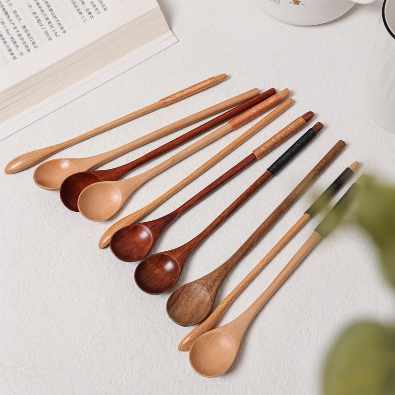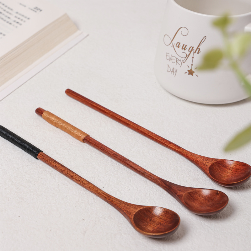 창의적인 나무 긴 손잡이 숟가락, 가정용 얇은 손잡이 실로 감싼 작은 숟가락, 커피, 밀크티, 꿀 섞는 숟가락 도매