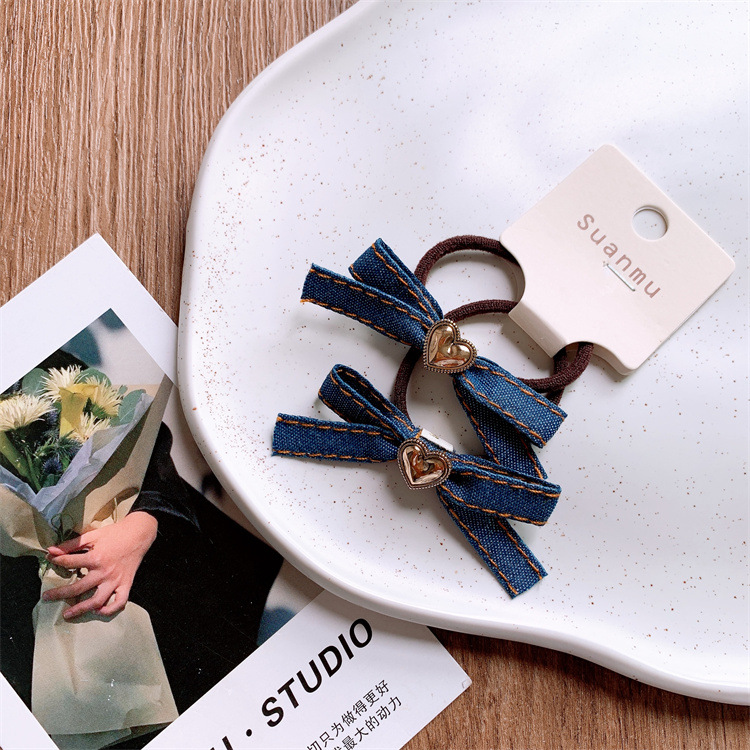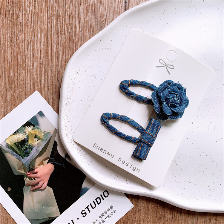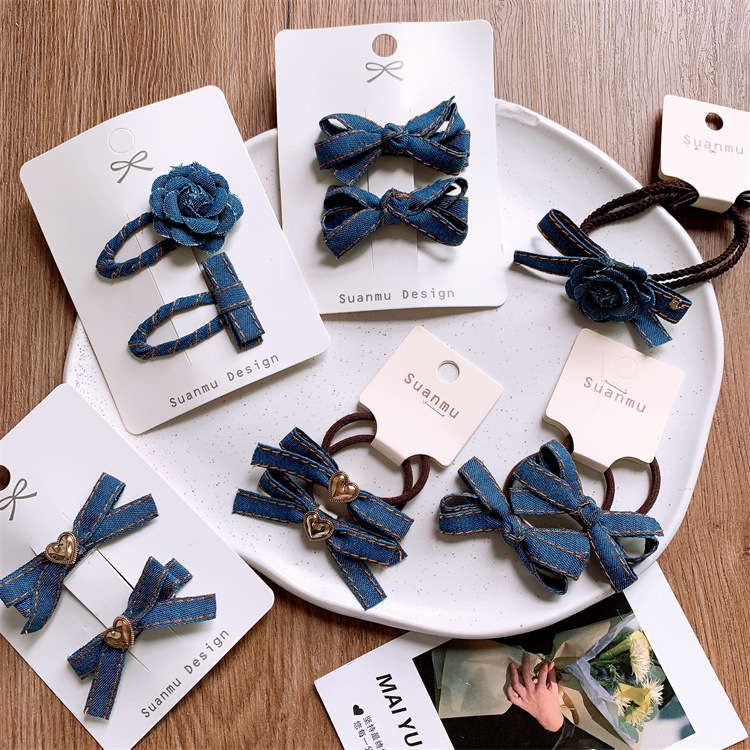 어린이 데님 원단 활 꽃 헤어핀 헤어 밴드 사이드 브로큰 머리 BB 클립 걸스 헤어 밴드스토어 가기