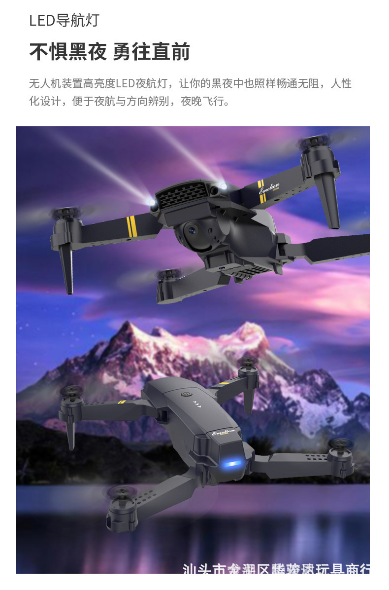 국경 간 HD 4K 항공 사진 원격 제어 항공기 어린이 장난감 싱글 및 더블 카메라 접이식 4 축 항공기 E58 드론스토어 가기