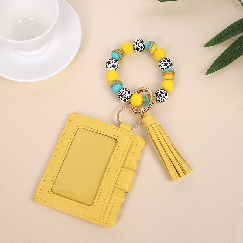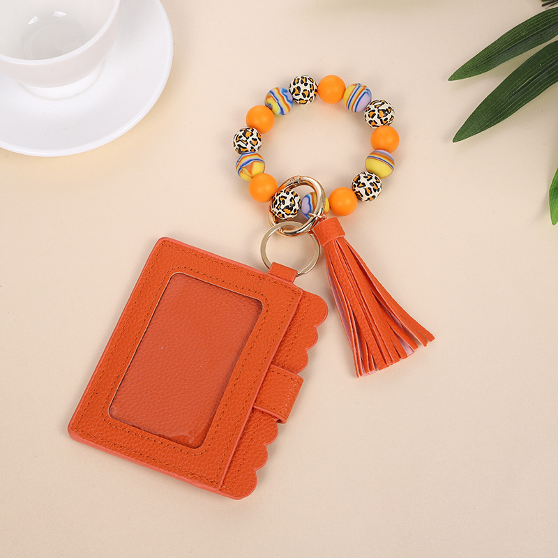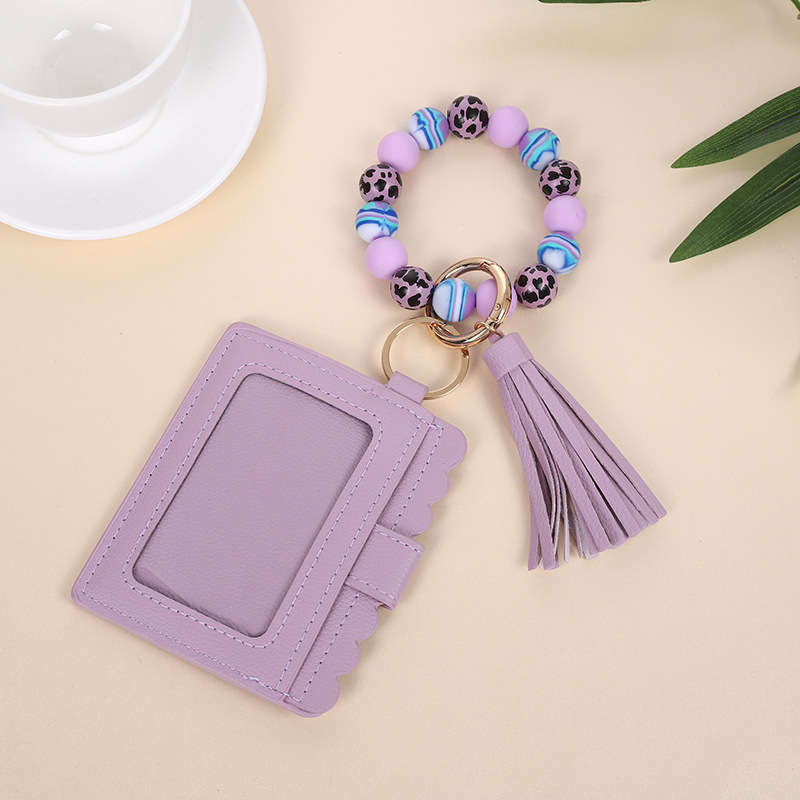 아마존 새로운 컬러 인쇄 실리콘 구슬 팔찌 키 체인 여성의 창조적 인 변화 입 빨간 봉투 인증서 카드 홀더