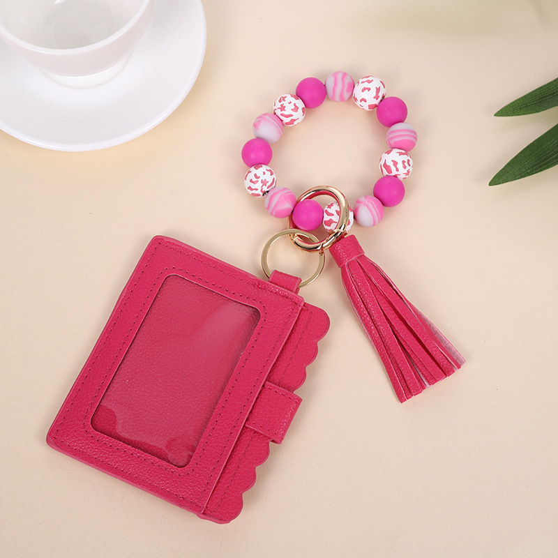 아마존 새로운 컬러 인쇄 실리콘 구슬 팔찌 키 체인 여성의 창조적 인 변화 입 빨간 봉투 인증서 카드 홀더스토어 가기