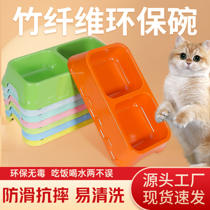 애완 동물 더블 그릇 고양이 그릇 개 그릇 환경 친화적 인 멜라민 그릇 모방 세라믹 고양이 분지 개 분지 안티 노크 스퀘어 워터 피더