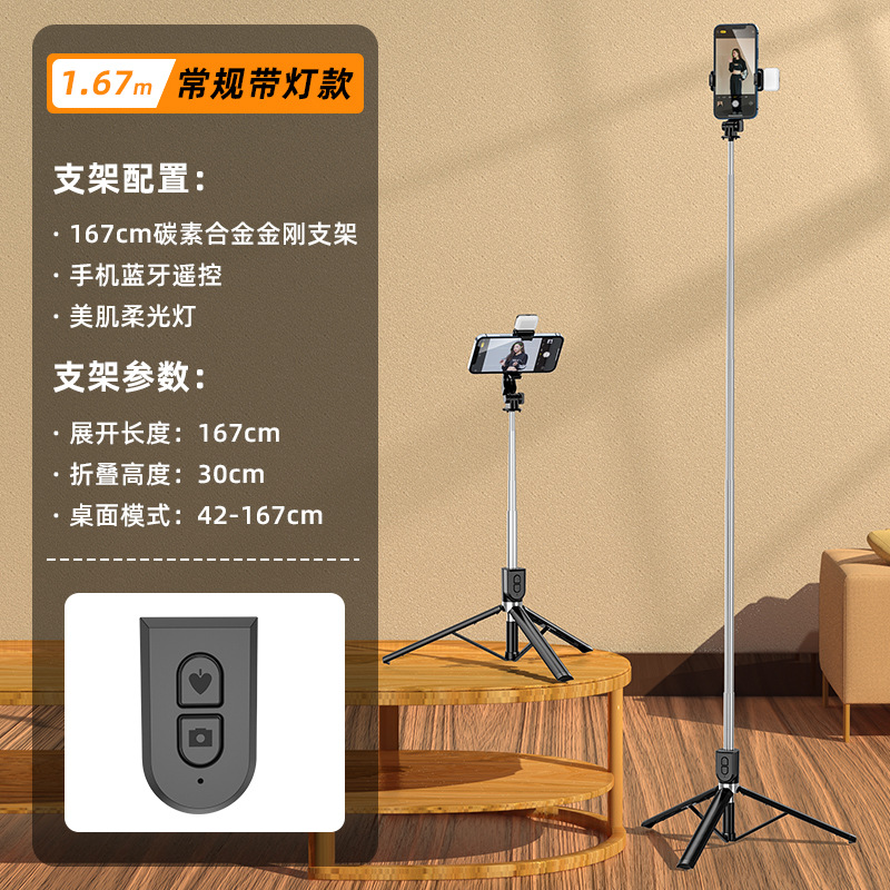 블루투스 셀카 스틱 삼각대 통합 휴대 전화 범용 라이브 스탠드 라이브 더 긴 빛 흔들림 방지 핸드 스페셜