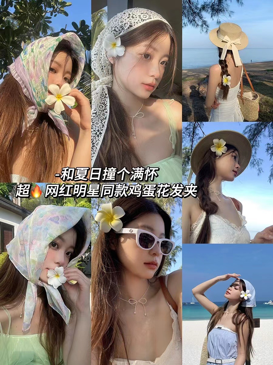 해변 해변풍 인조 헤드플라워, 플루메리아 헤어핀, 여행 및 휴가지 신부 머리장식, 헤어 액세서리 도매, 수제스토어 가기