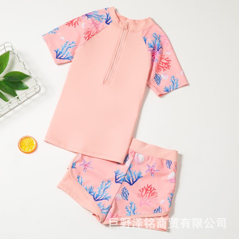 만화 분할 소녀 수영복 세트 빠른 건조 태양 보호 2 피스 수영복 중 및 빅 어린이를위한 전문 훈련 수영복스토어 가기