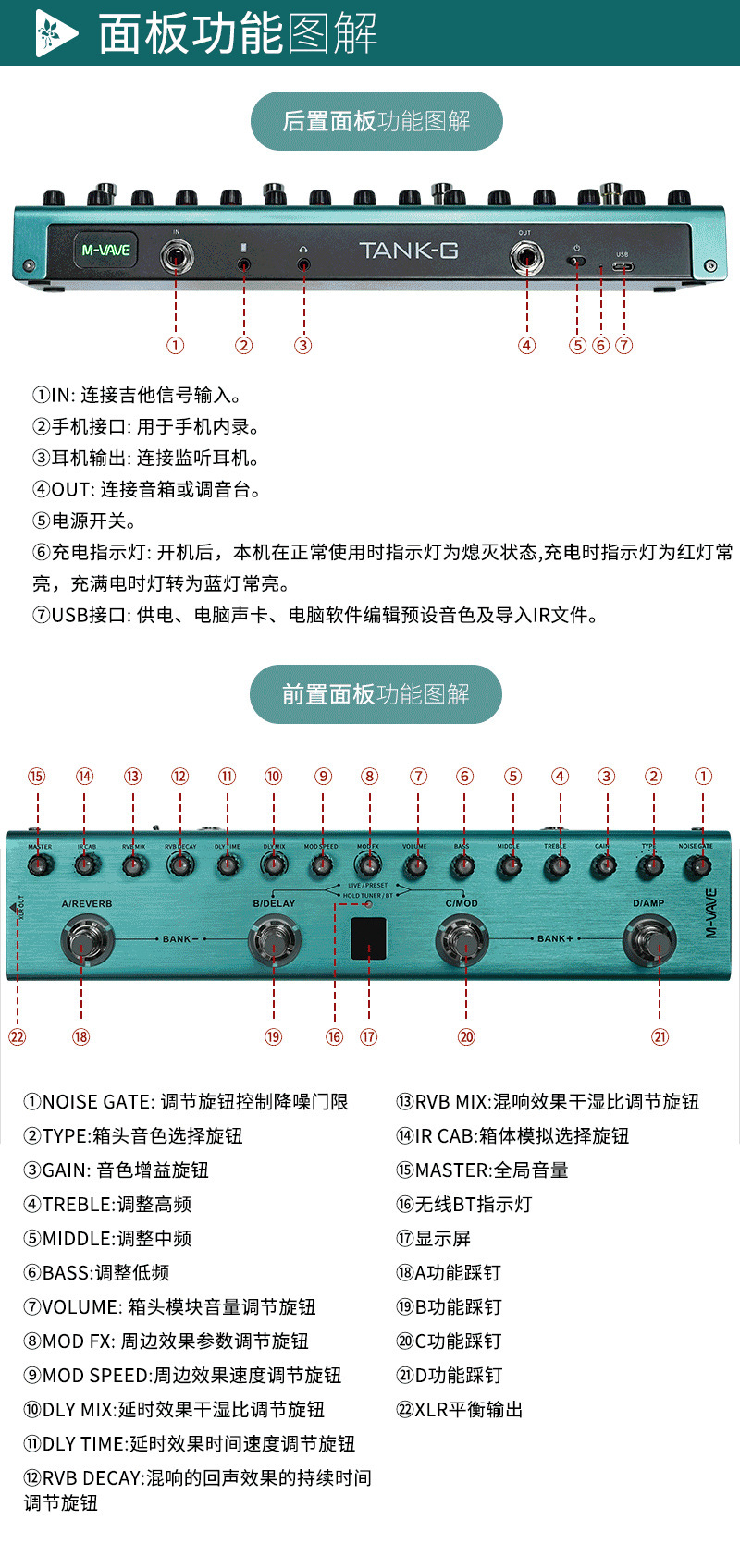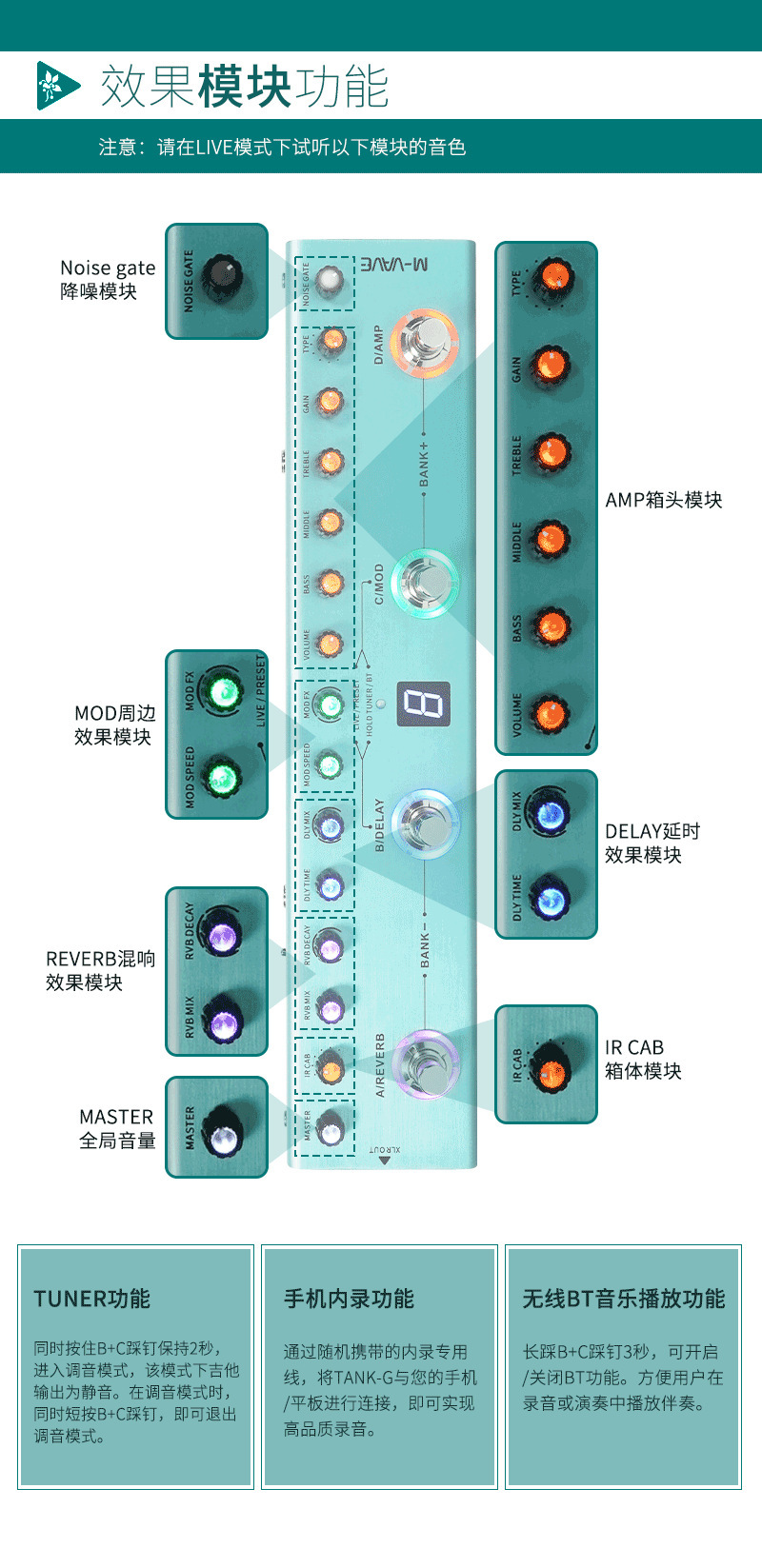 M-VAVE 일렉트릭 기타 이펙터 종합 이펙터 지연 리버브 TANK-G 국경 간 아마존