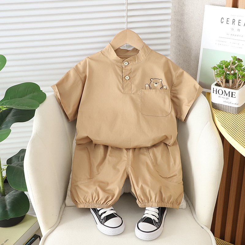 한 세대의 대외 무역 소년 여름 세트 2024 새로운 어린이 여름면과 린넨 짧은 소매 셔츠 소년 아기스토어 가기