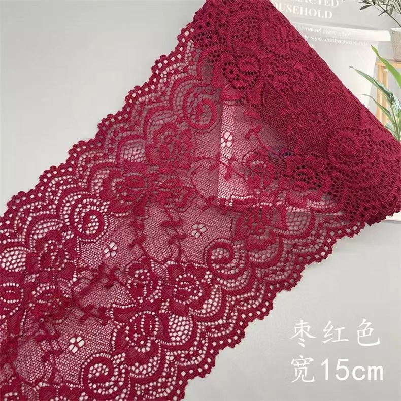 재고 15cm 스트레치 컬러 할로우 자수 레이스 니트 여성용 섹시한 란제리 의류 스커트 레이스스토어 가기