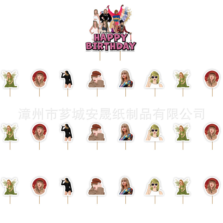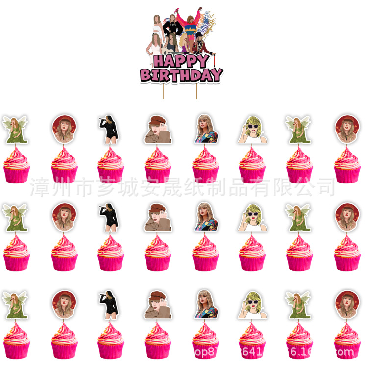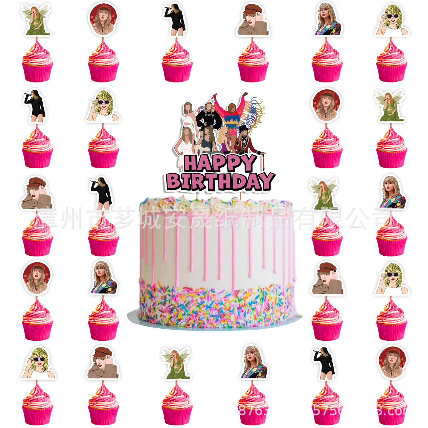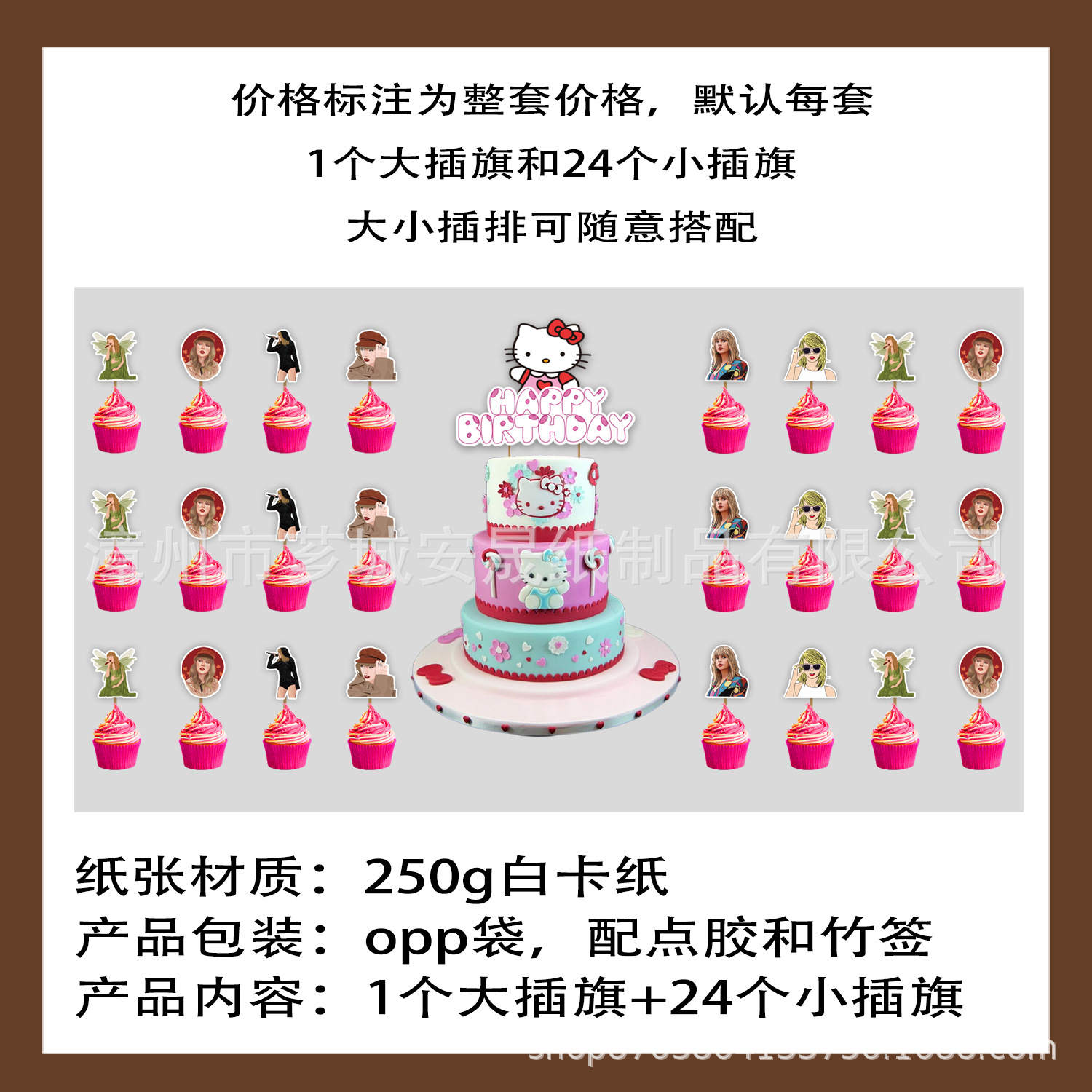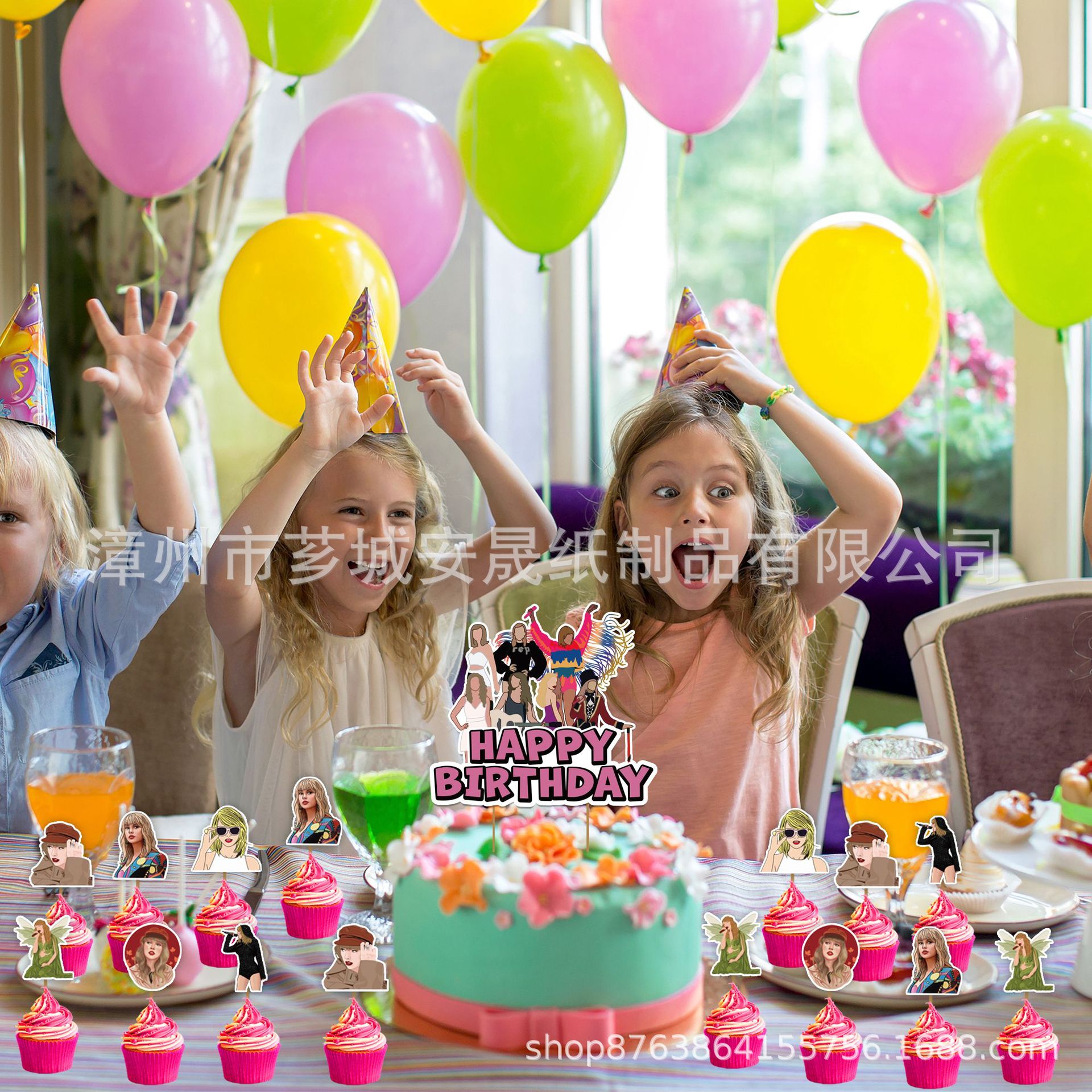 테일러 4 테마 생일 장면 배치 용품 파티 장식 용품 케이크 크기 판 깃발 세트