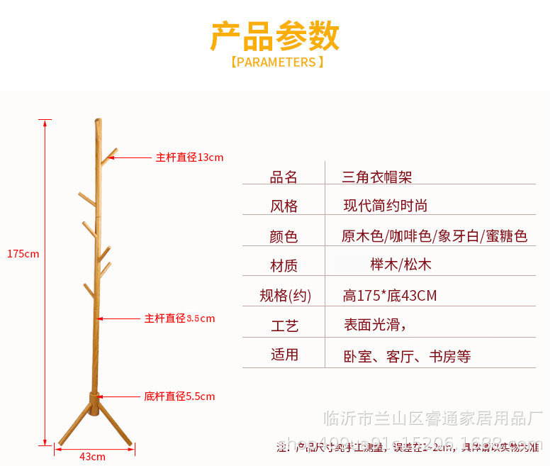 단단한 나무 코트 랙 가정용 바닥 수직 걸이 거실 옷 저장 랙 기숙사 간단한 옷 교수형 랙