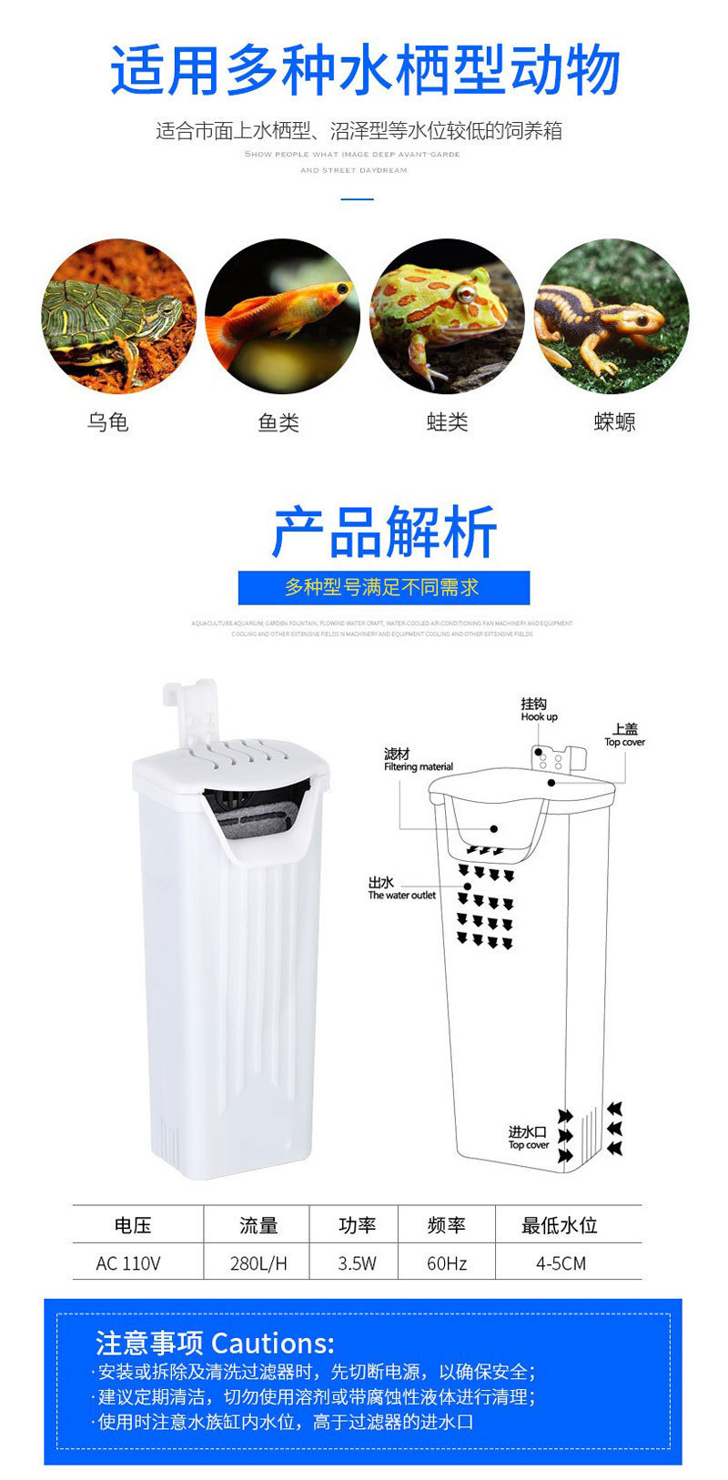 어항 거북이 낮은 수위 필터 수족관 공급 산소 펌프 산소 사이클 음소거 폭포 필터 도매스토어 가기