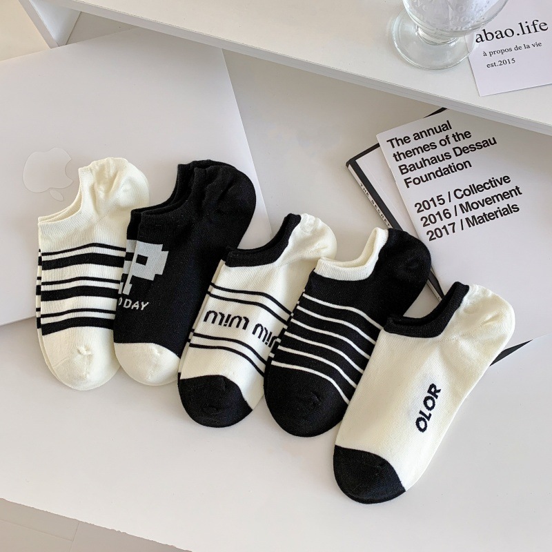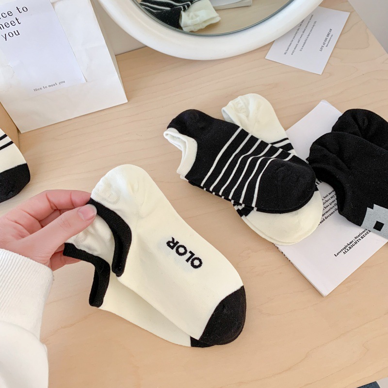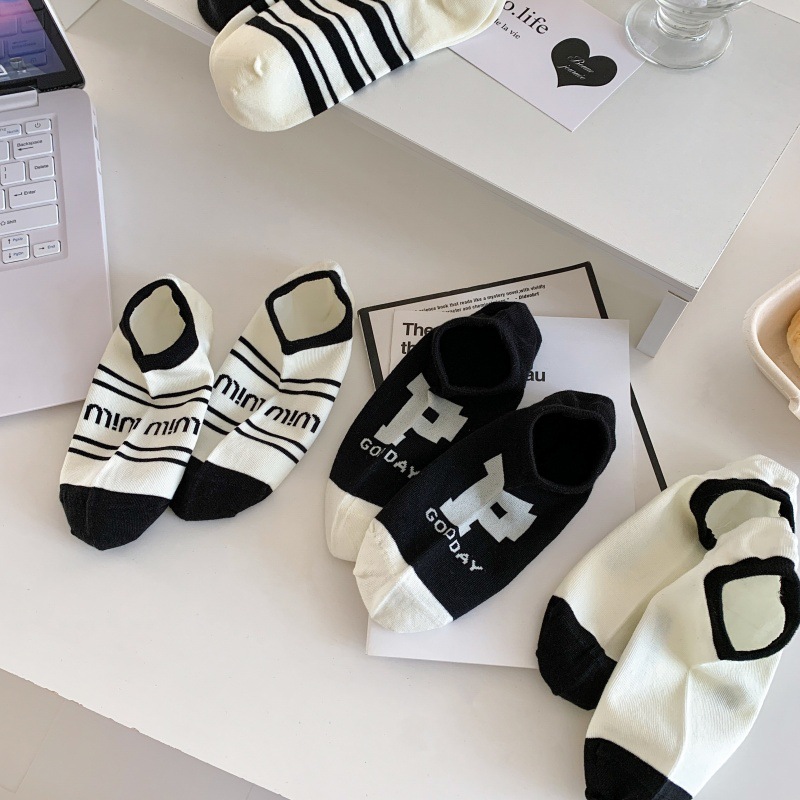 보트 양말 여성의 얕은 입 여름 얇은 짧은 보이지 않는 양말면 미끄럼 방지 힐 양말 흑백 여성용 양말