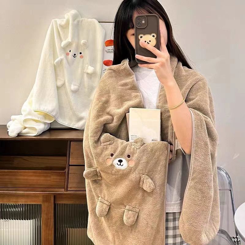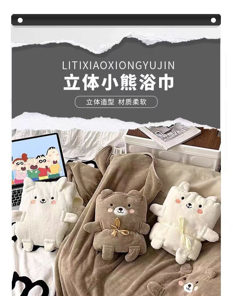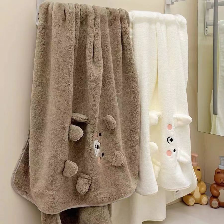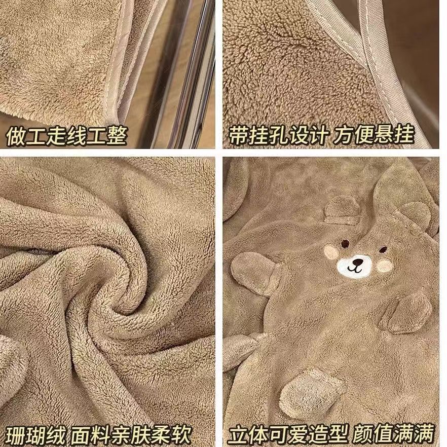 3 차원 곰 산호 양털 빠른 건조 목욕 타월 자수 두꺼운 가장자리 귀여운 성인 학생 기숙사 포장 수건 가구