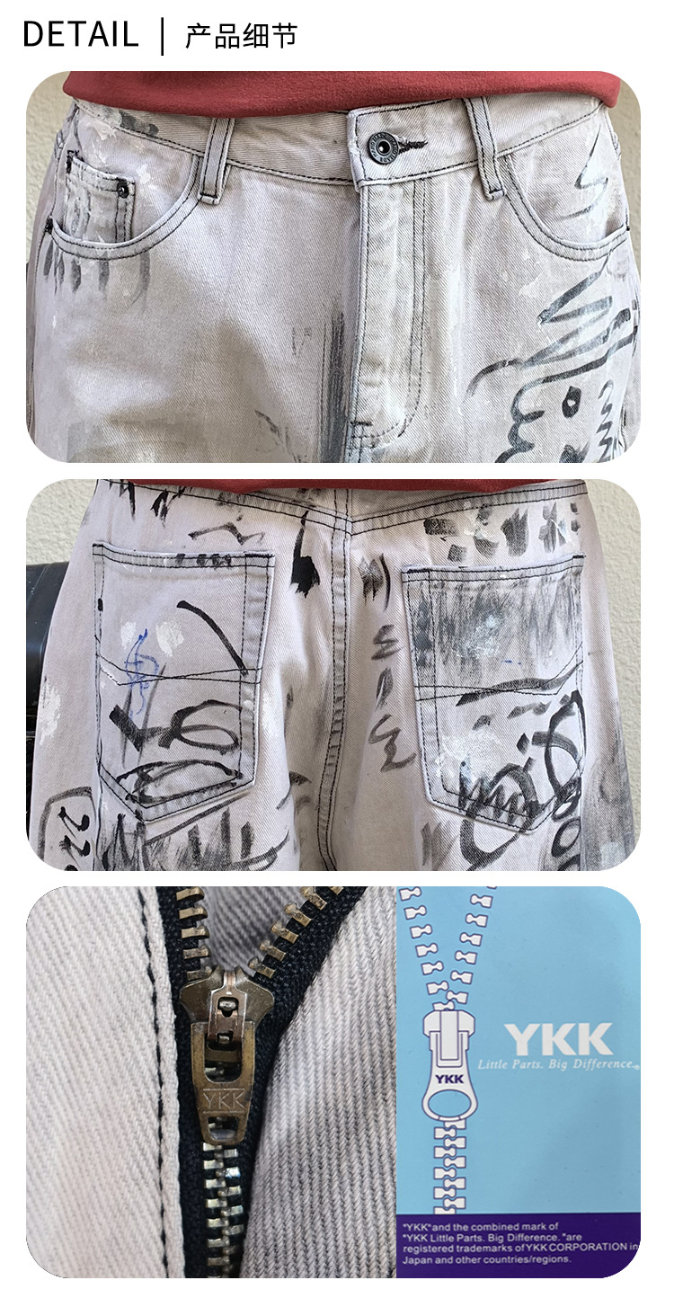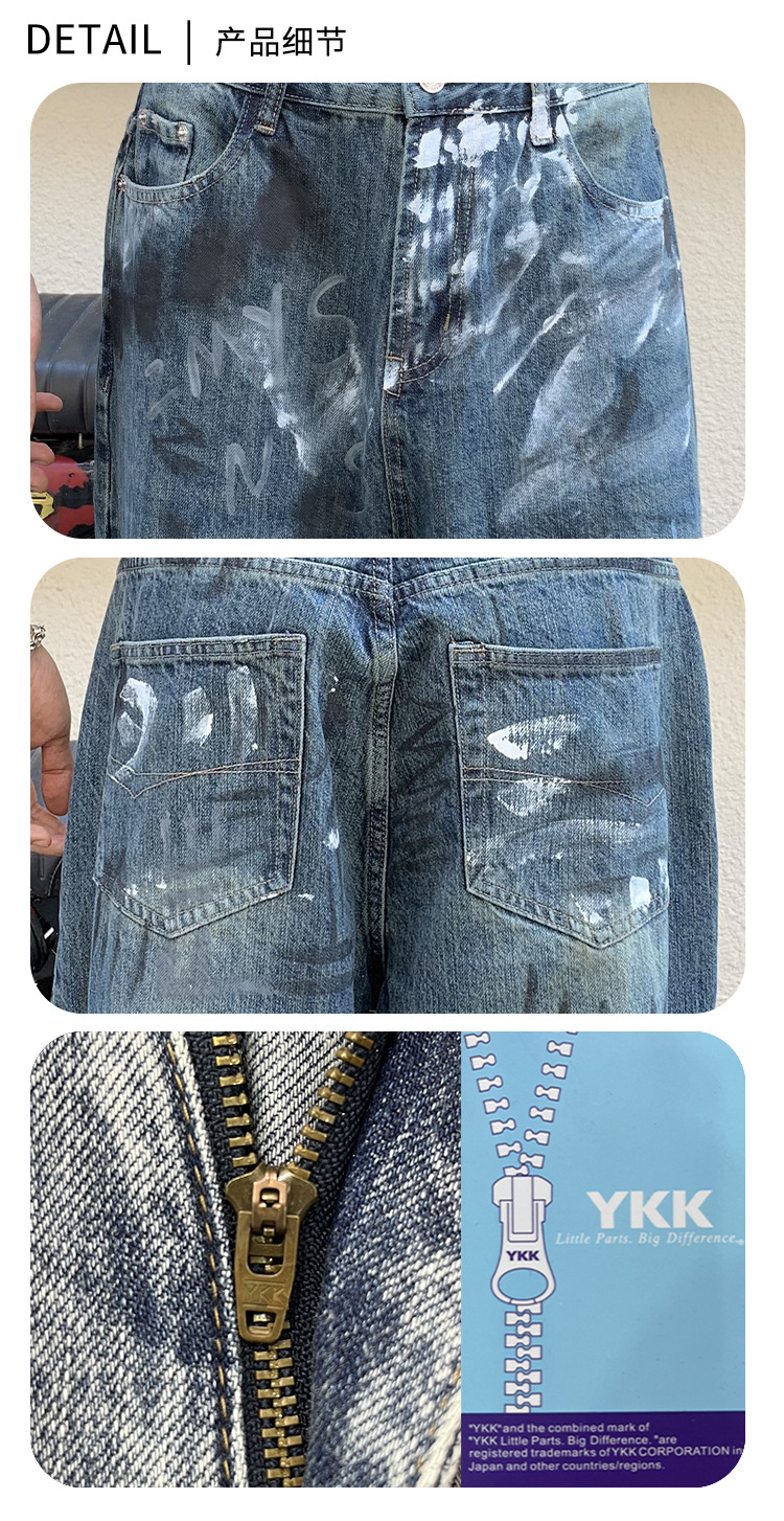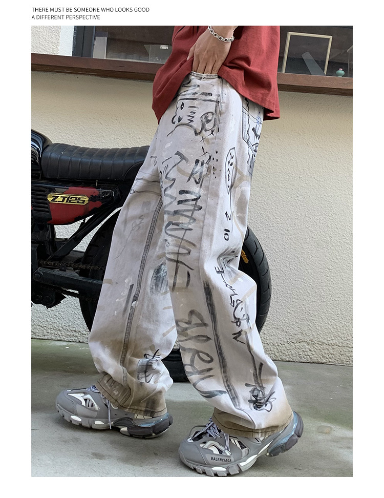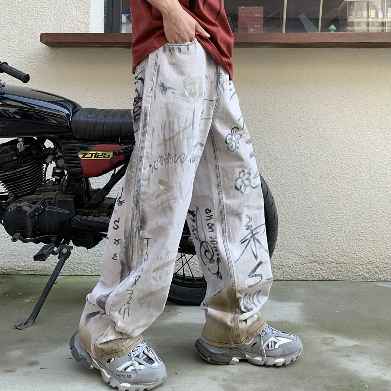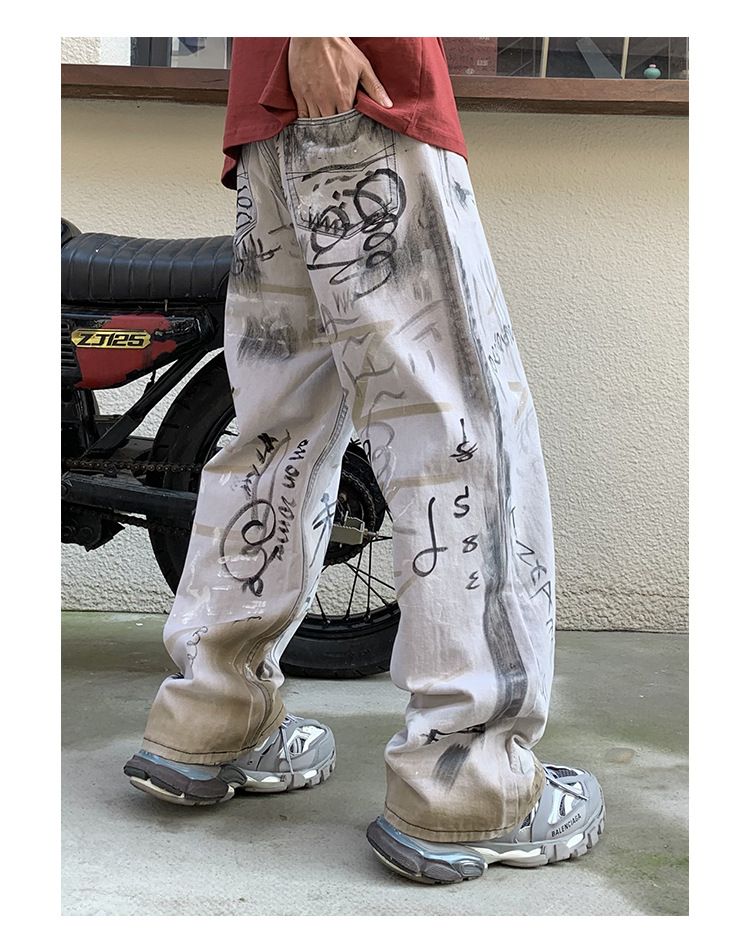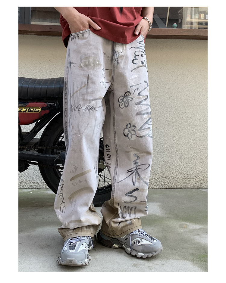 2024 봄 축제 미국 스타일 패션 브랜드 와이드 레그 올 매치 청바지 남성 스트리트 러피언 핸디솜 그래피티 레트로 캐주얼 바지스토어 가기