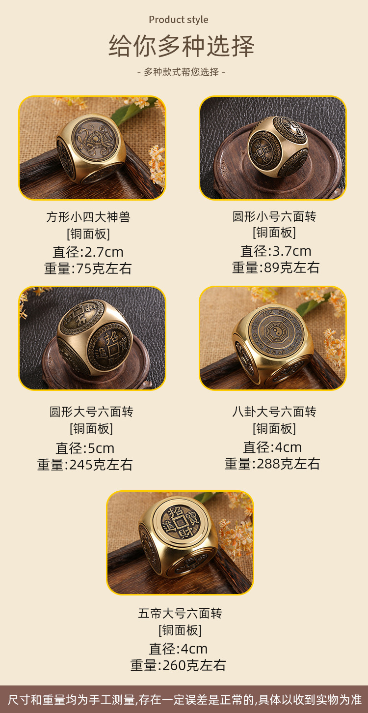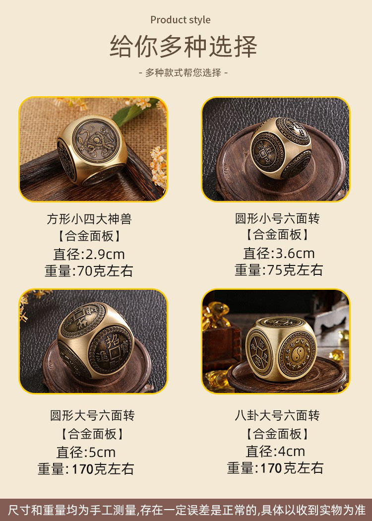황동 6 면 구형 압축 회전 손 손잡이 광장 5 황제 돈 시간 데스크탑 작은 장식품