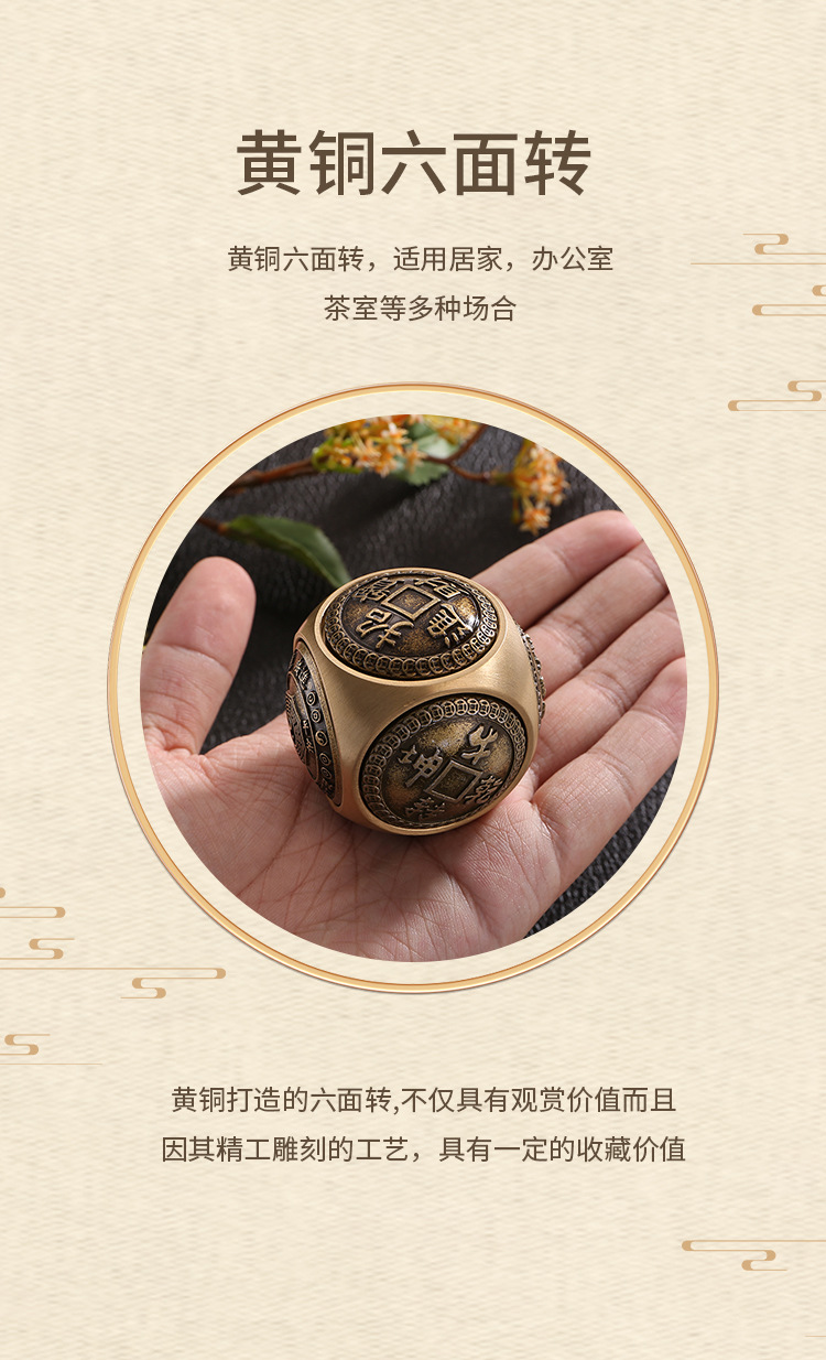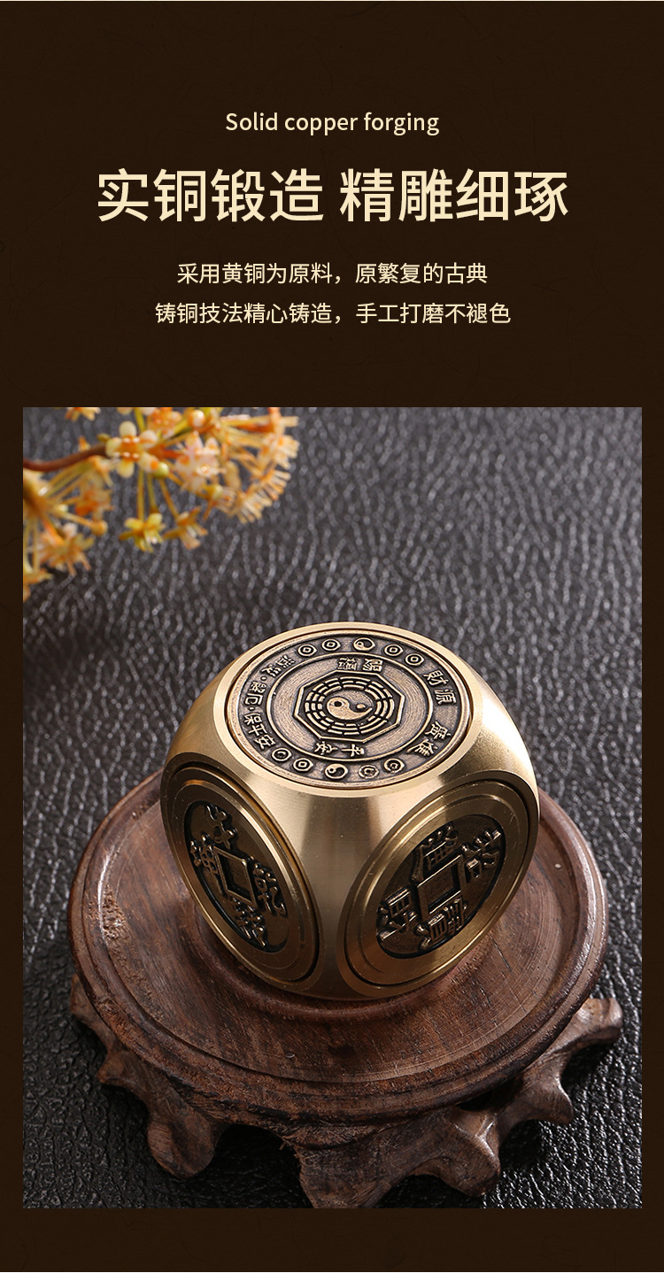 황동 6 면 구형 압축 회전 손 손잡이 광장 5 황제 돈 시간 데스크탑 작은 장식품스토어 가기