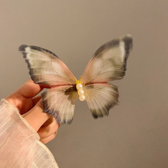 슈퍼 페어리 더블 나비 툴레 헤어핀 빈티지 하이 엔드 보우 뱅이 사이드 클립 헤어핀 헤어 액세서리 여성 도매
