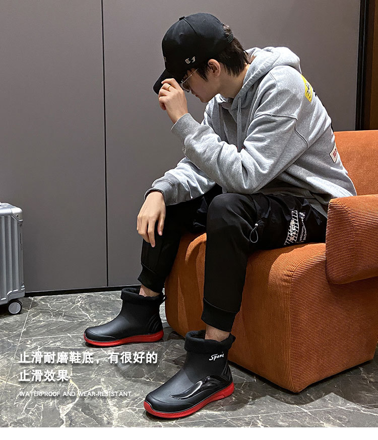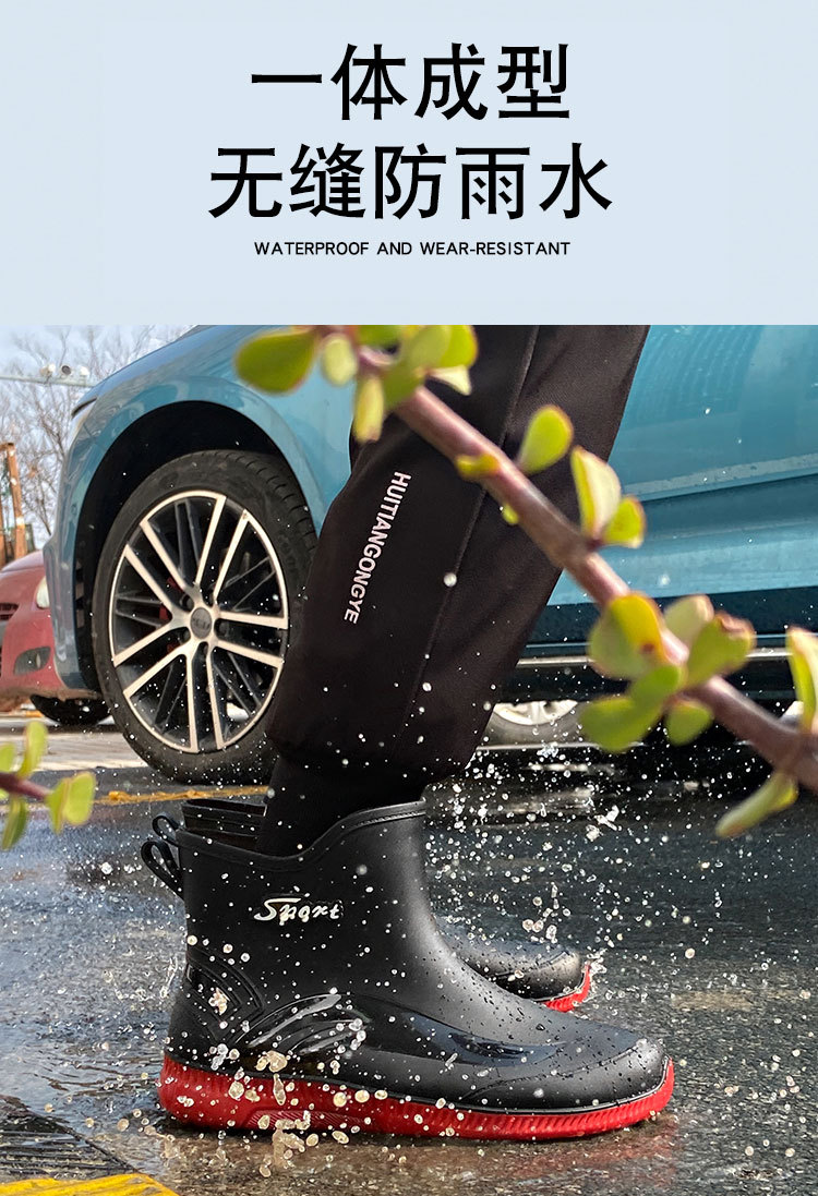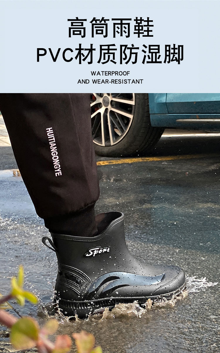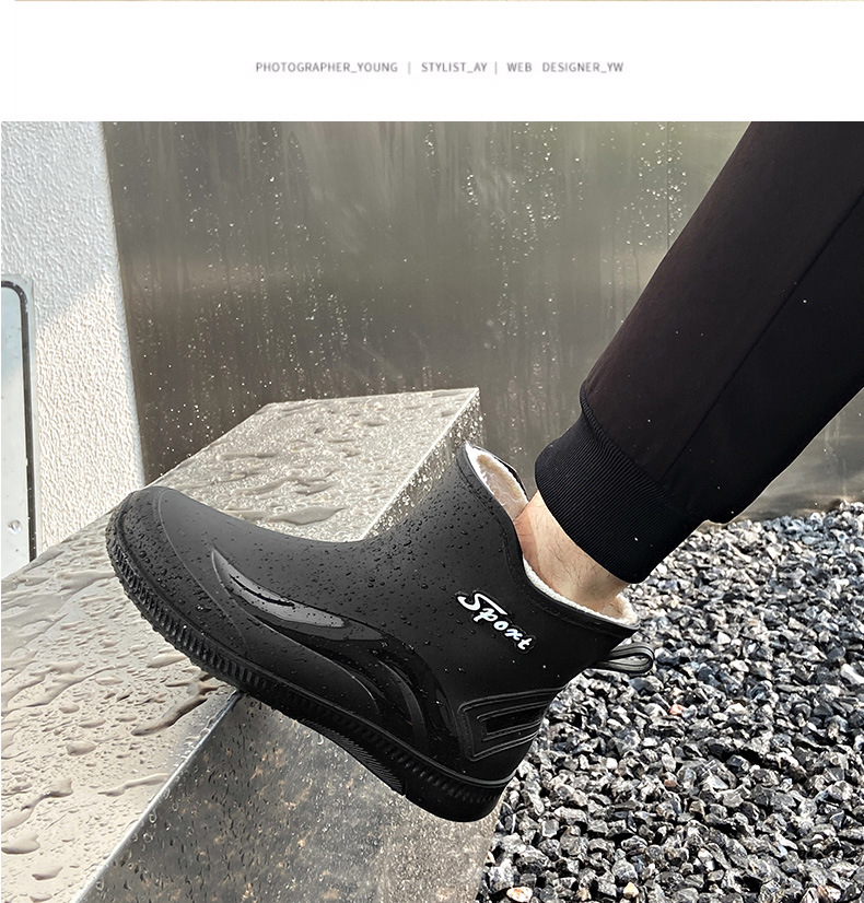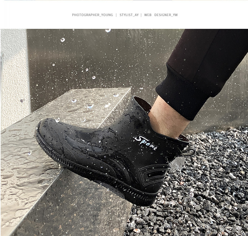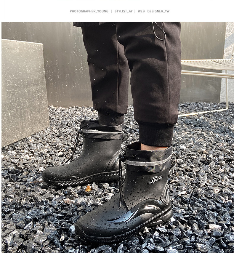 2025 새로운 패션 방수 및 미끄럼 방지 주방 워터 슈 짧은 튜브 두꺼운 내마모성 테이크 아웃 세차 낚시 장화 남성용