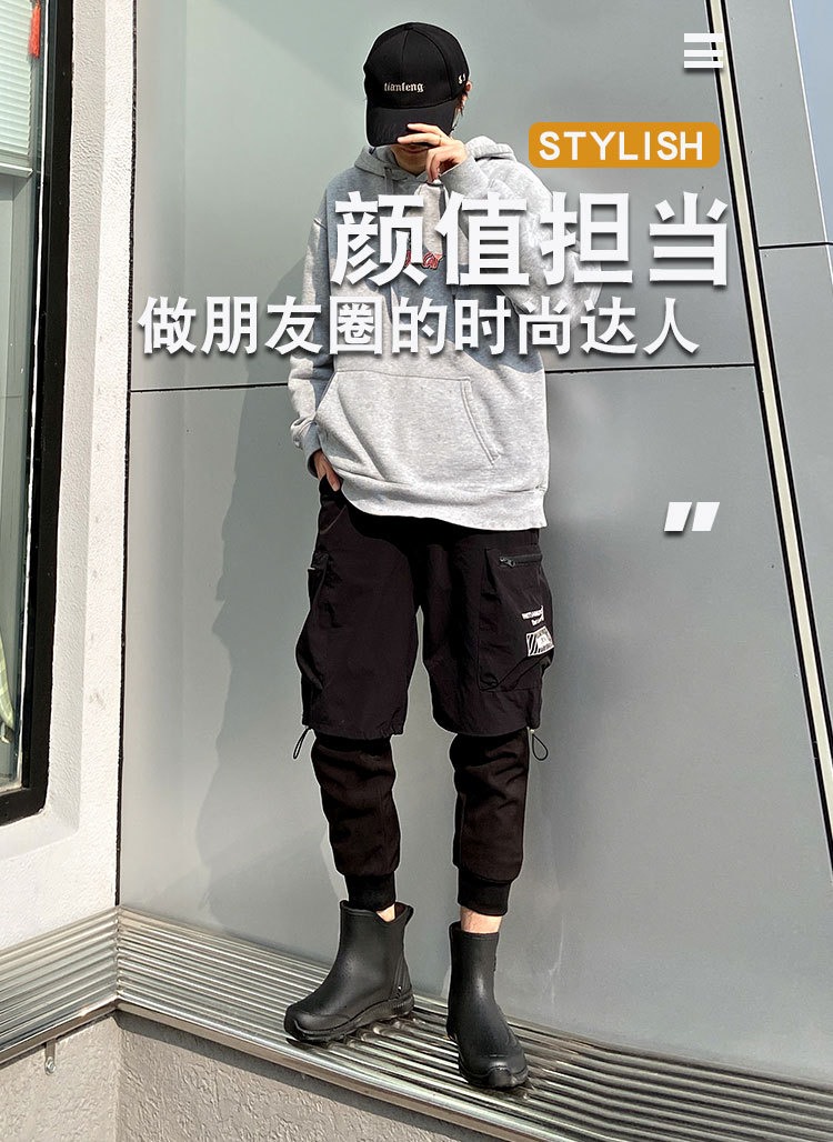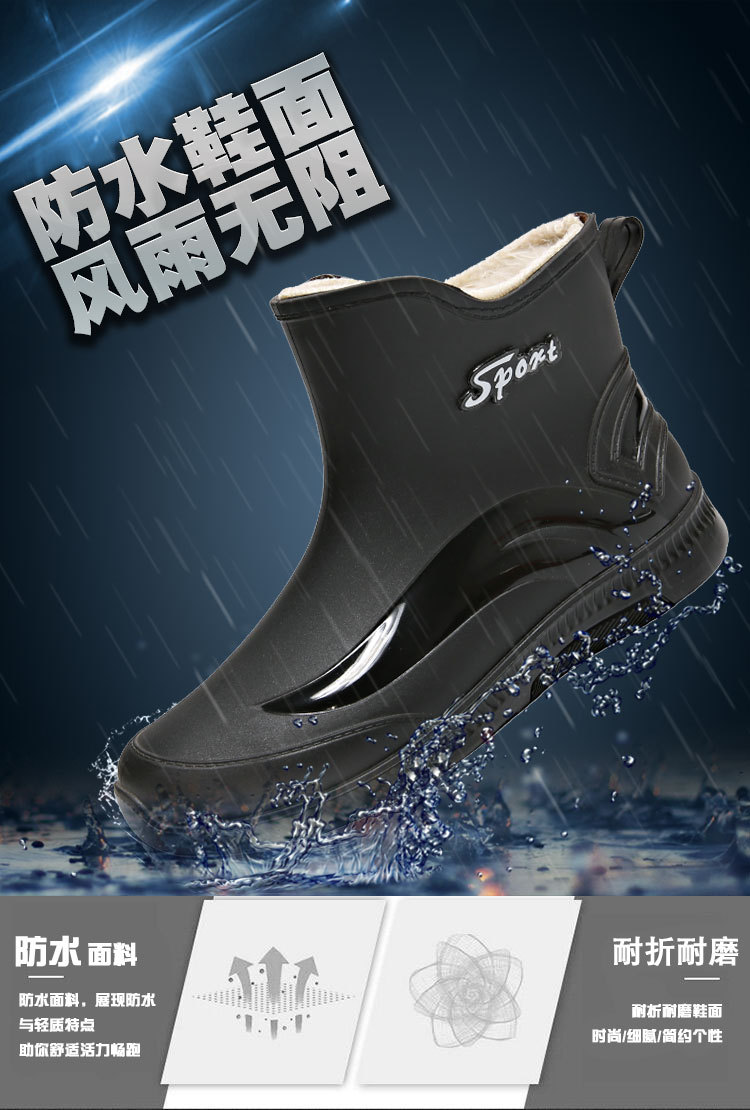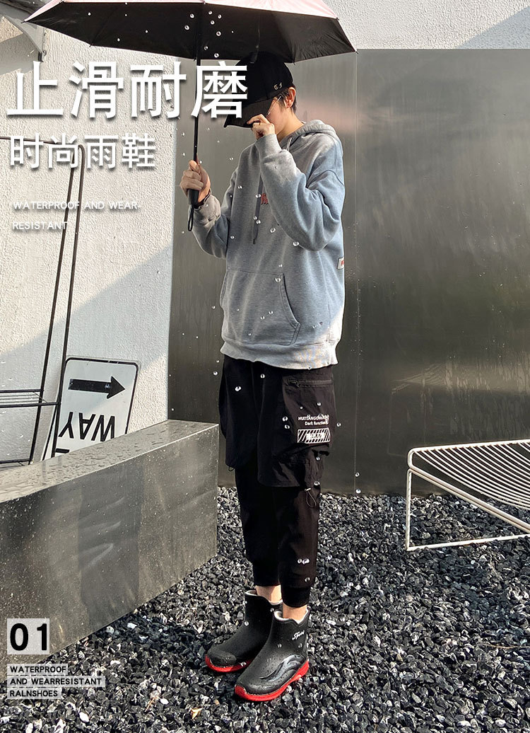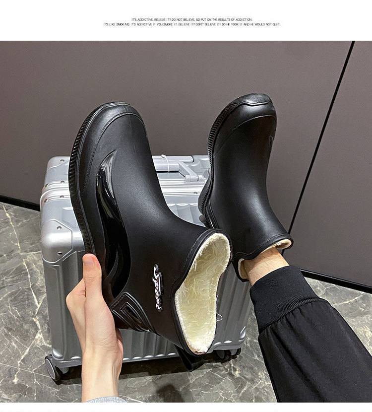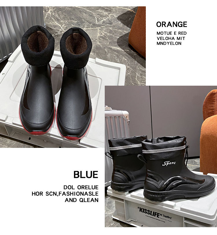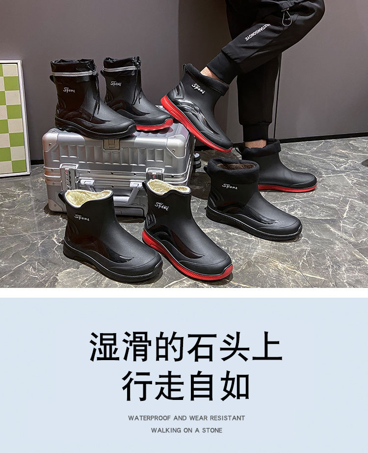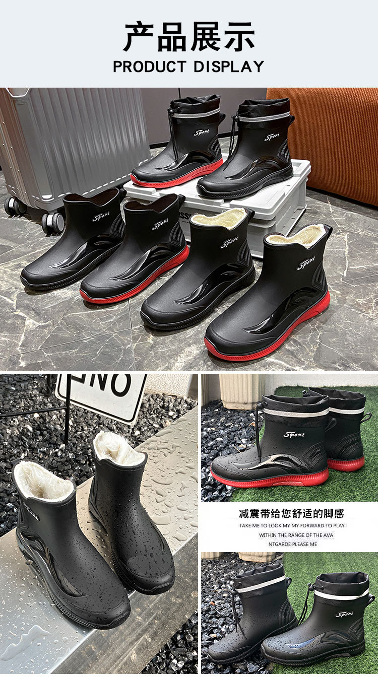 2025 새로운 패션 방수 및 미끄럼 방지 주방 워터 슈 짧은 튜브 두꺼운 내마모성 테이크 아웃 세차 낚시 장화 남성용