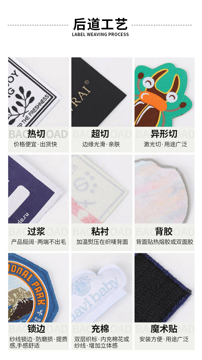의류 직조 마크 칼라 마크 물 세척 마크 맞춤형 의류 상표 천 마크 물 세척 고밀도 면 벨트 장식 직조 마크 로고스토어 가기
