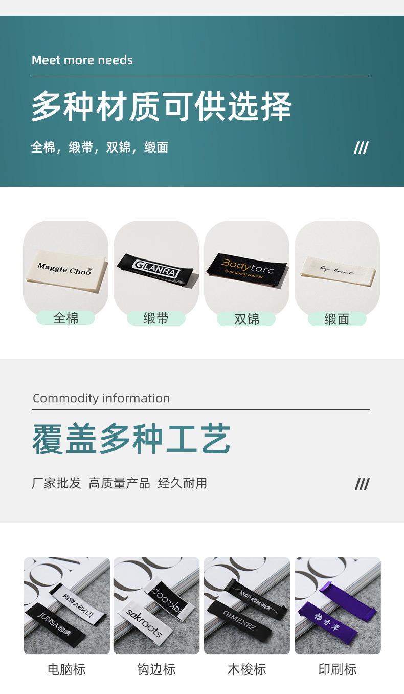 의류 직조 마크 칼라 마크 물 세척 마크 맞춤형 의류 상표 천 마크 물 세척 고밀도 면 벨트 장식 직조 마크 로고