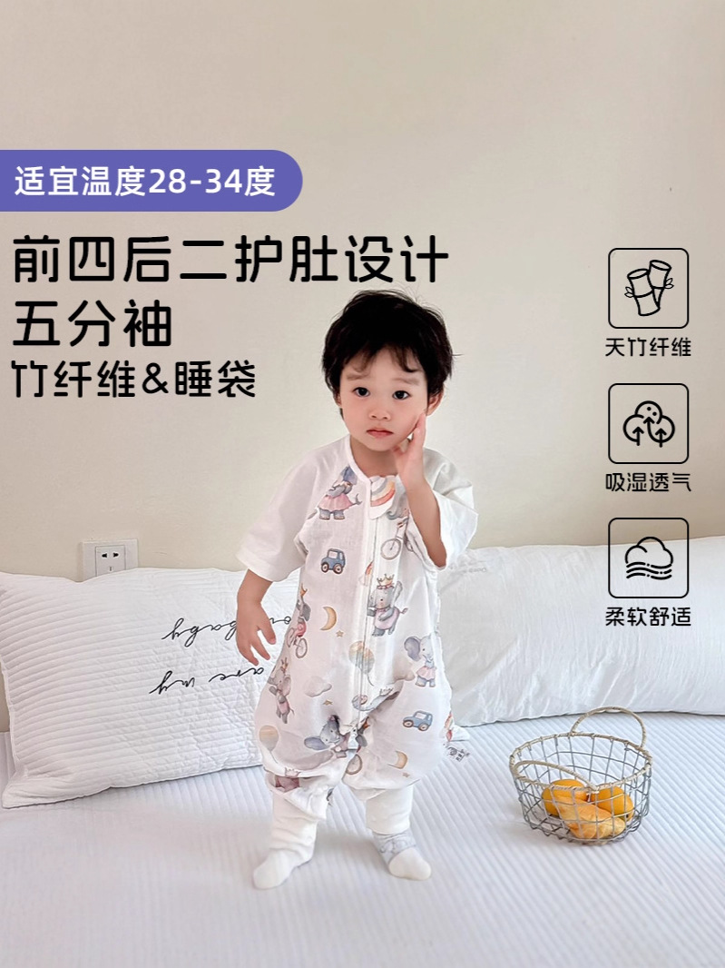 아기 슬리핑 백 앞 4 후방 2-5 소매 가방 대나무 섬유 거즈 아기 슬리핑 백 여름 킥 방지 슬리핑 백스토어 가기