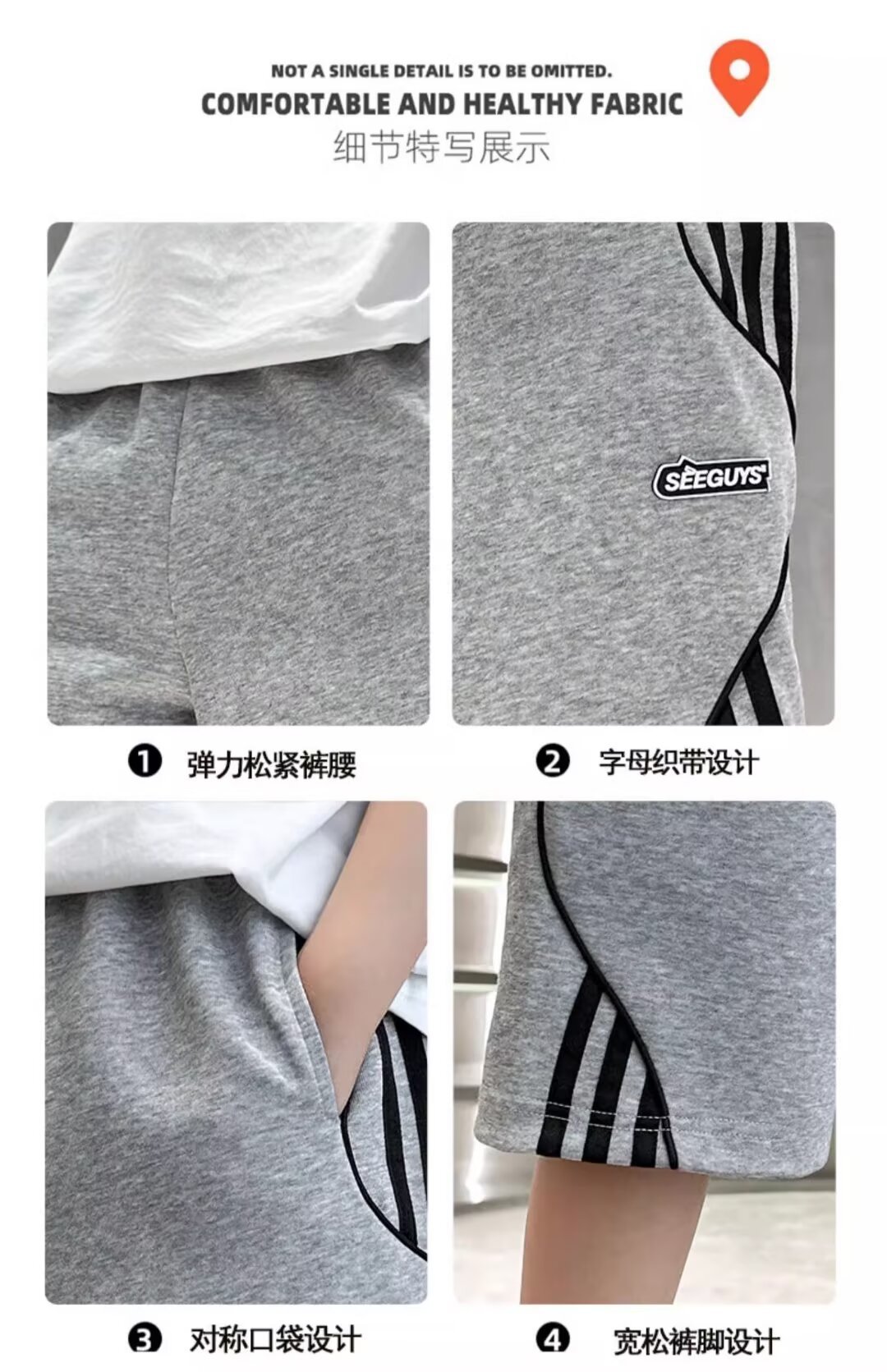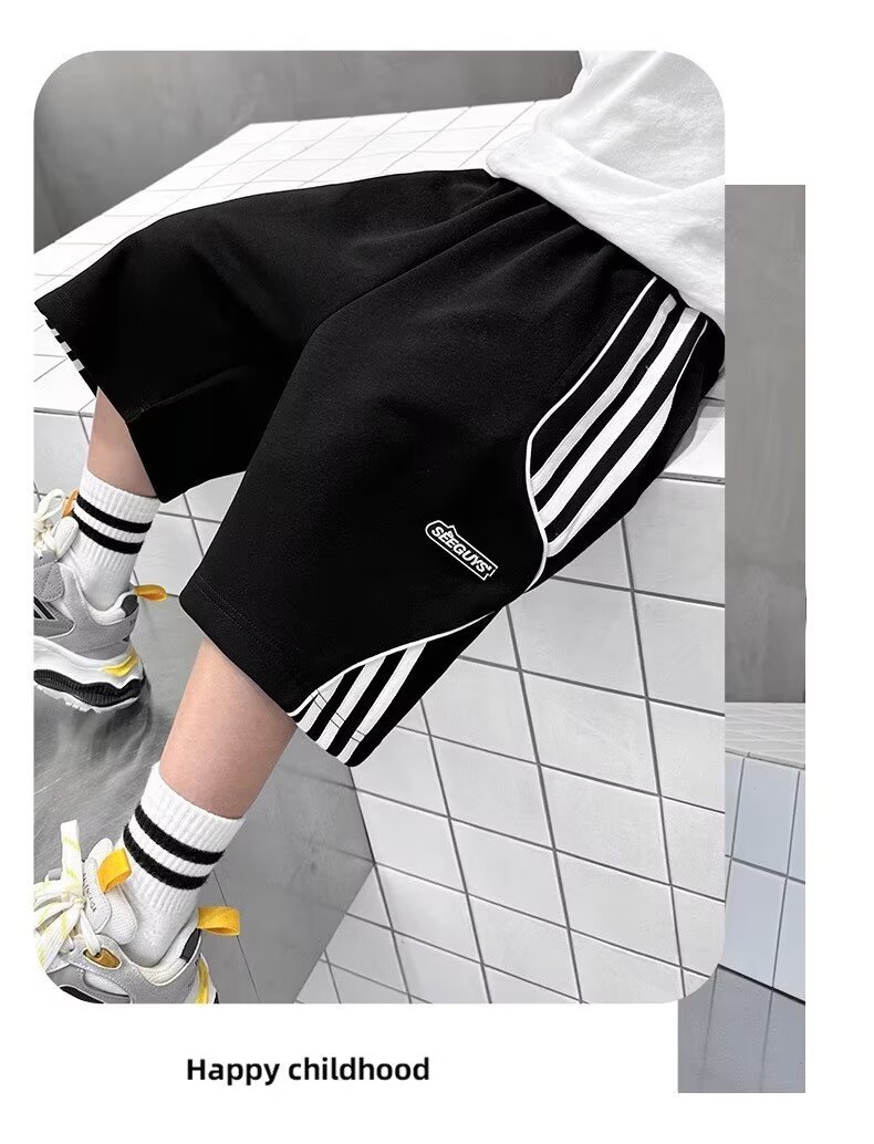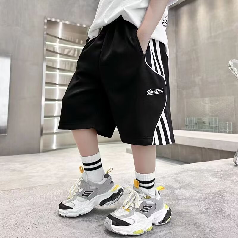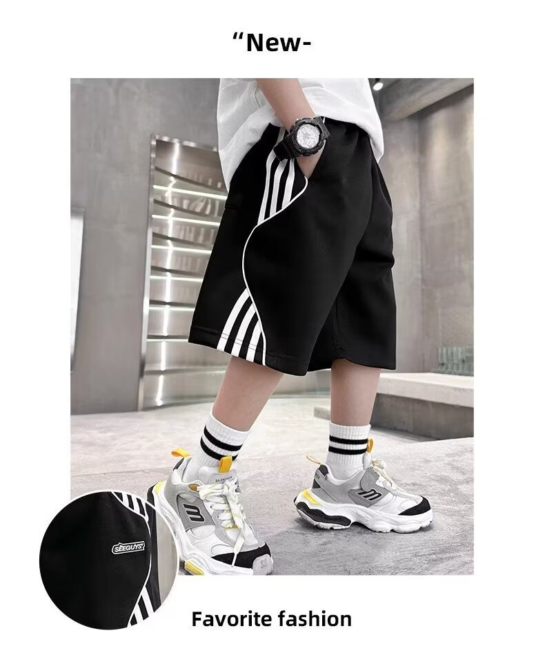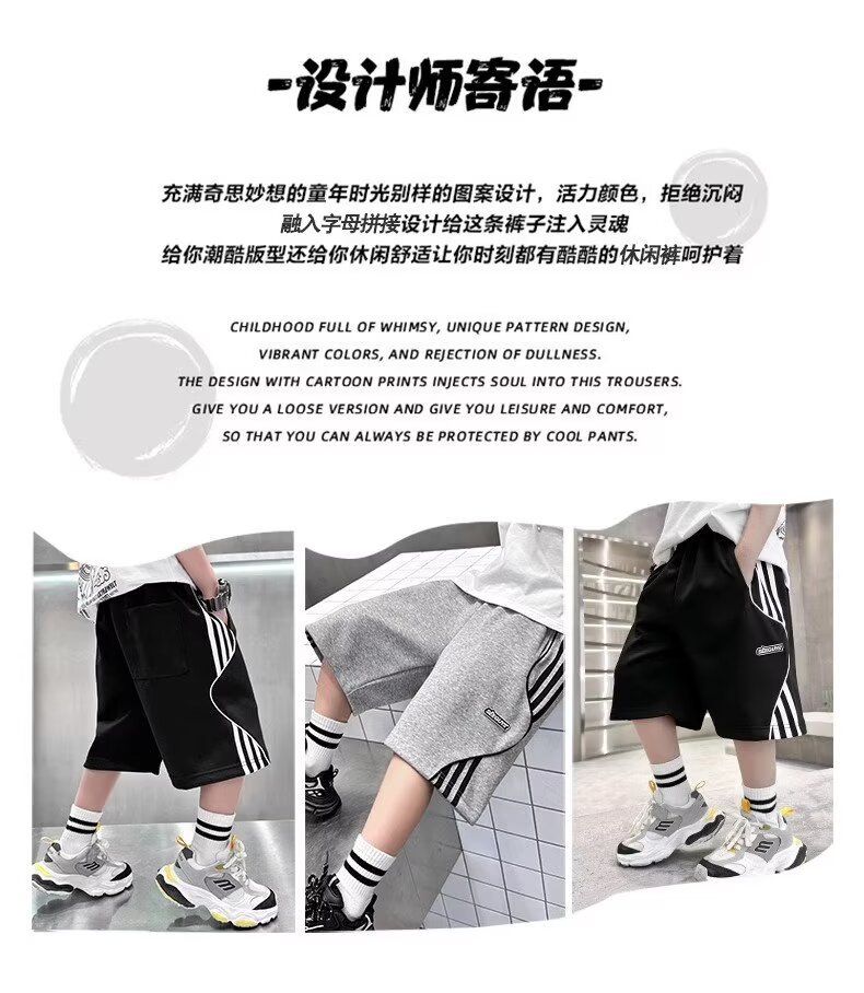 2024 새로운 소년 작업 반바지 여름 얇은 느슨한 캐주얼 5 점 바지 큰 어린이 올 매치 스포츠 바지