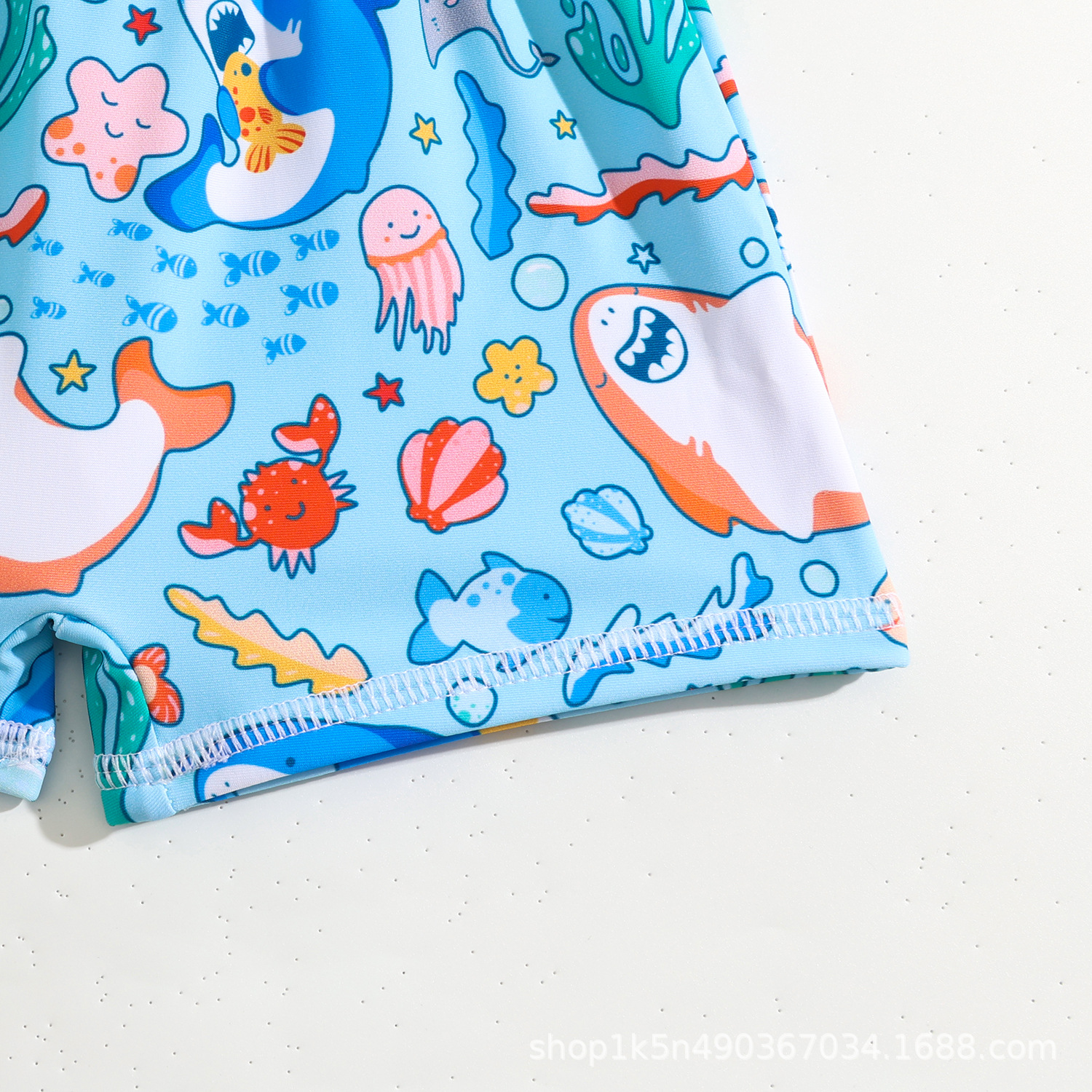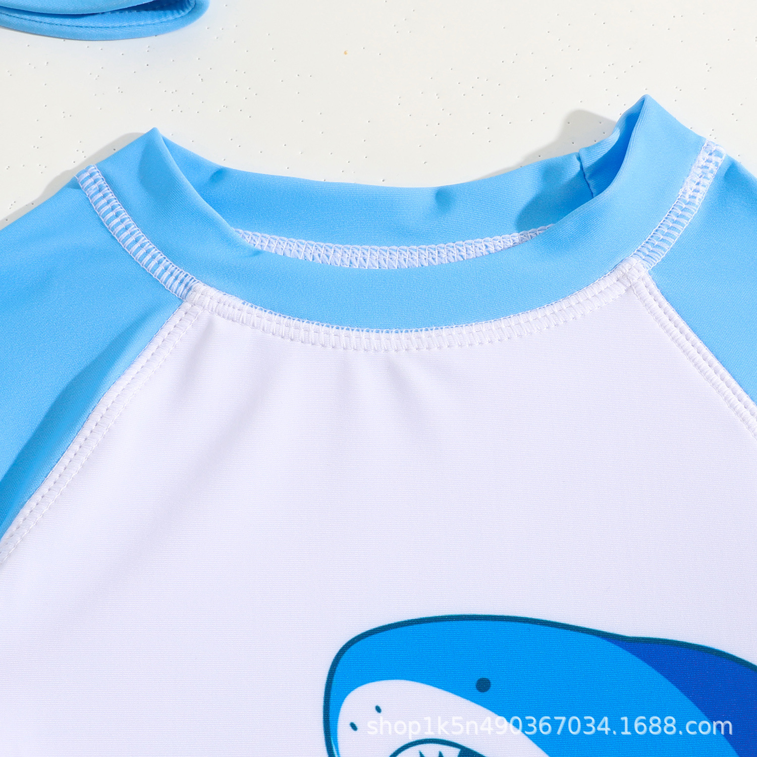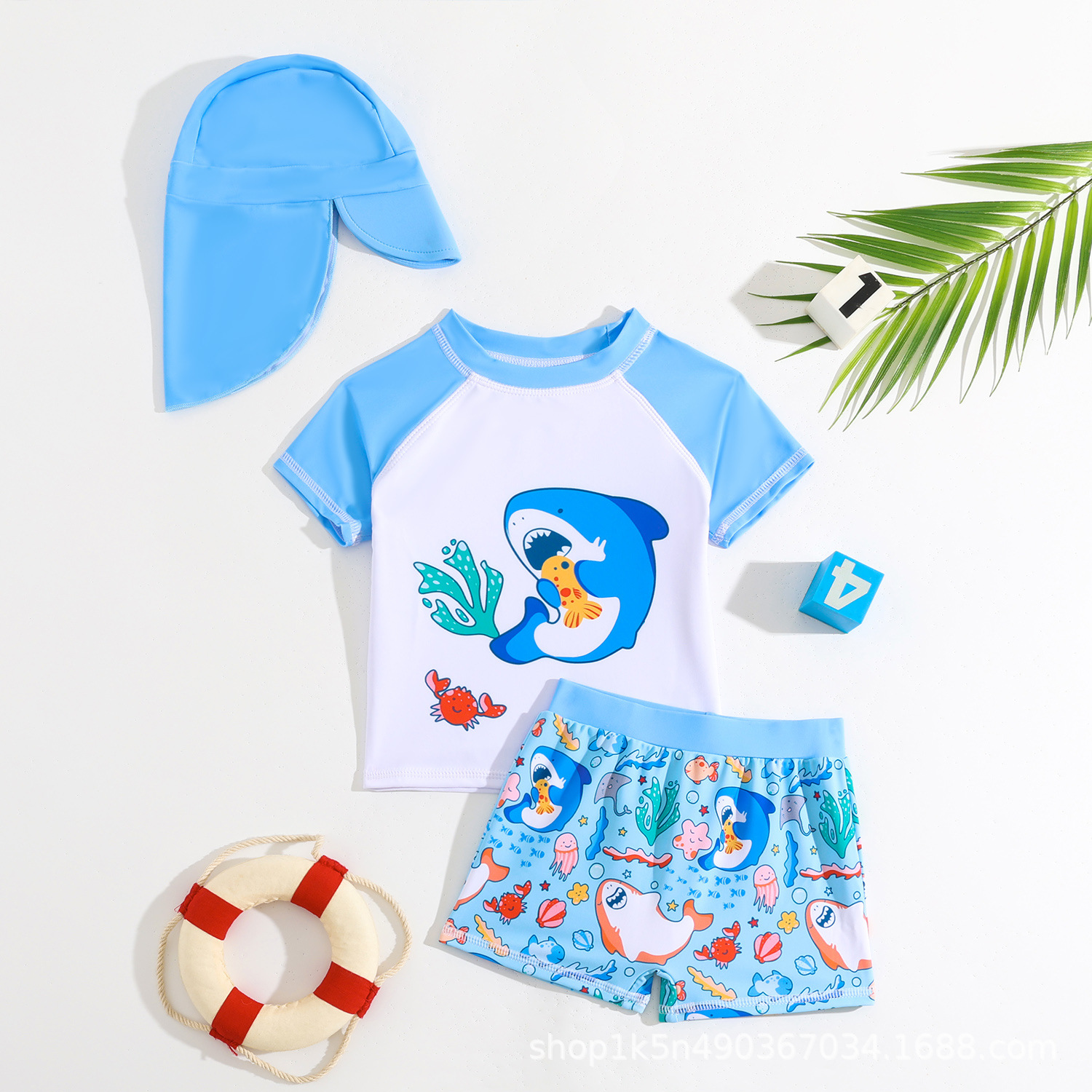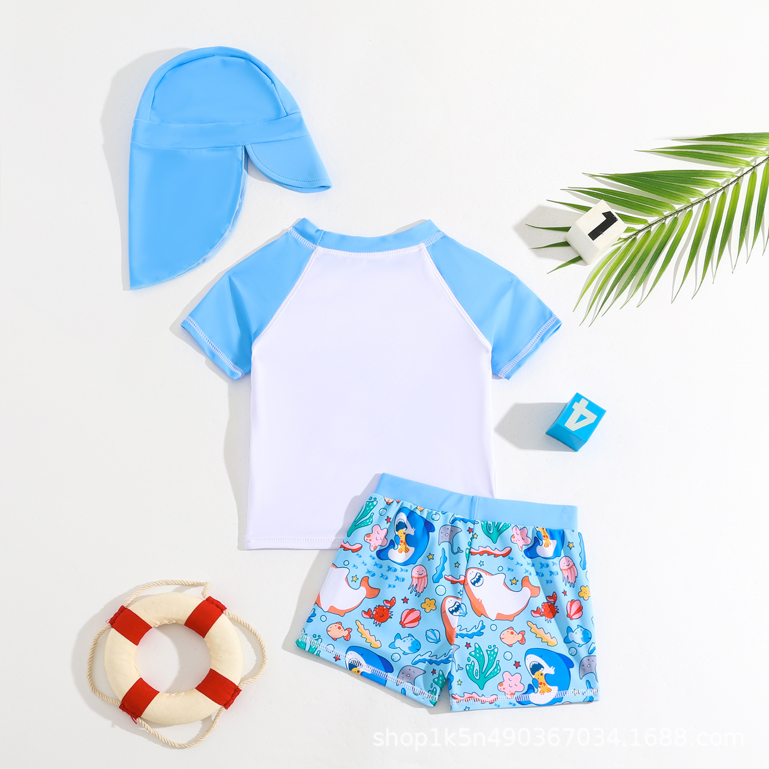 2025 인기 해외 아동 수영복 세트 2025 신상 분리형 남아 반팔 반바지 모자 수영복스토어 가기