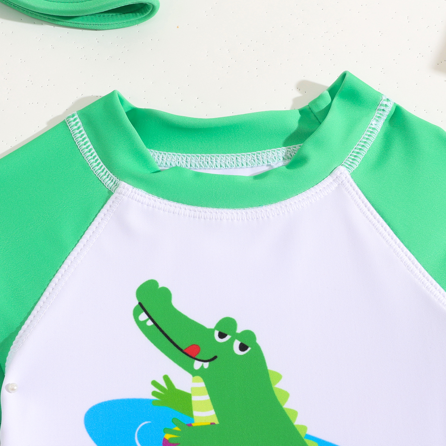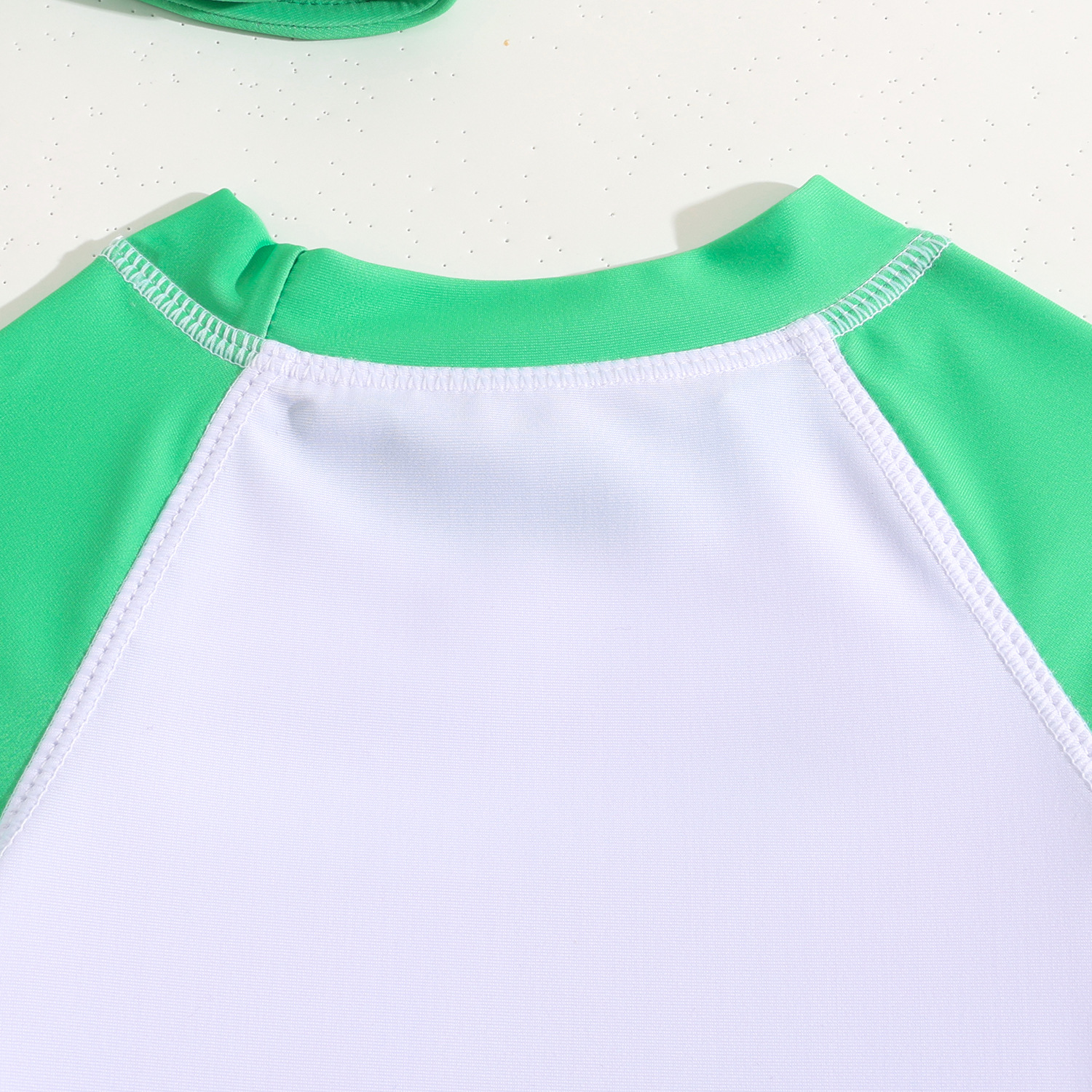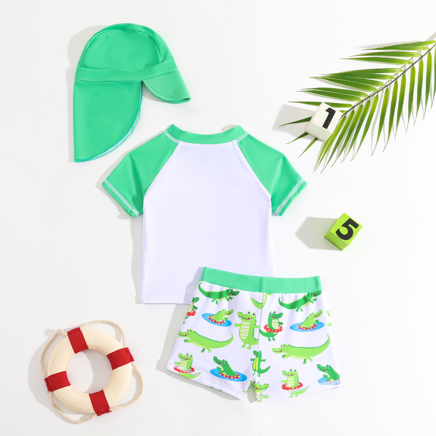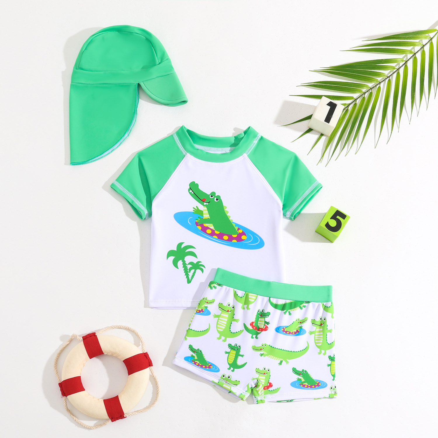 2025 인기 해외 아동 수영복 세트 2025 신상 분리형 남아 반팔 반바지 모자 수영복