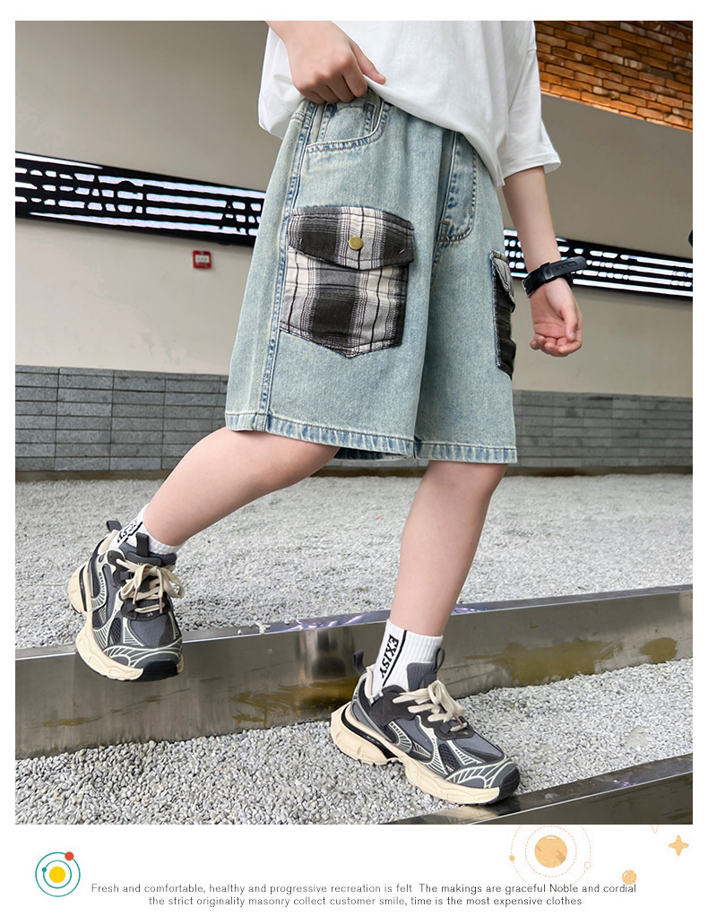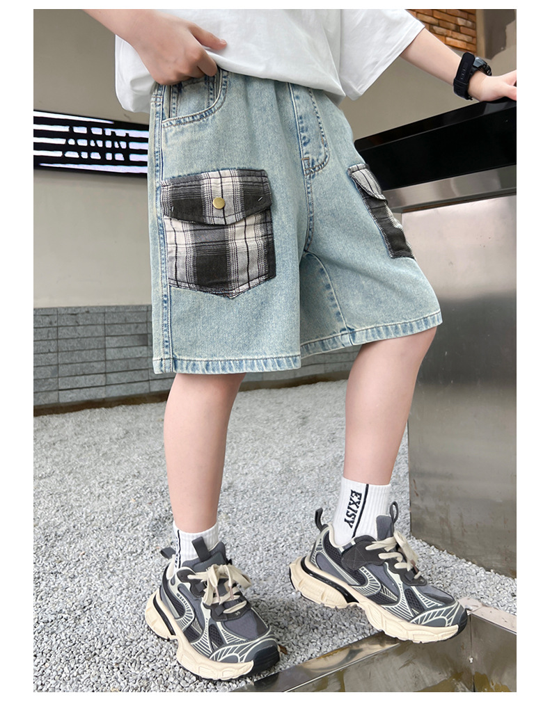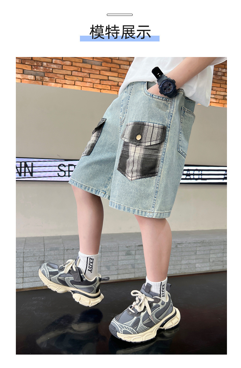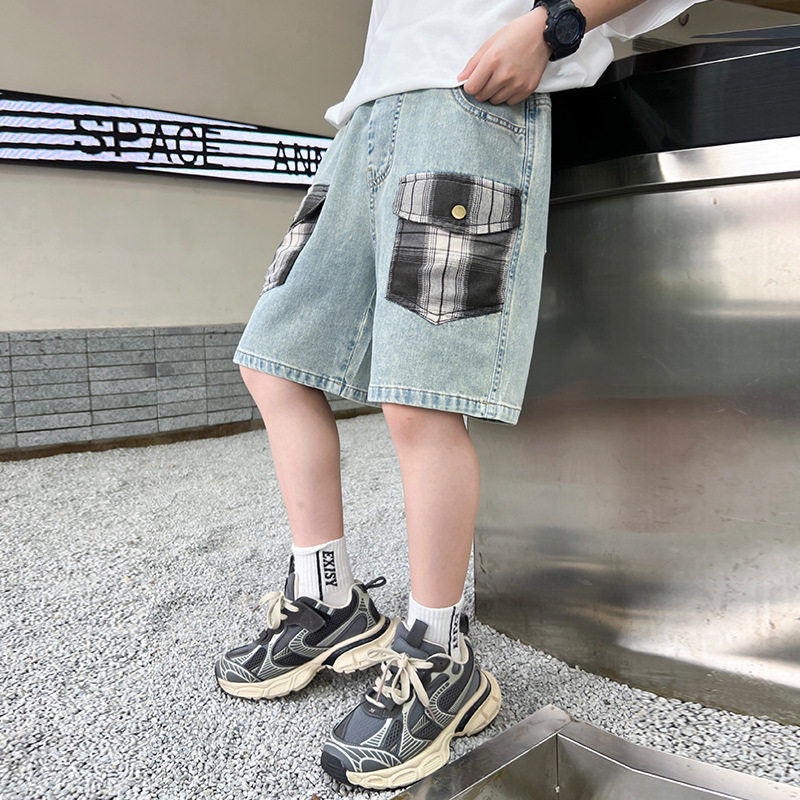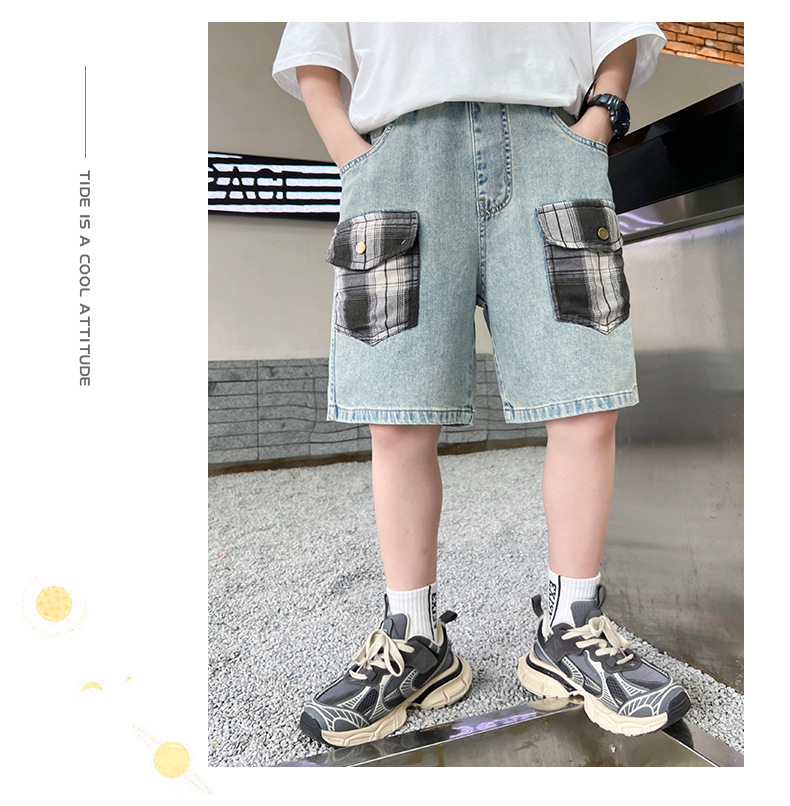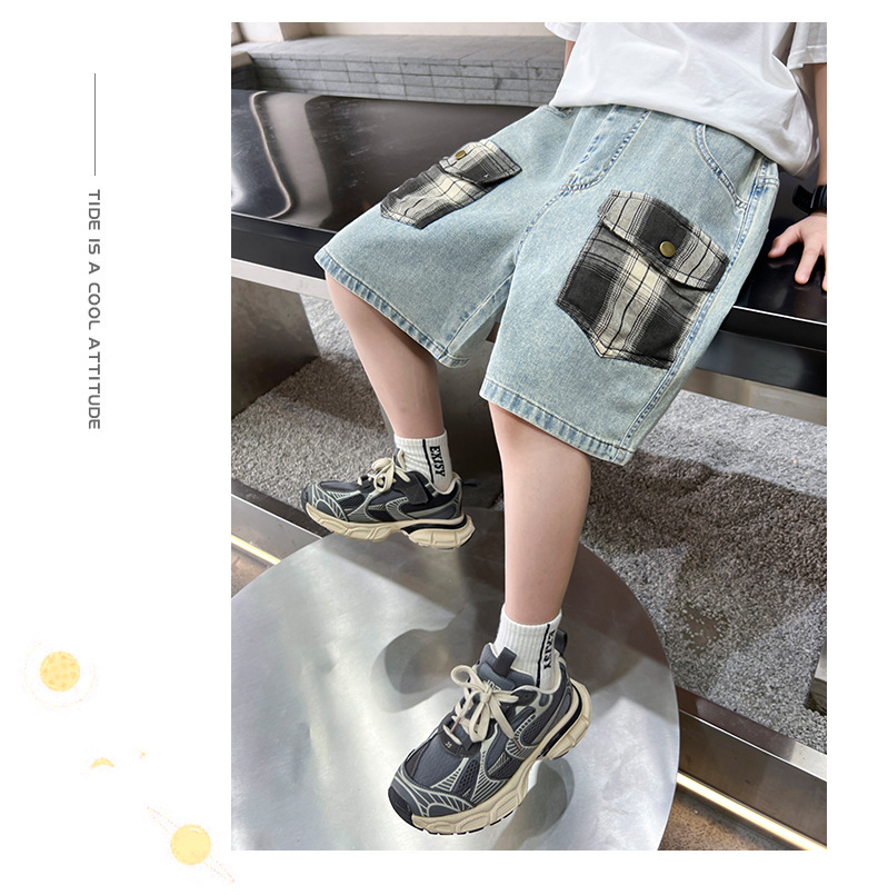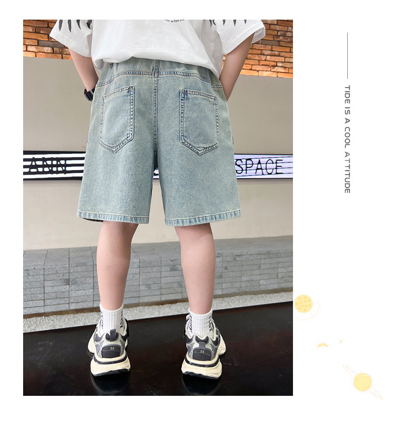 남학생 여름 청바지 2024 새로운 스타일 중 큰 어린이 여름 바지 어린이 여름 소년 5 점 바지 유행 중간 길이 바지스토어 가기